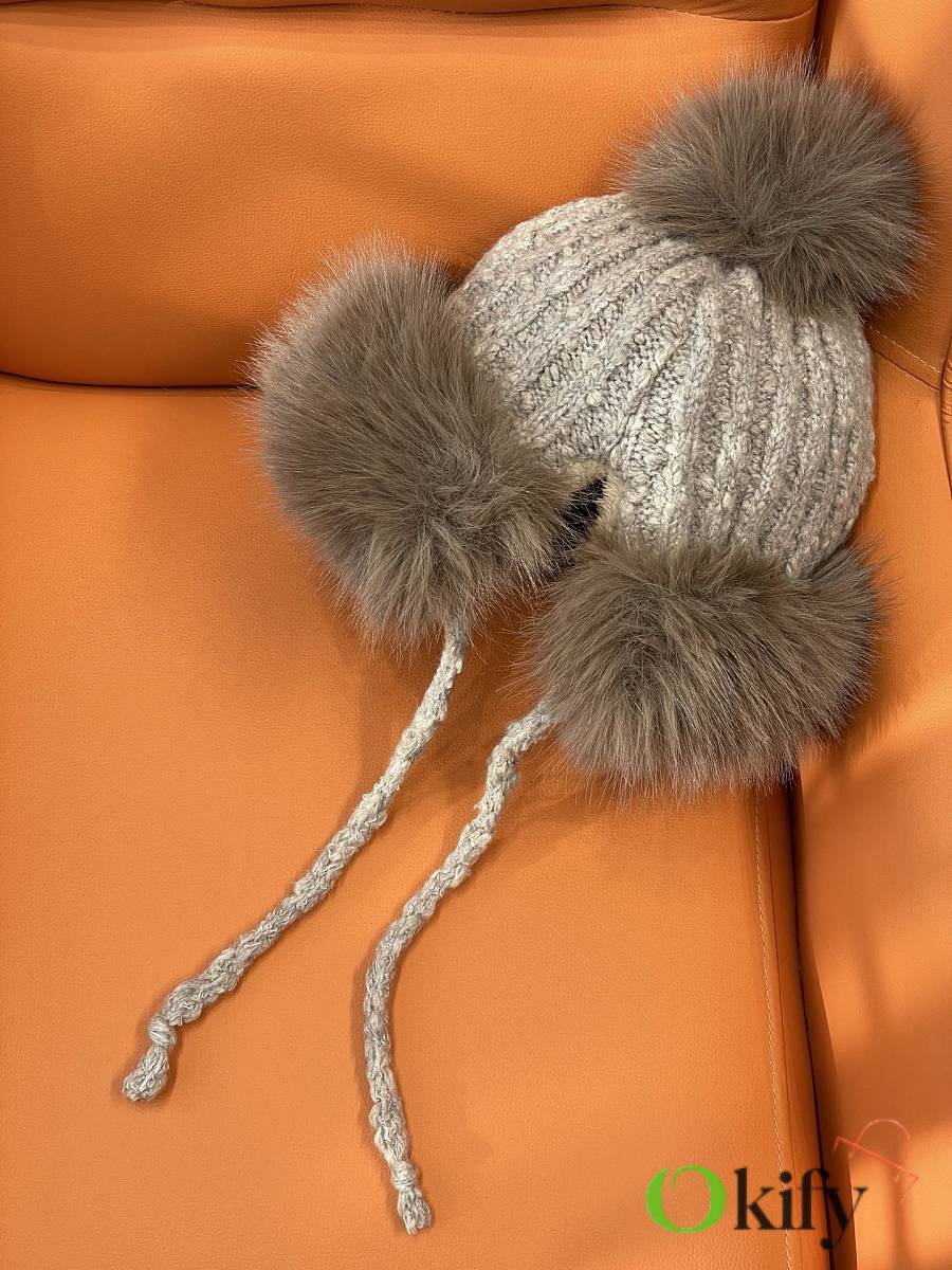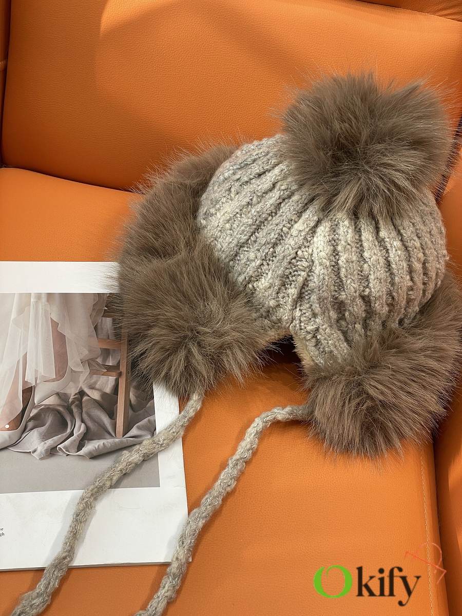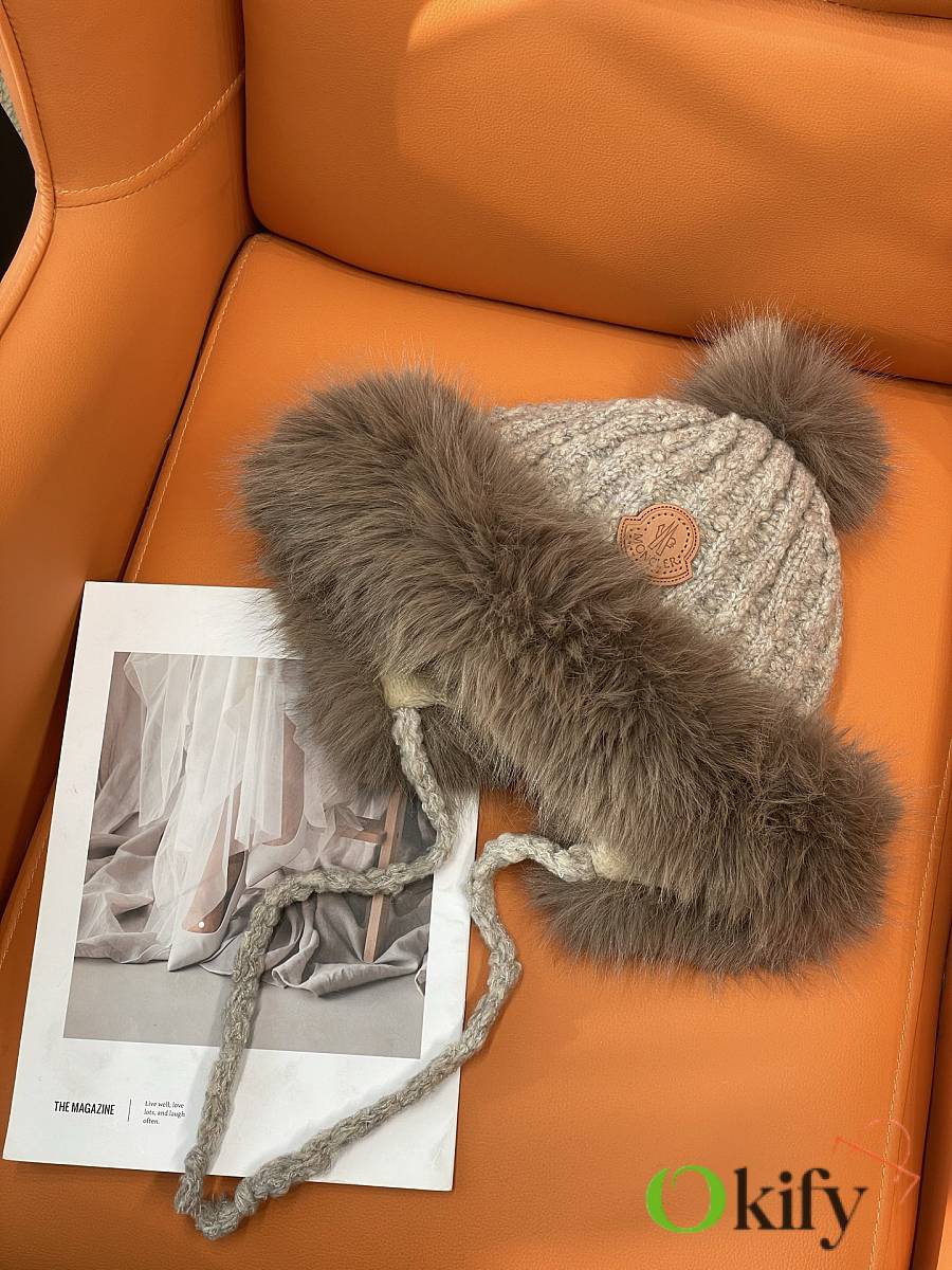 Okify Moncler Light Brown Plush Hat With Ear Flaps And Pom-poms Beanie