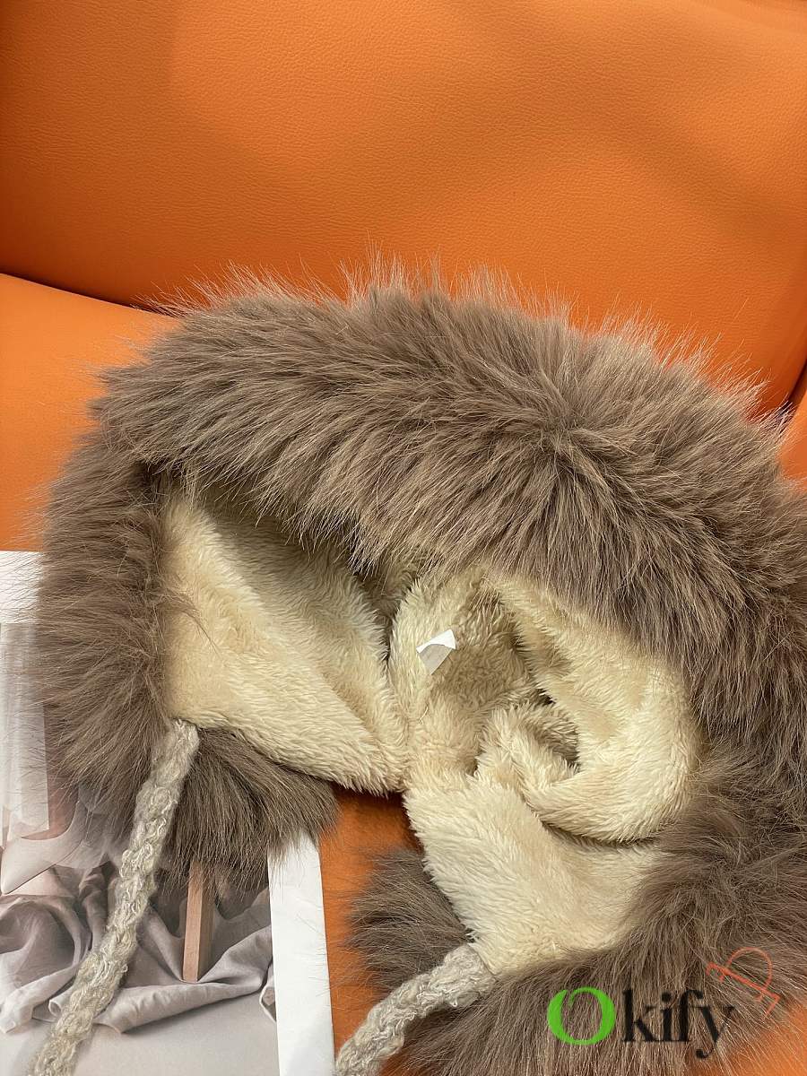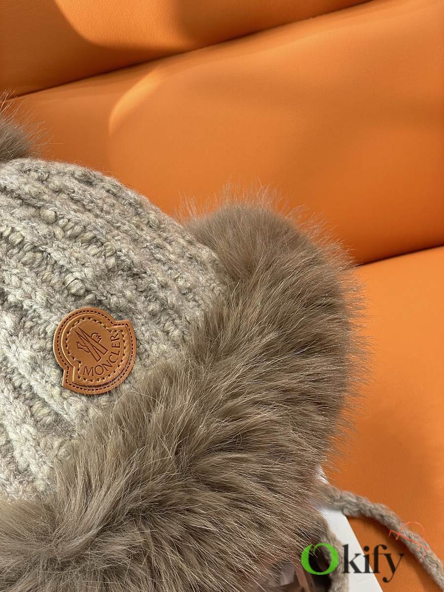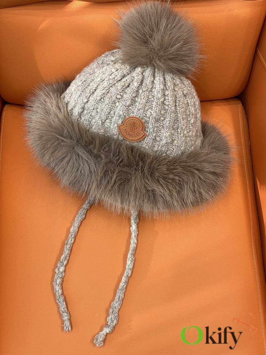 Okify Moncler Light Brown Plush Hat With Ear Flaps And Pom-poms Beanie