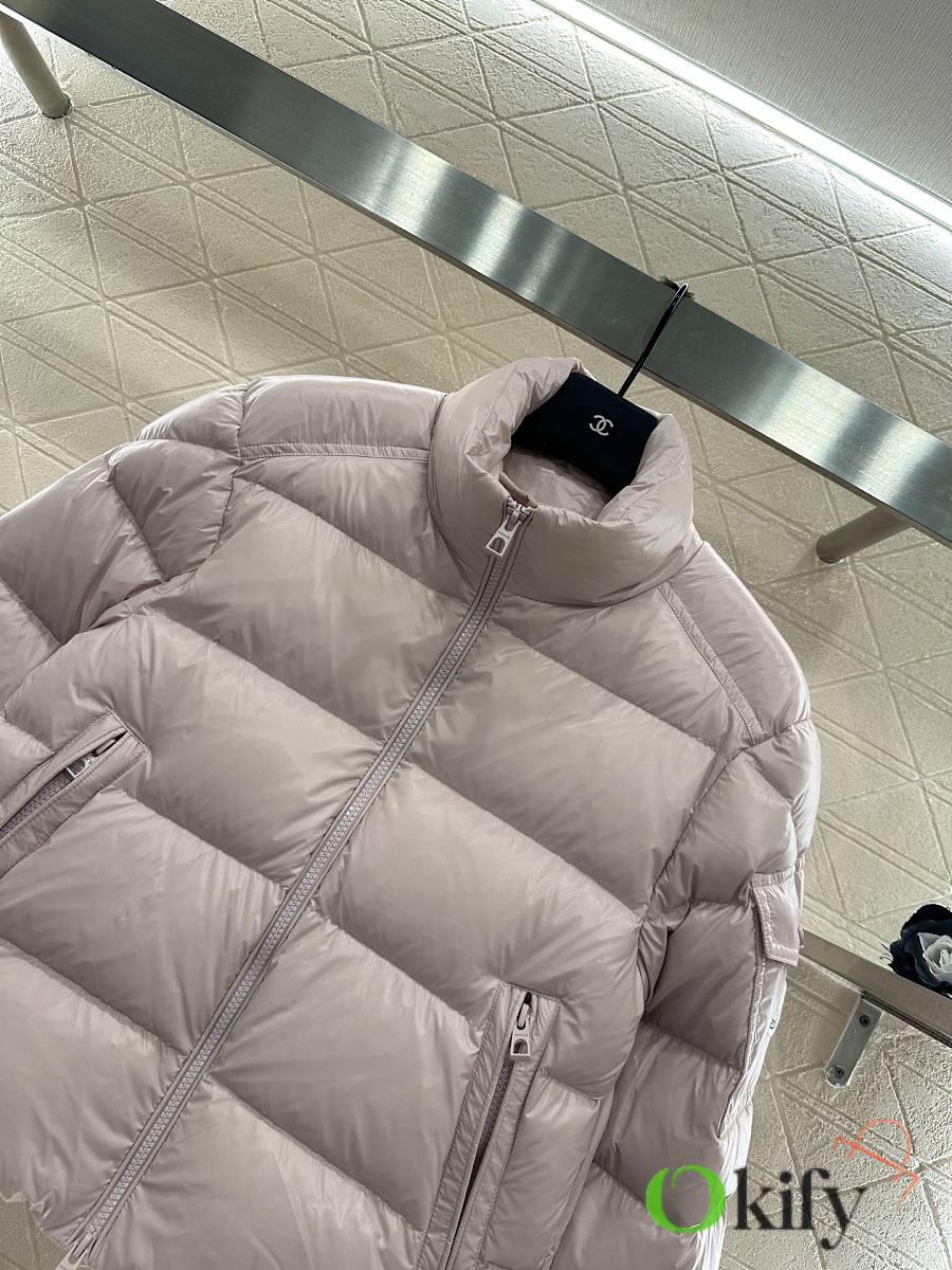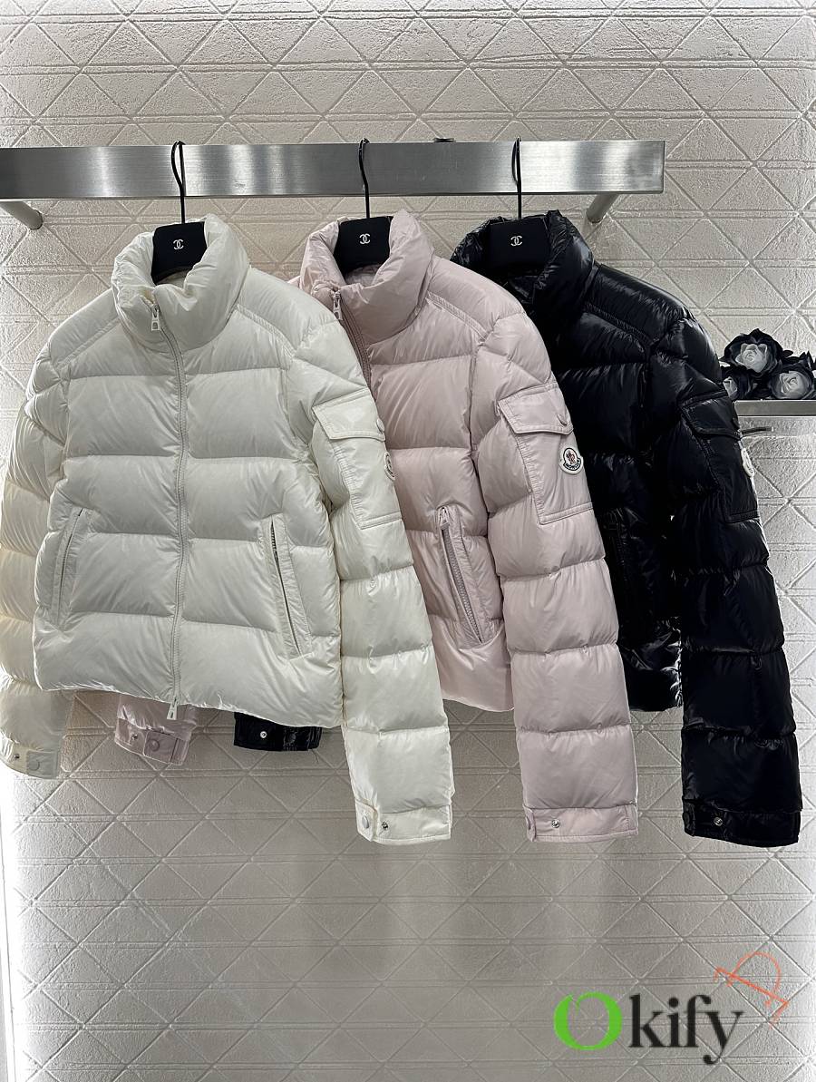 Moncler's new fall/winter 2025 high-end rectangular embossed stand-up collar down jacket is custom-made from imported recycled nylon and lined with white goose down. It's lightweight, warm, and practical, and features a rectangular embossed pattern. Double side zipper pockets add dimension and practicality. Side flap pockets on the sleeves are embellished with the iconic subsidy badge and logo, highlighting the brand's signature ethos. 1:1 custom-made fabrics and trims, the stand-up collar and zipper jacket are tailored with pearlescent reflective materials. Lightweight and stylish, this fall/winter jacket combines warmth and style. Filling standard: National standard 90 down Filling material: white goose down