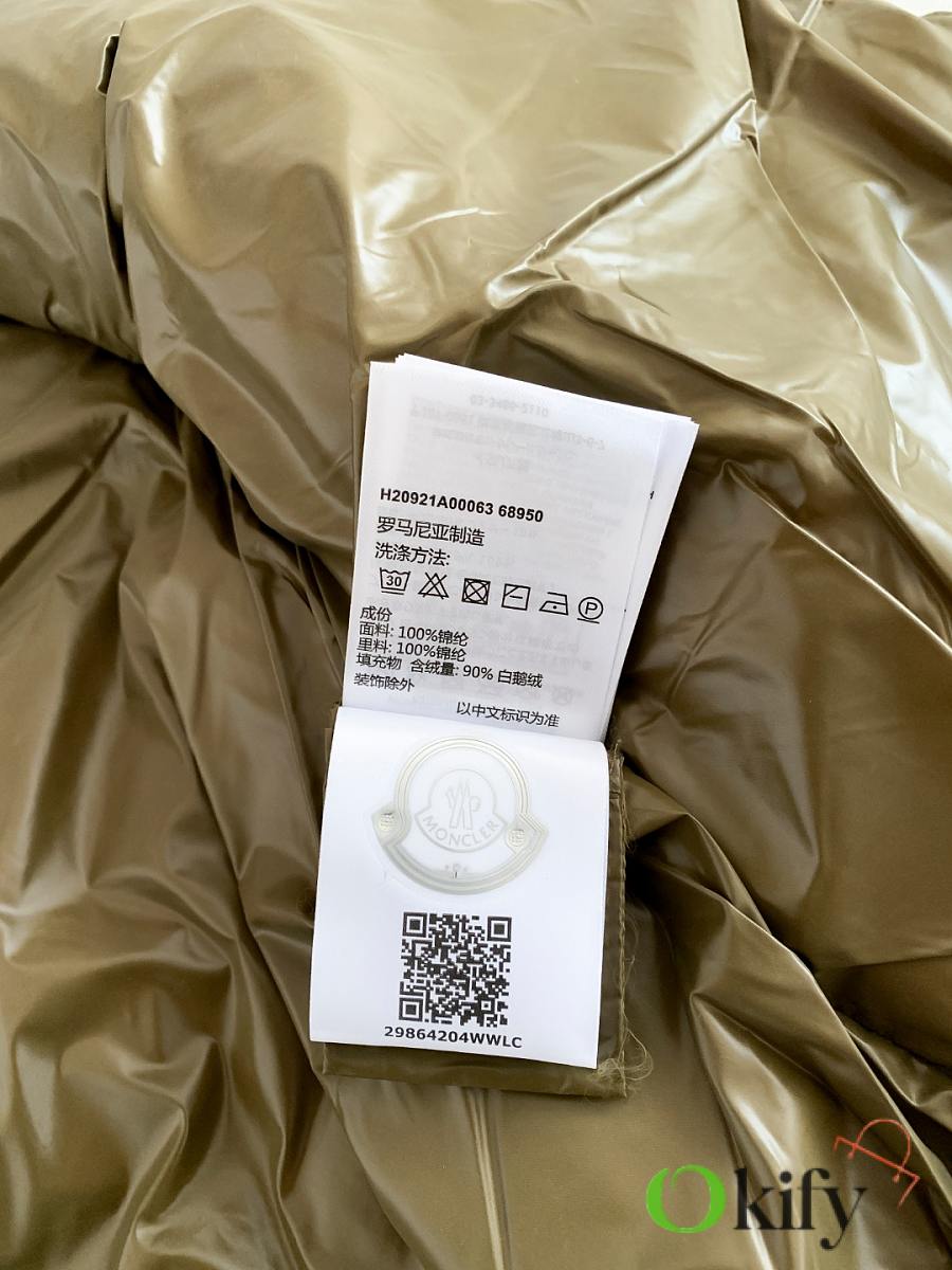 • Made from lightweight nylon laqué fabric • Lightweight nylon laqué lining • Filled with down • Stand-up collar • Zipper opening and closing • Zippered pocket • Chenille logo patch