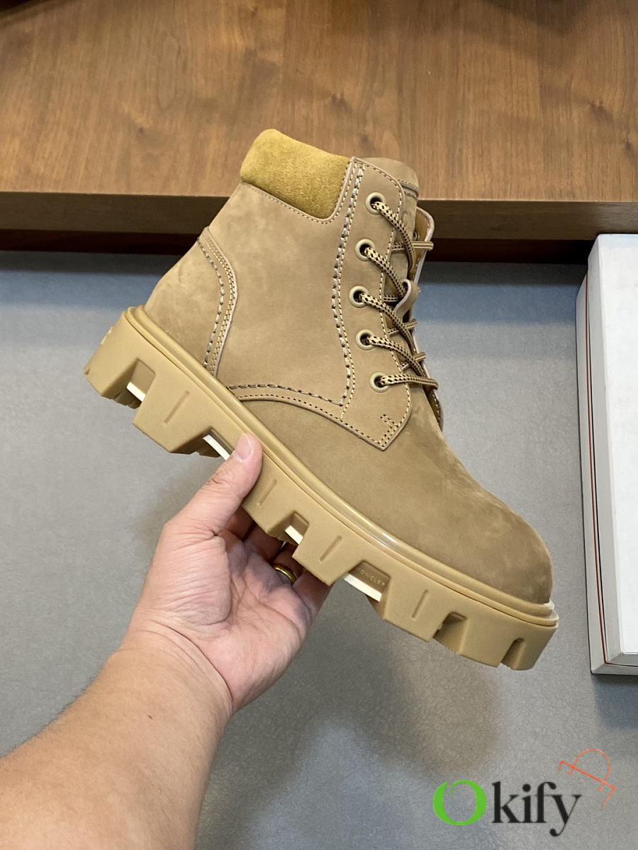Reinterpreting the brand's mountaineering heritage, this boot infuses classic hiking boots with an urban aesthetic, crafted from supple cowhide for durability and longevity. Upper: Imported cow suede, cowhide, cowhide lining (wool lining requires customization)
