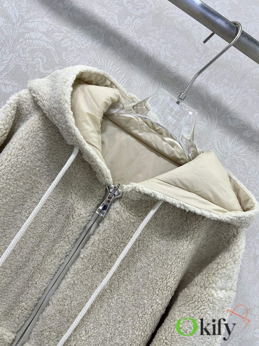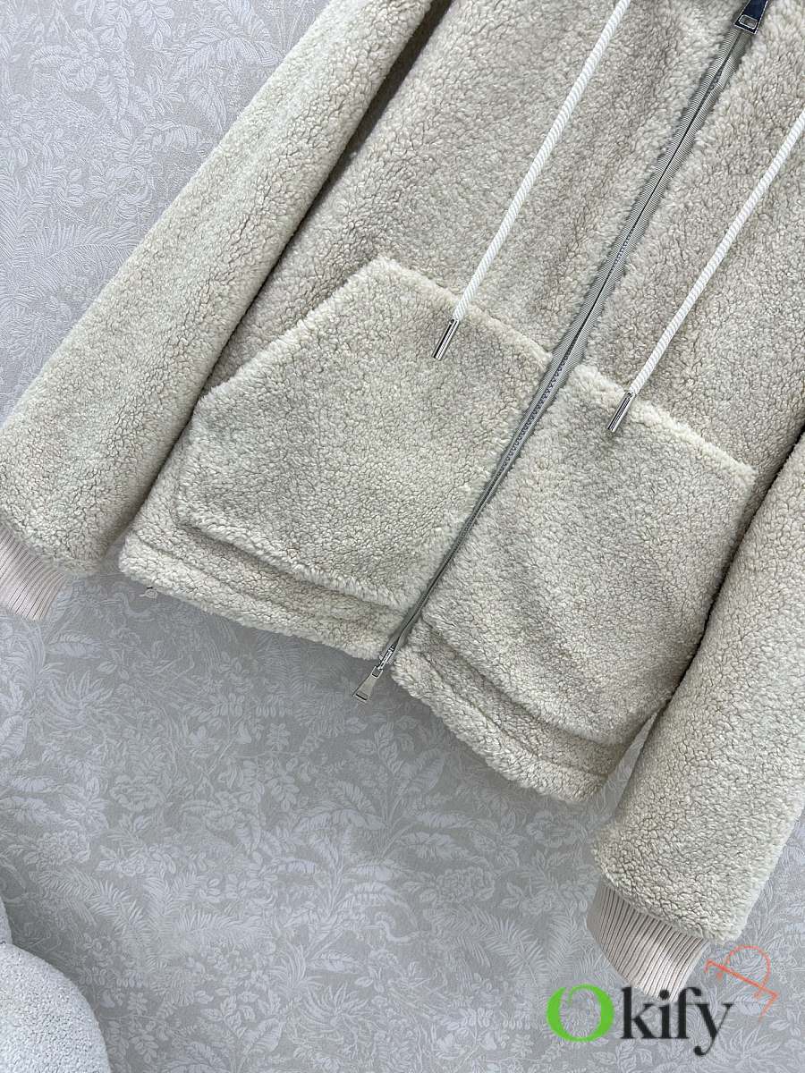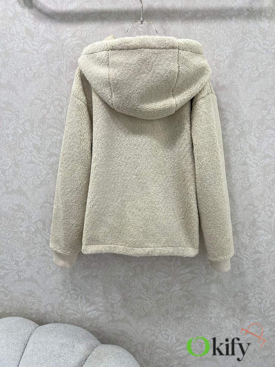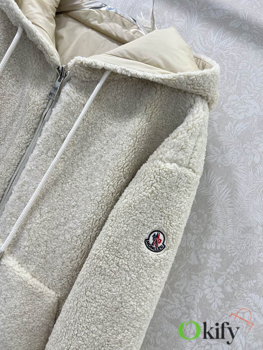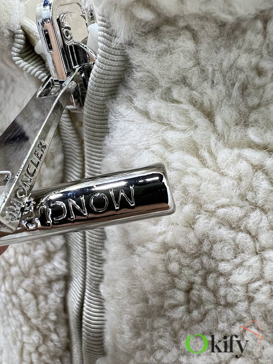 Moncle's new reversible hooded Teddy lambskin jacket, made of waterproof nylon with ample fleece, offers windproof protection and is easy to put on and take off. The hooded plush zipper jacket comes in three stylish and versatile colors. One side is made of grainy lambskin, with a thick, warm drawstring and a signature metal stamped logo at the end and a badge on the outside of the arm, highlighting the brand's style and adding a touch of luxury. The other side is made of smooth, skin-friendly nylon with elastic drawstrings at the cuffs, making it suitable for a variety of wear occasions and personal styles. The regular loose fit is fashionable and inclusive, making it a versatile and versatile item for fall and winter. It has a high-quality texture and is a warm winter jacket you won't regret buying