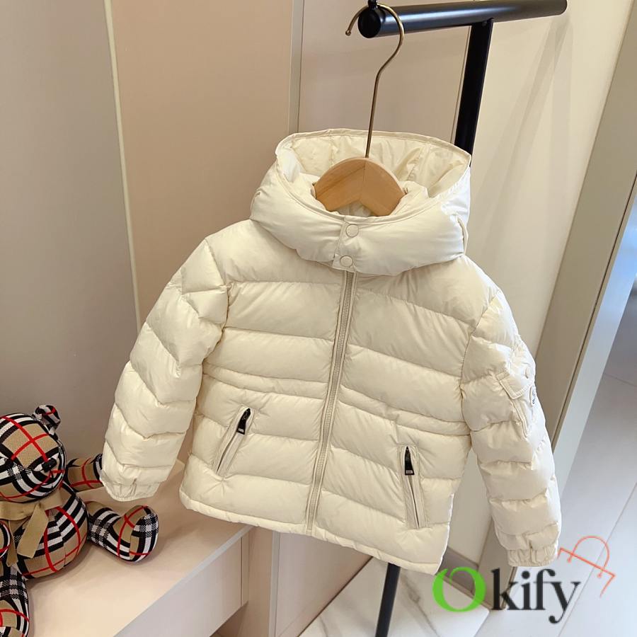 Okify Moncler White Waist Adjustable Down Jacket For Kids