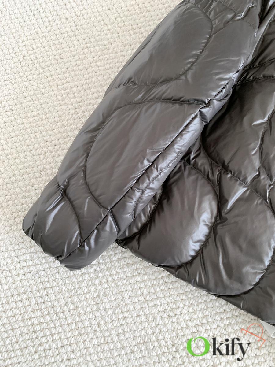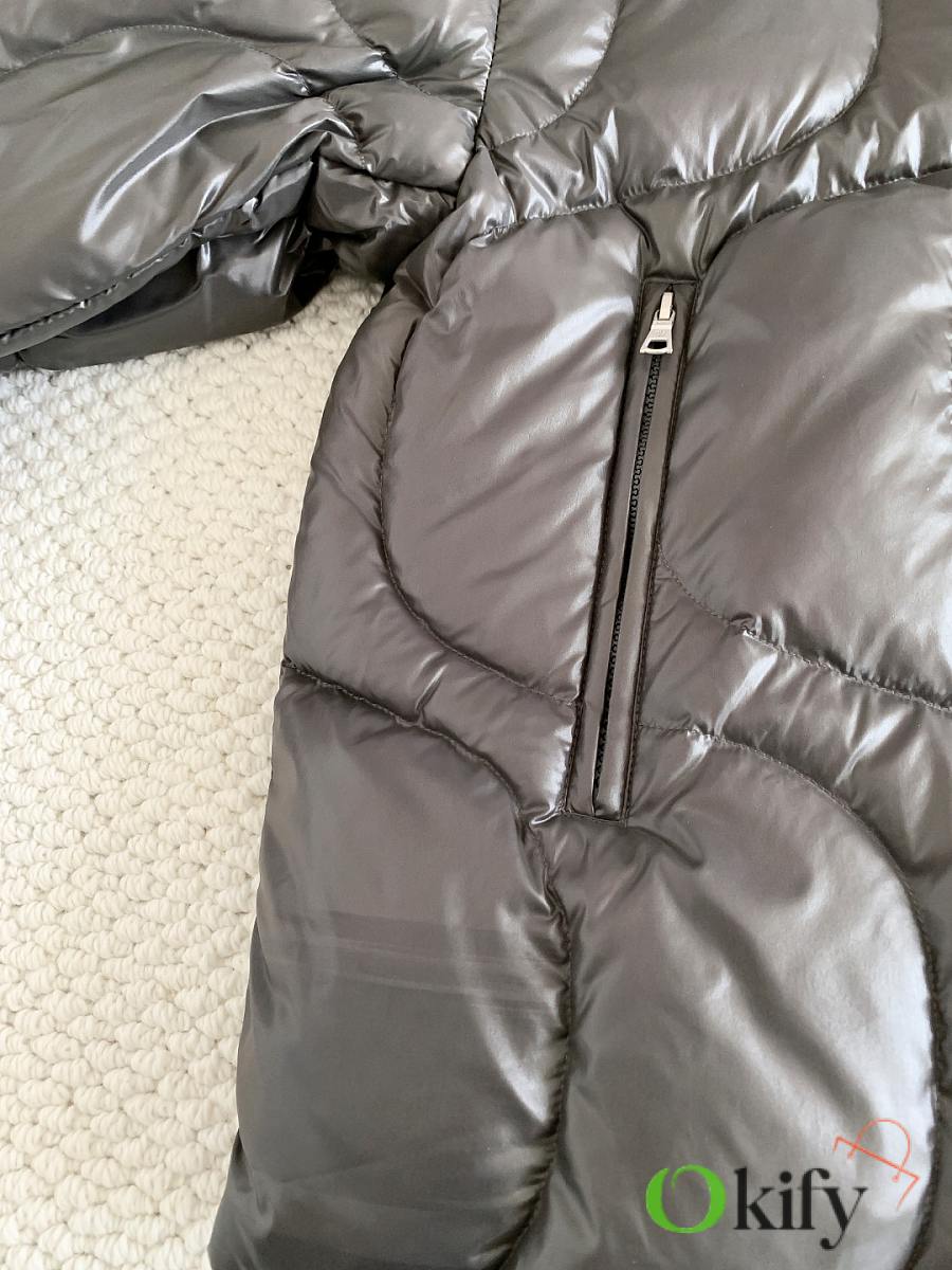 • Dense, tear-resistant fabric lining • Filled with goose down •Irregular quilting embroidery design • Zipper opening and closing • Zippered pocket • Elastic cuffs • Windproof placket •Double label