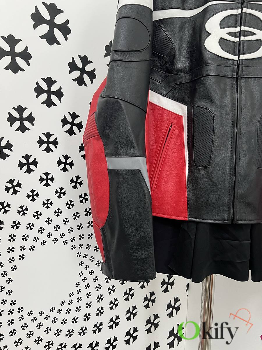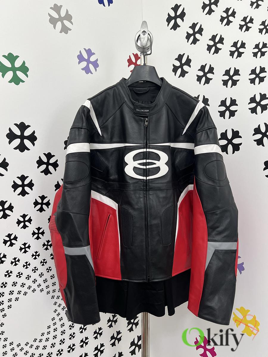 Okify Okify Balenciaga Black And Red Motorcycle Leather Jacket