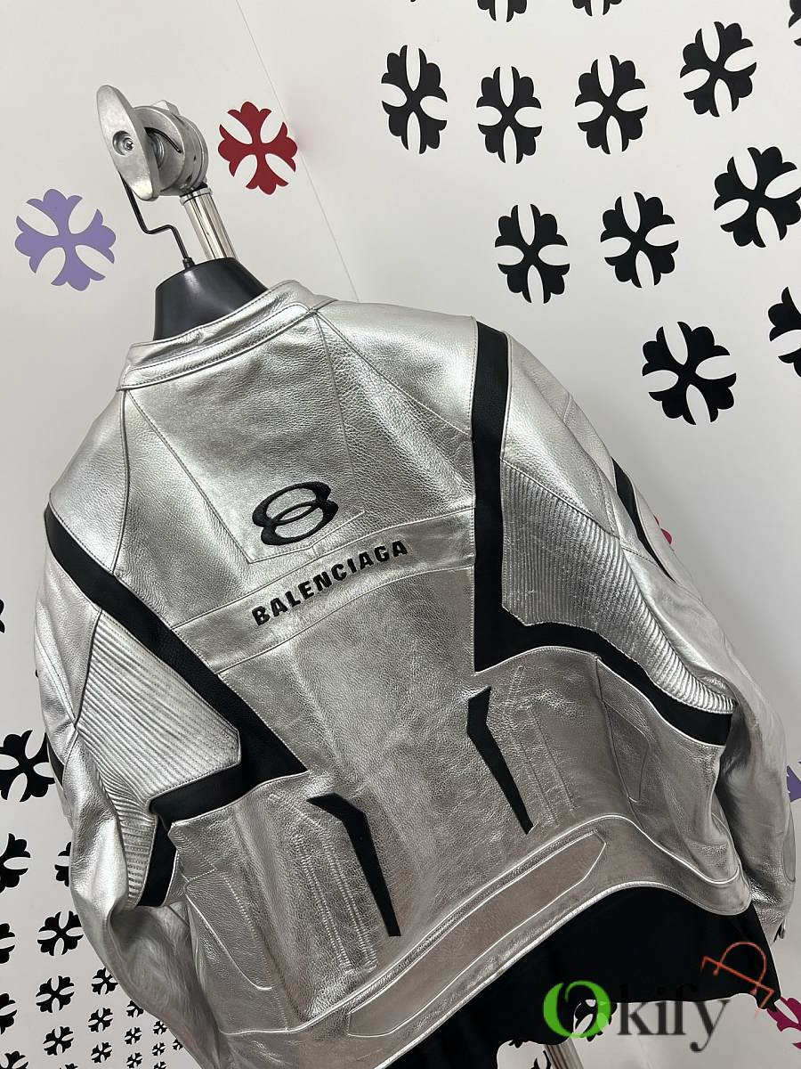 New heavy-duty leather motorcycle jacket. Original development, custom fabrics, molds, custom hardware, and accessories. Perfect alignment and detailing.