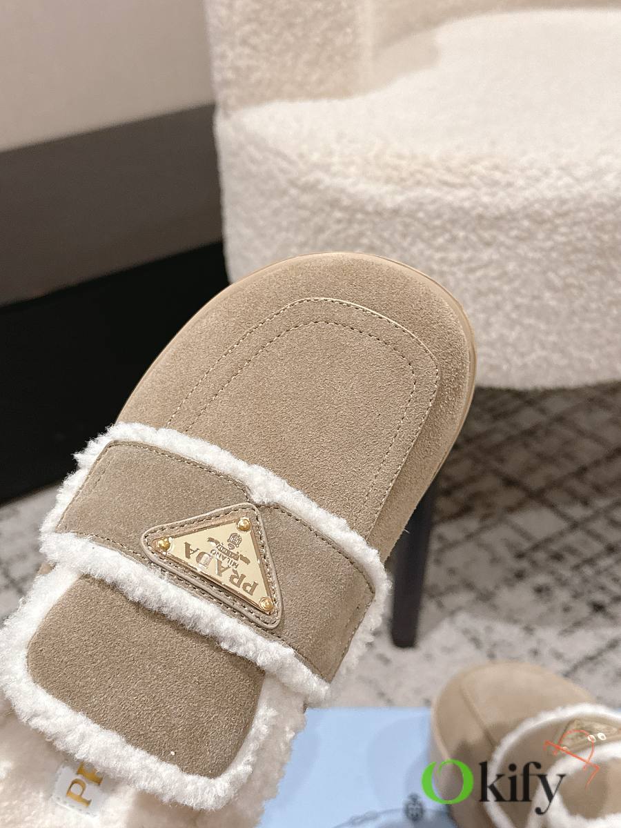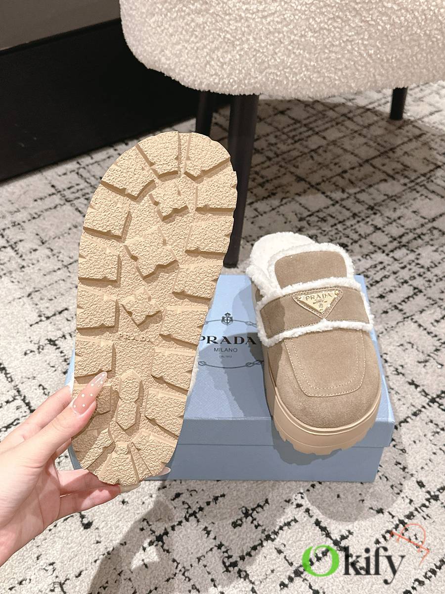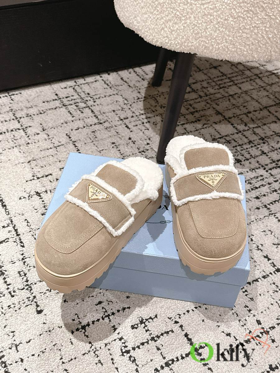 Okify Prada Beige Wool Women Slippers With Thick Soles And Covered Toe 1