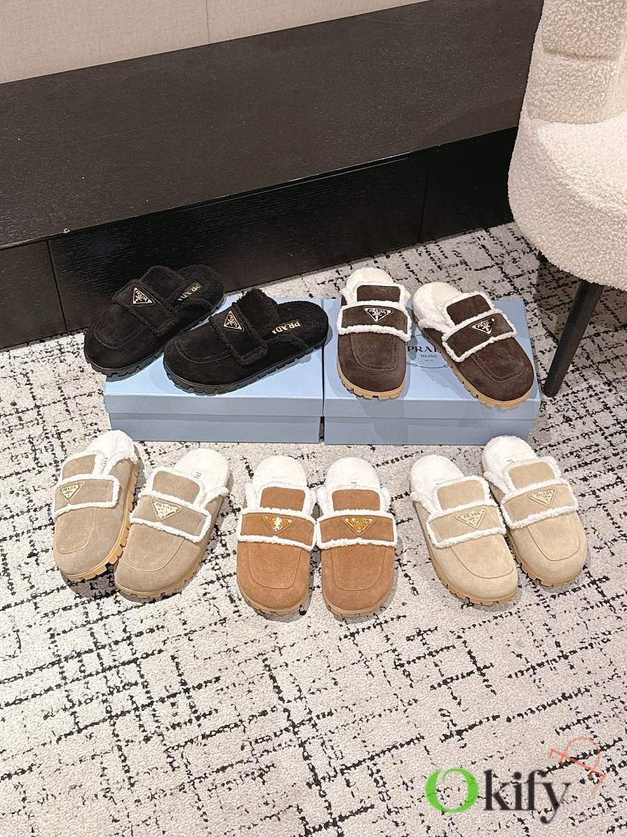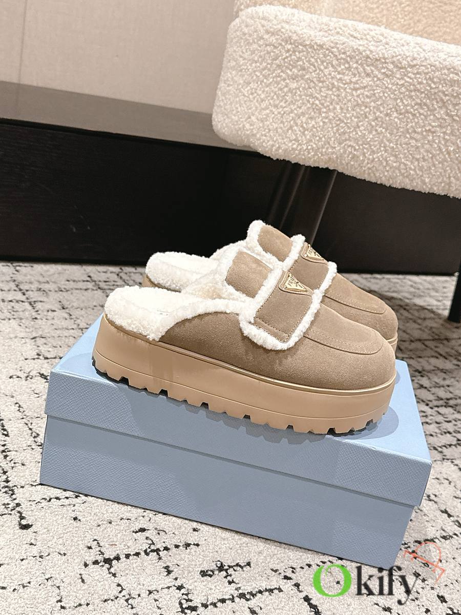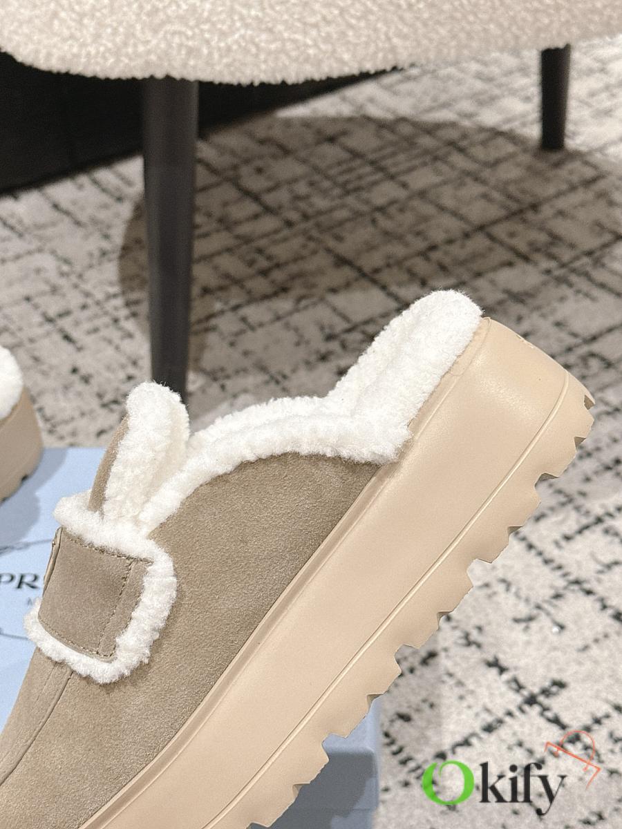 Okify Prada Beige Wool Women Slippers With Thick Soles And Covered Toe 1