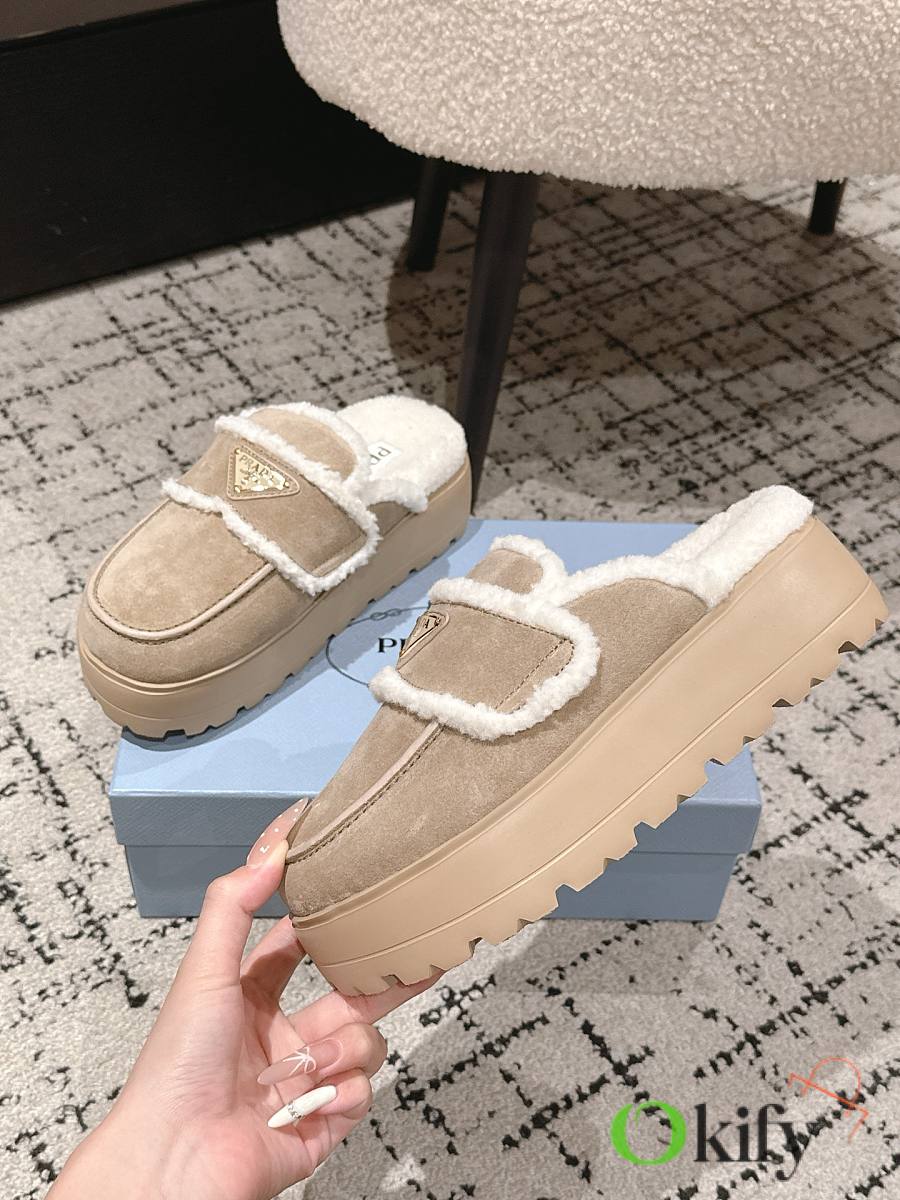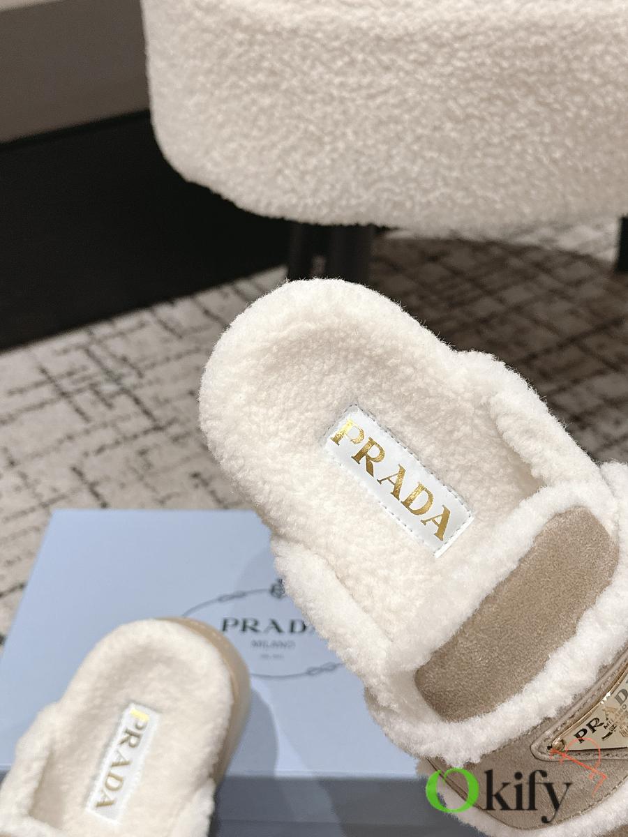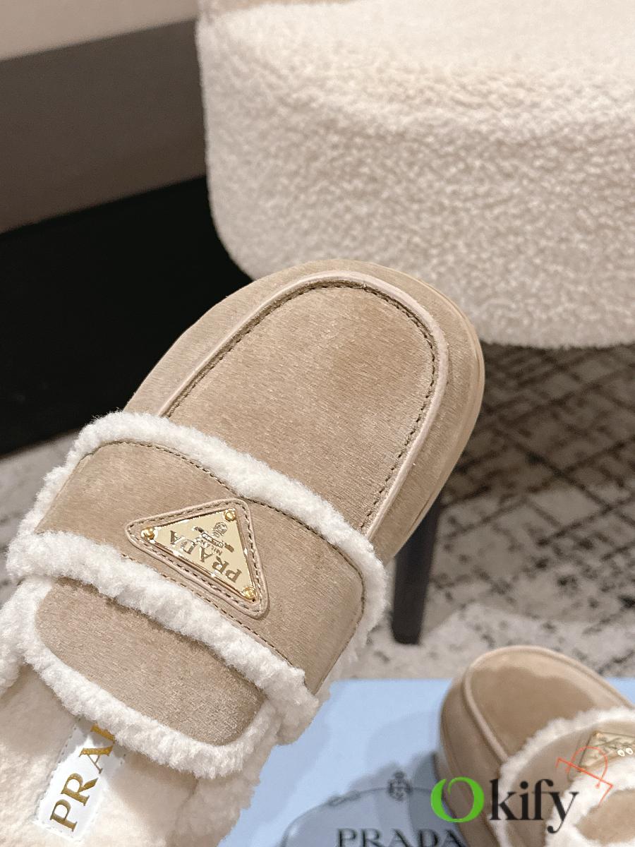 Premium Triangle Logo Nylon Gabardine Snow Party Metal Logo Gear Thick Sole Snow Wrapped Fur Sandals! High-gloss cow suede leather Australian genuine lambswool lining/foot pads Original imported TPU rubber outsole Sizes 35-41 [40.41 custom sizes available]