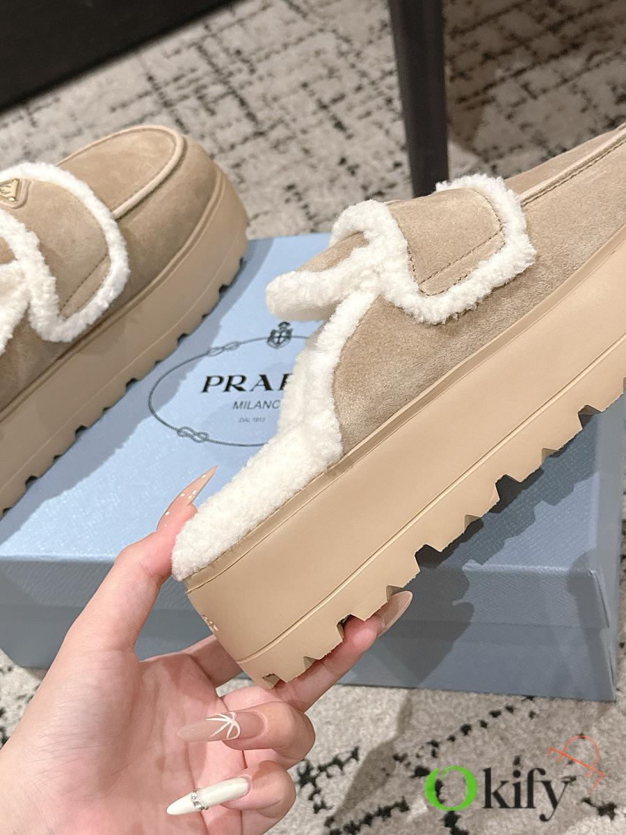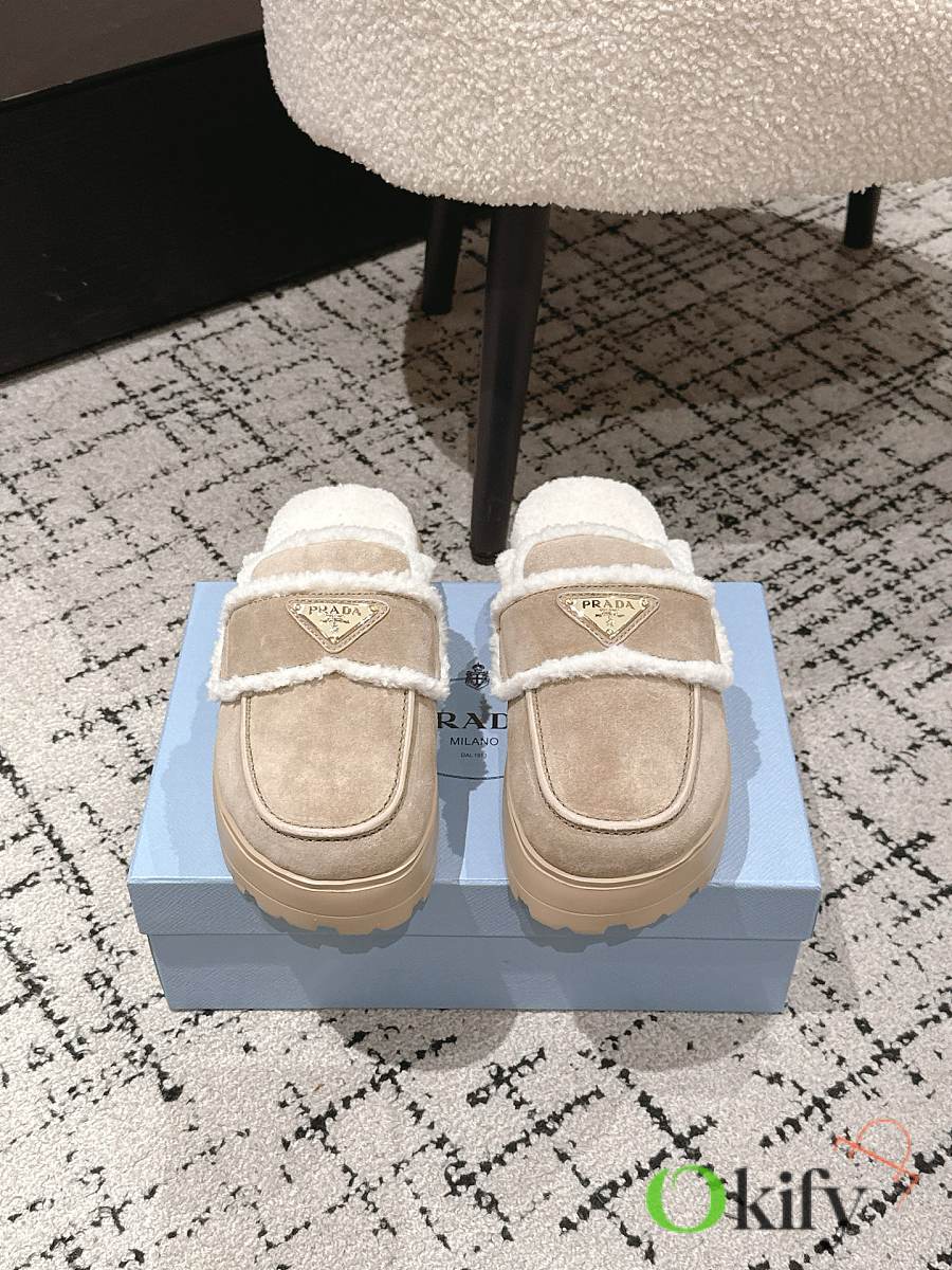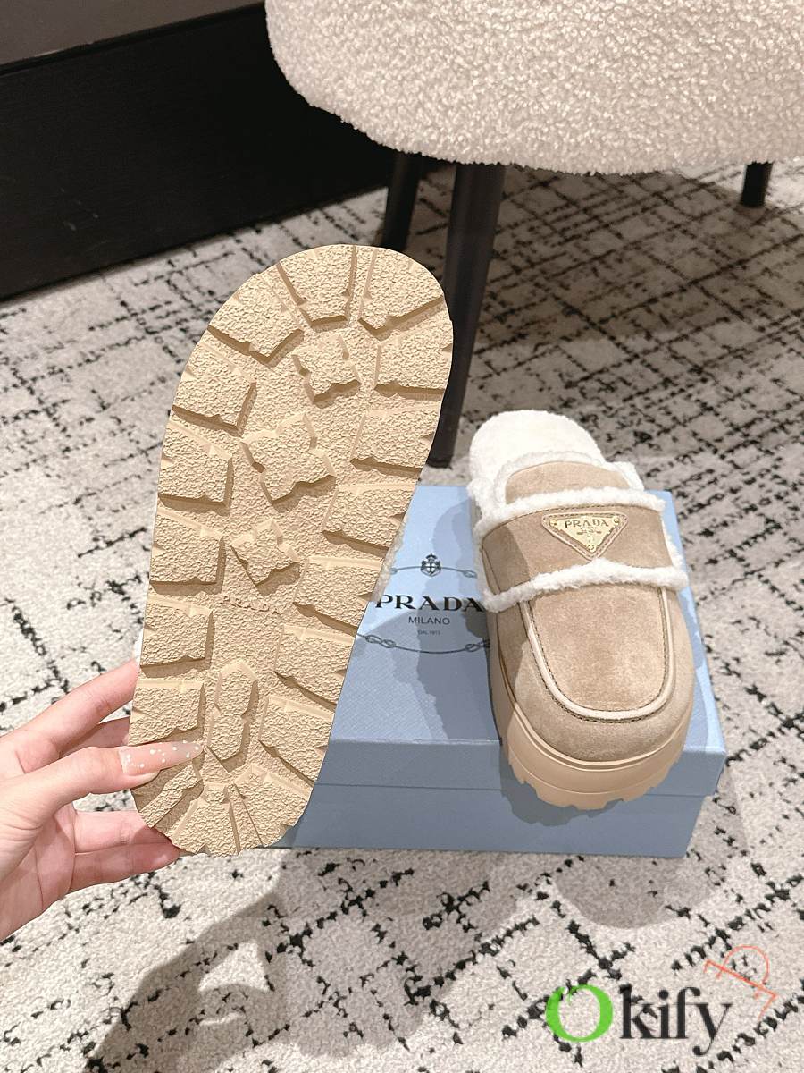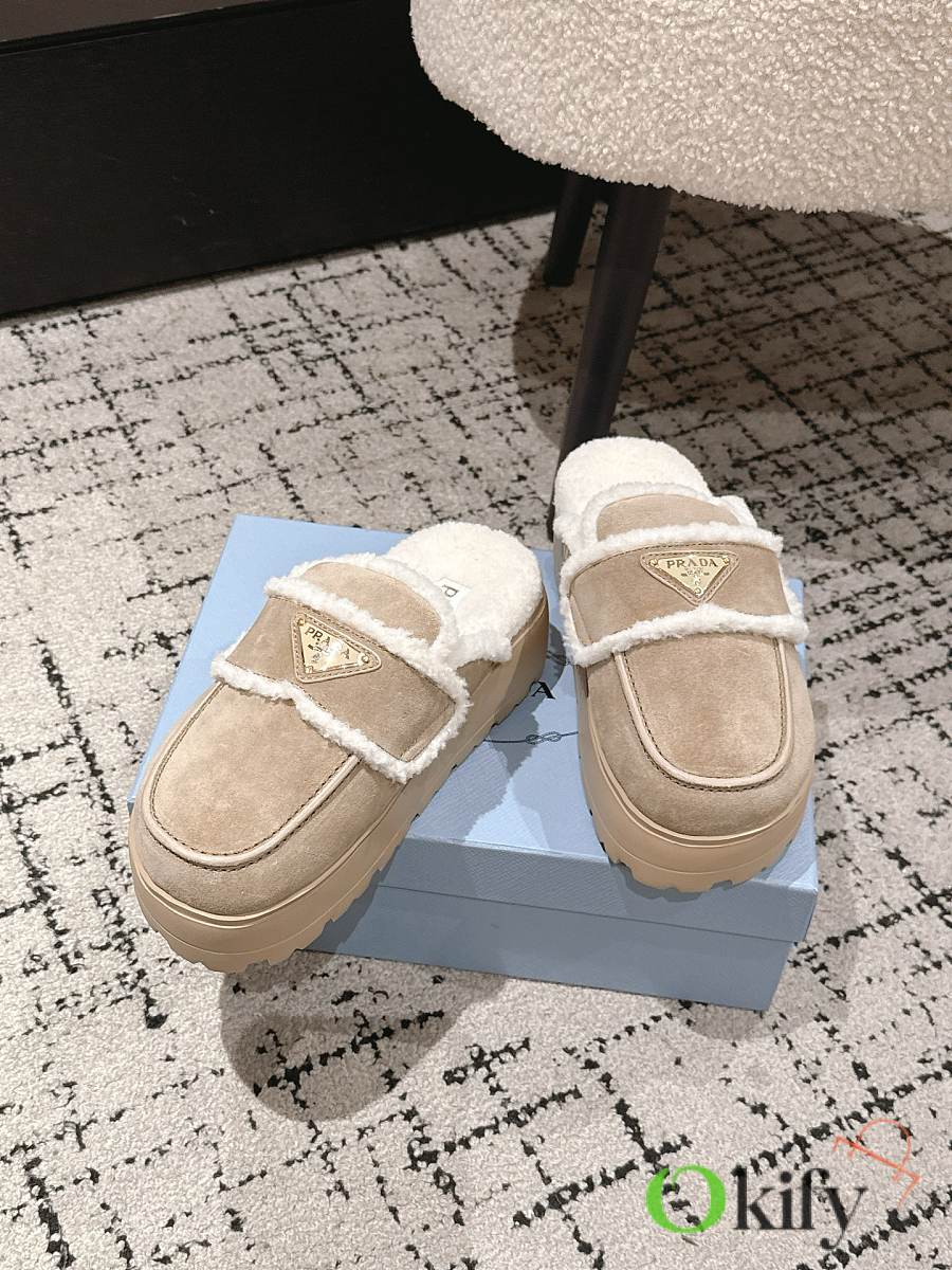 Premium Triangle Logo Nylon Gabardine Snow Party Metal Logo Gear Thick Sole Snow Wrapped Fur Sandals! High-gloss cow suede leather Australian genuine lambswool lining/foot pads Original imported TPU rubber outsole Sizes 35-41 [40.41 custom sizes available]