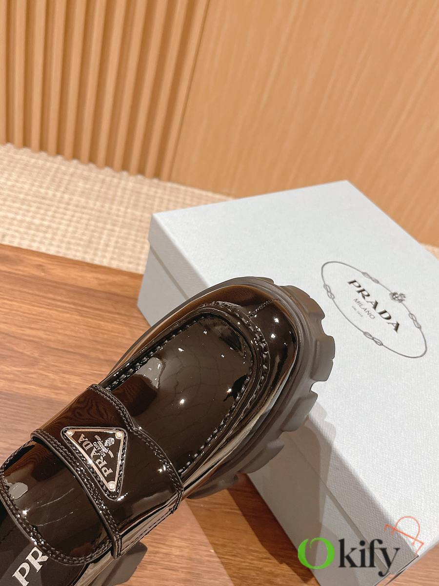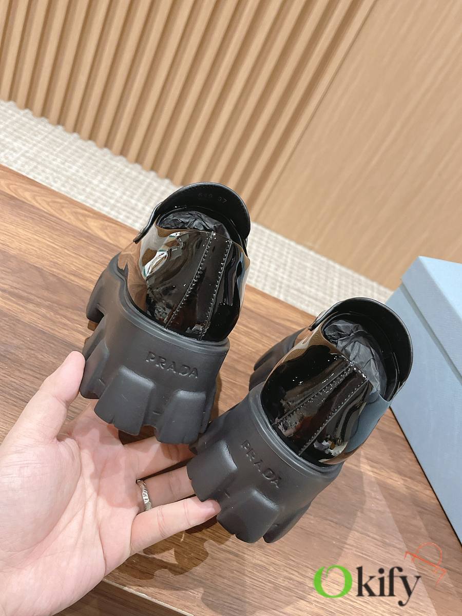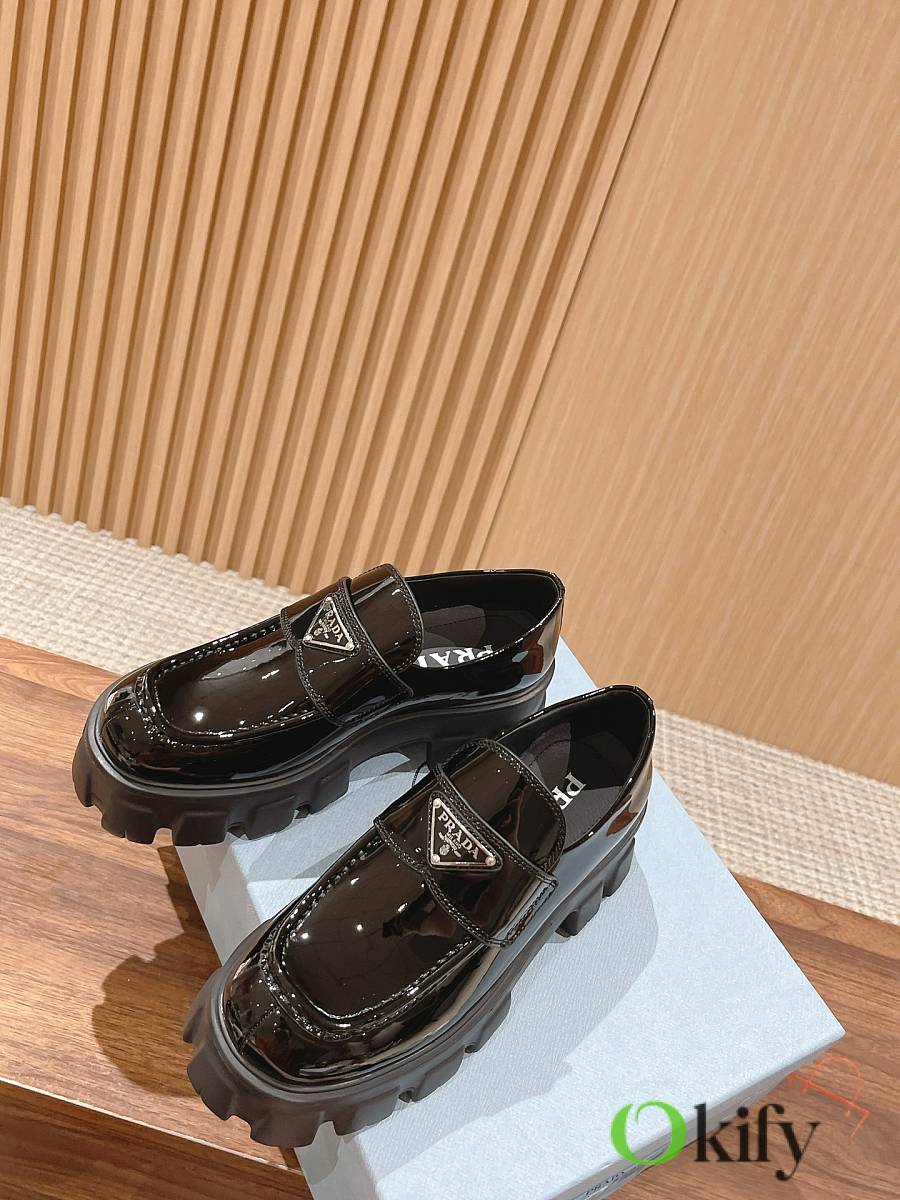 Okify Prada Black Patent Leather Thick Sole Women Loafers