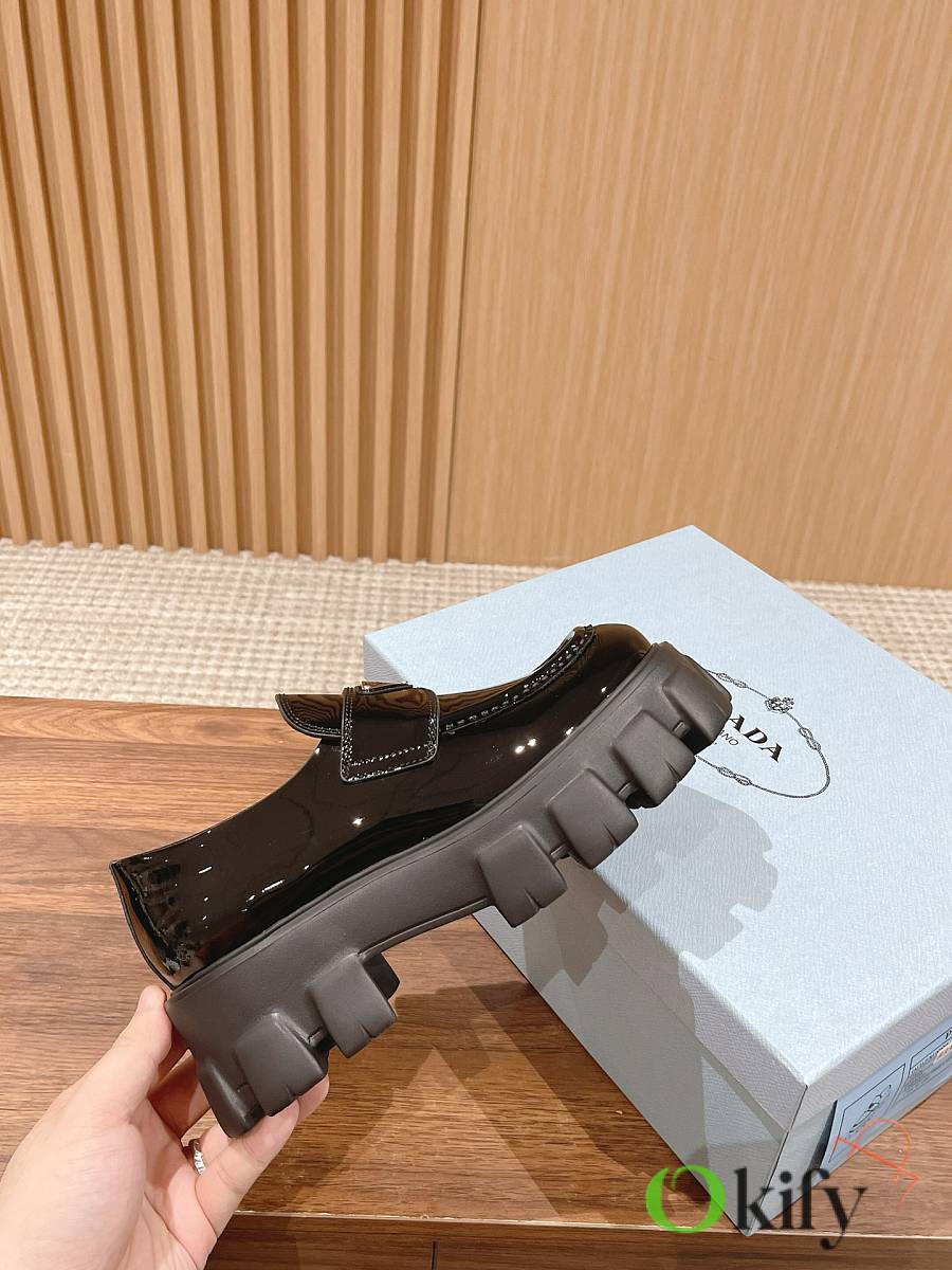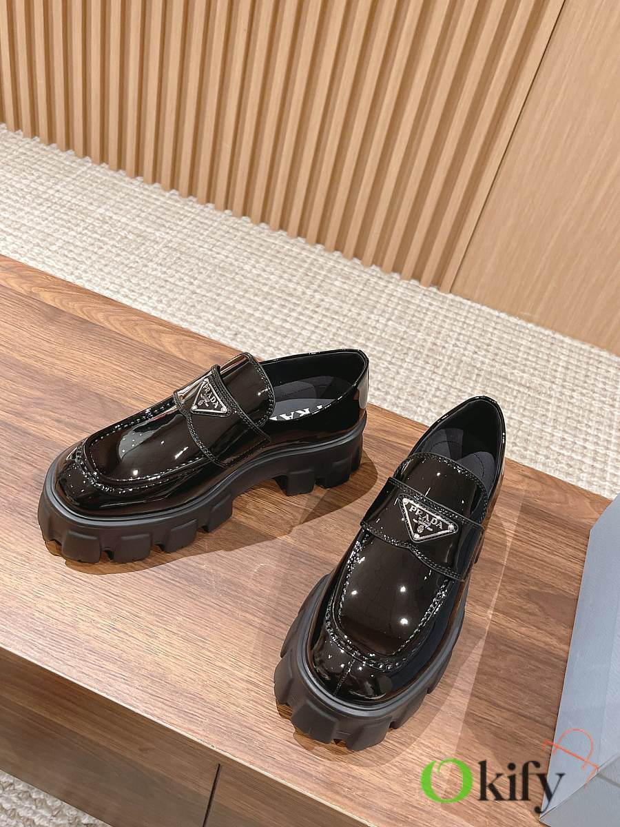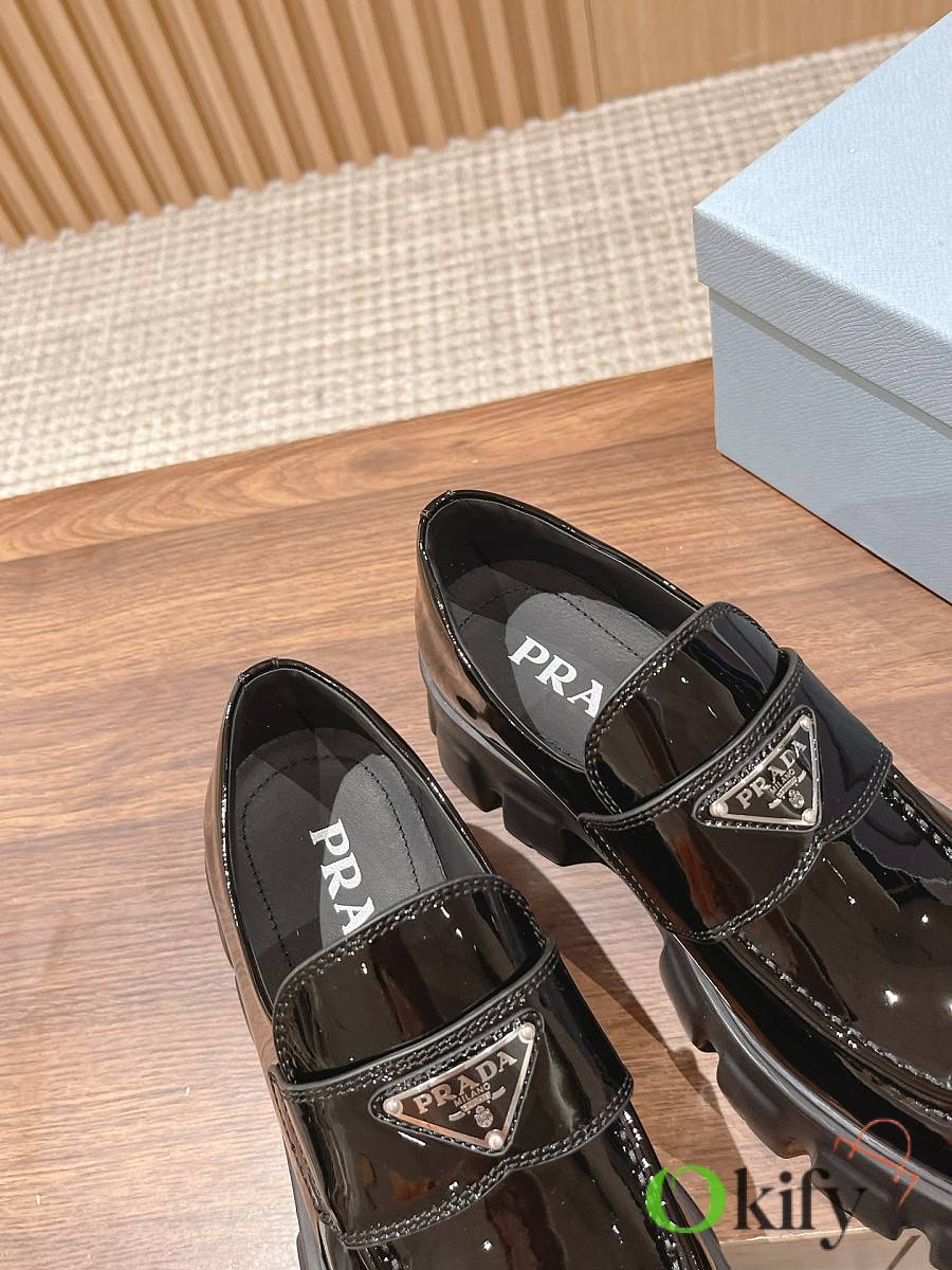 Okify Prada Black Patent Leather Thick Sole Women Loafers