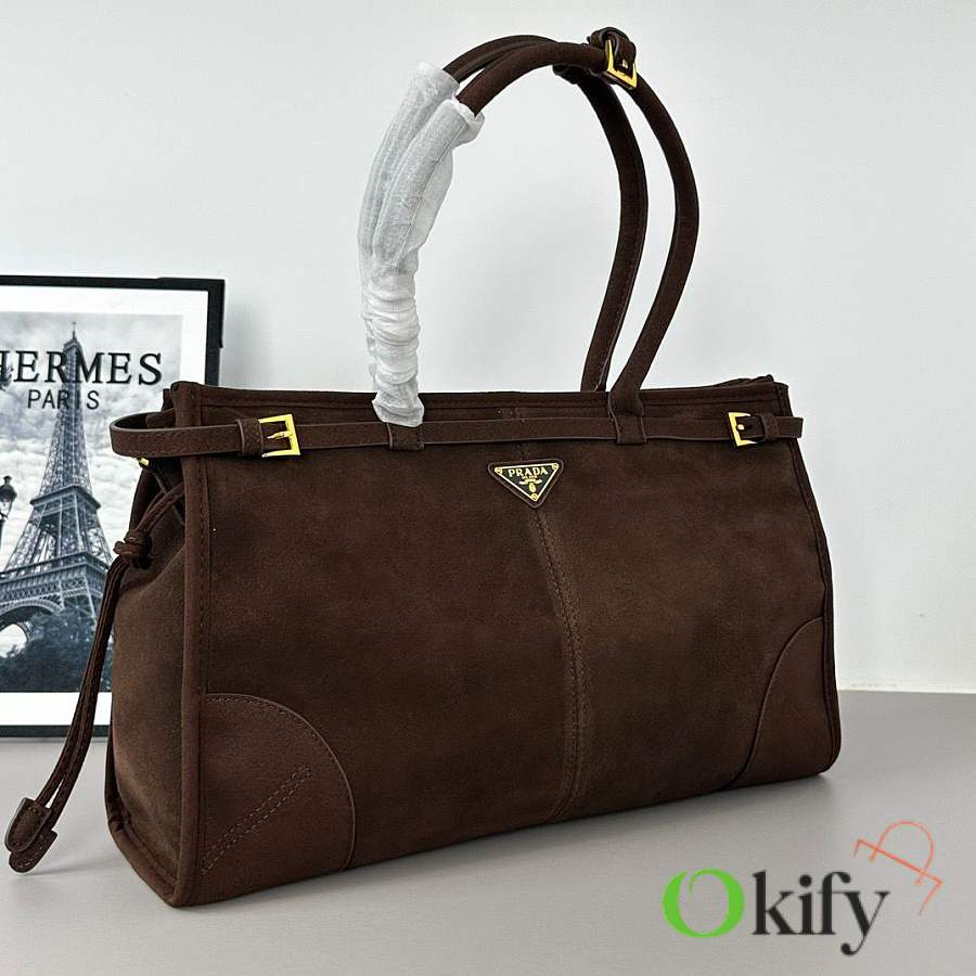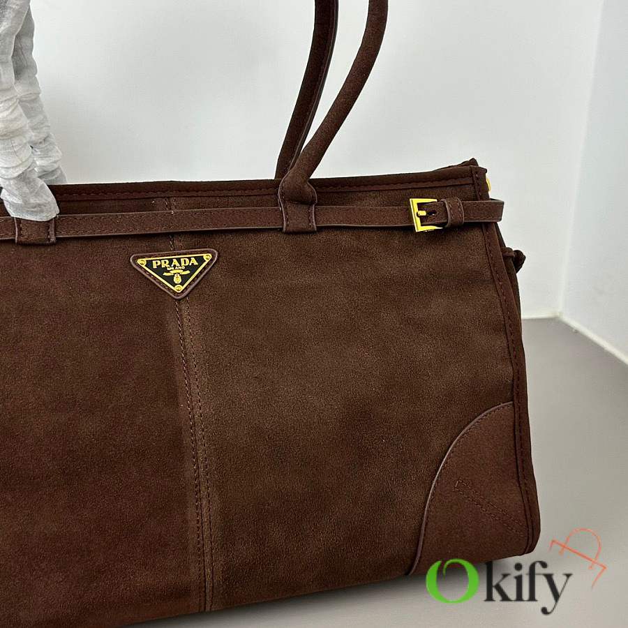 Okify Prada Bonnie Bag Dark Brown Suede 38x24x12cm