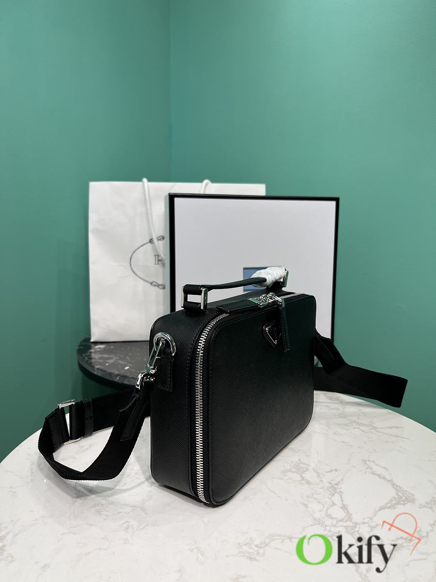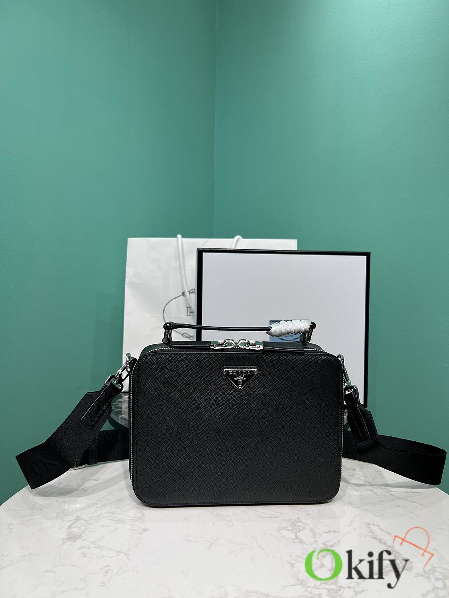 Okify Prada Brique Medium Saffiano Leather Bag In Black 2VH069 22x16x6cm