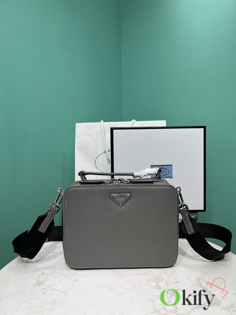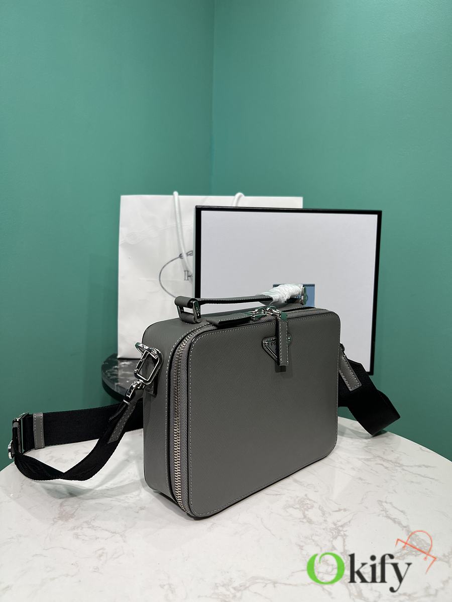 Okify Prada Brique Medium Saffiano Leather Bag In Gray 2VH069 22x16x6cm