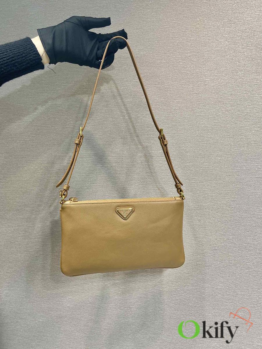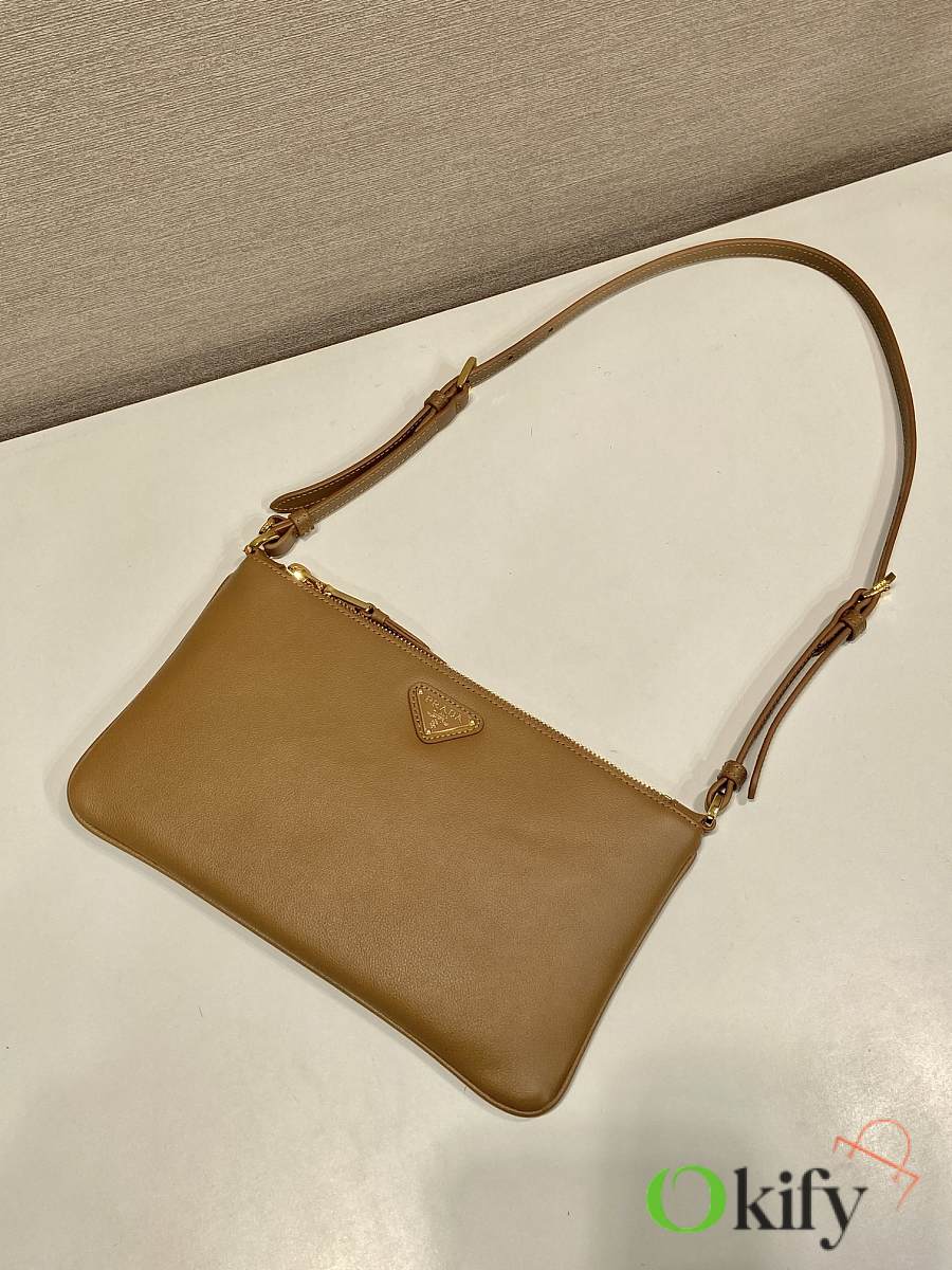 This underarm bag is made of imported calfskin, features a metal triangle logo, has a large capacity, is lightweight and practical, and looks great and stylish when worn. It's a timeless and popular item, so grab one now!