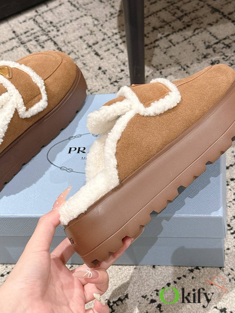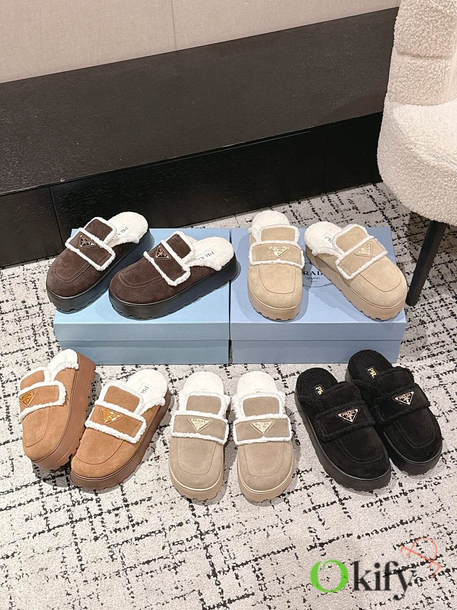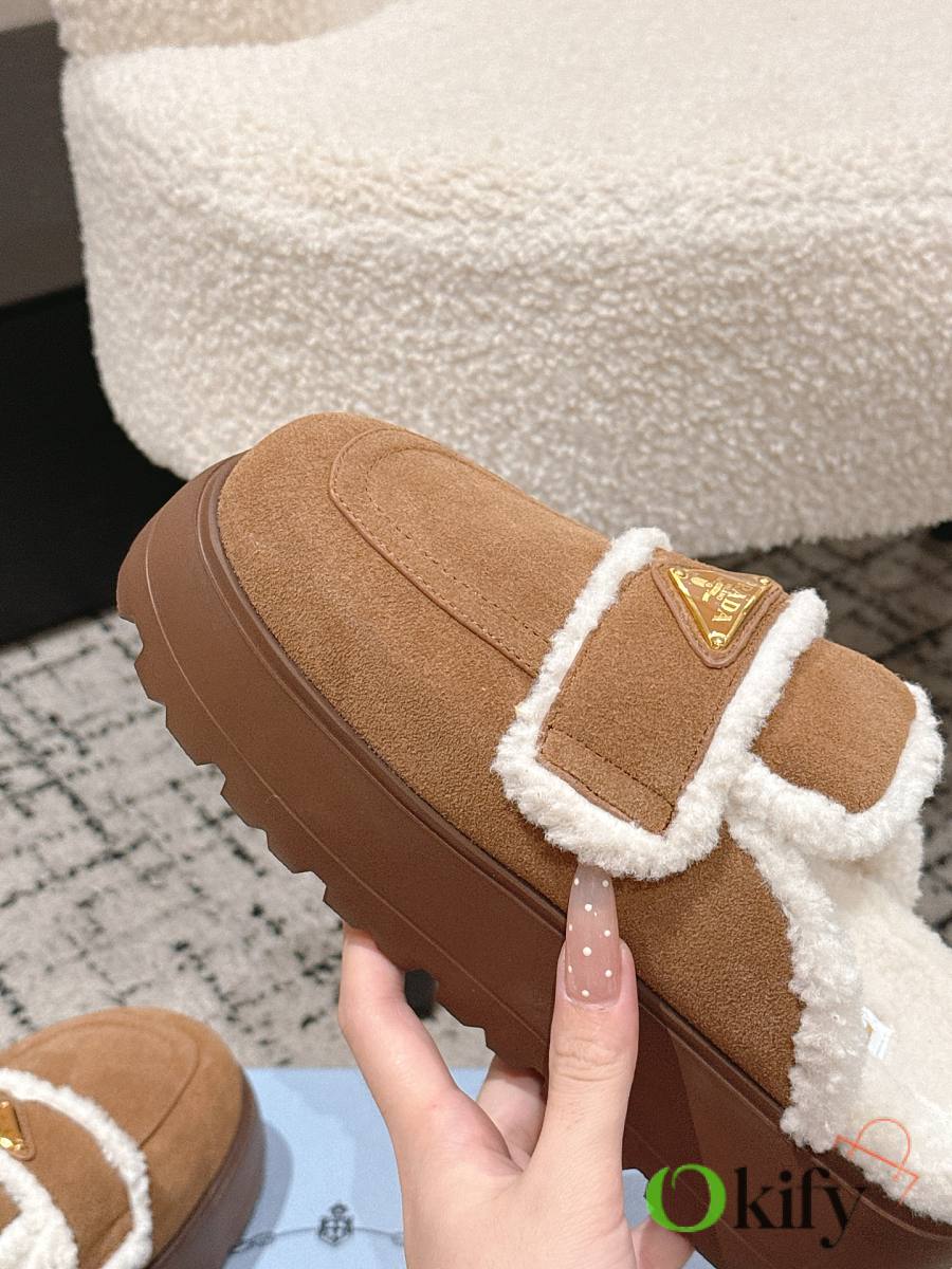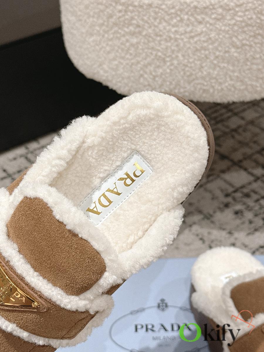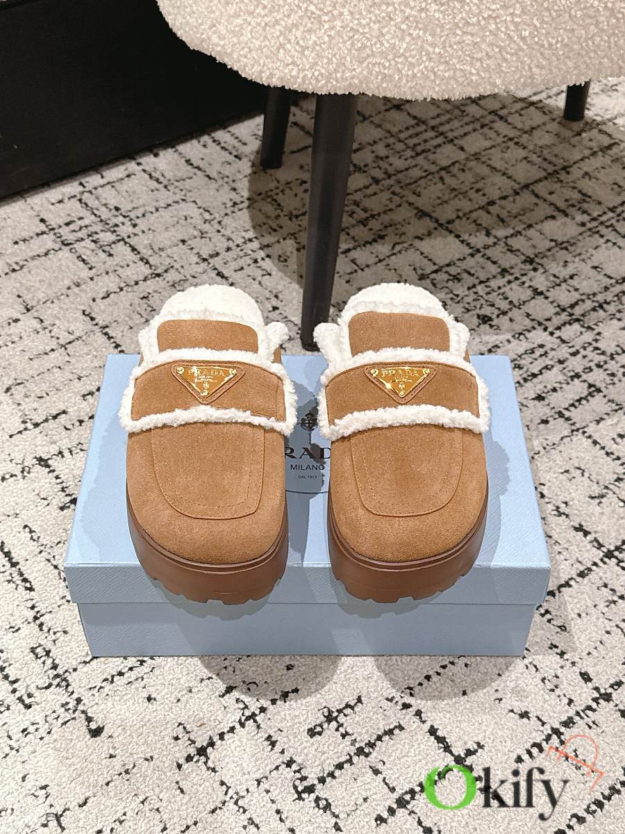 Okify Prada Brown Wool Women Slippers With Thick Soles And Covered Toe 1