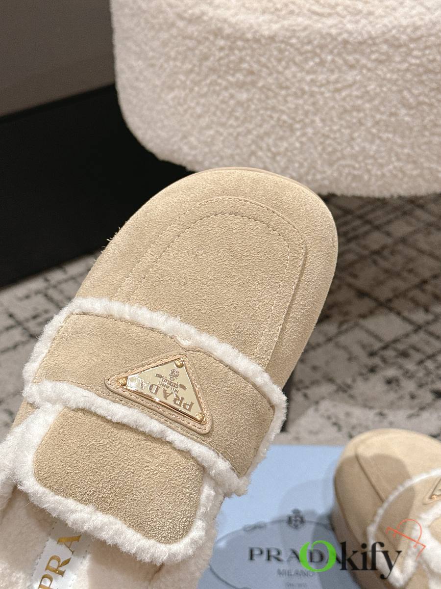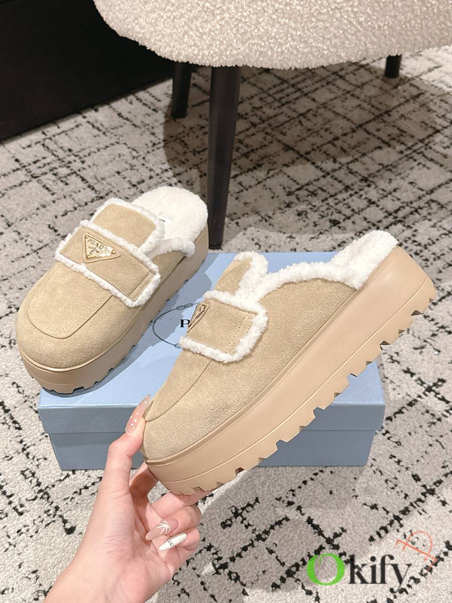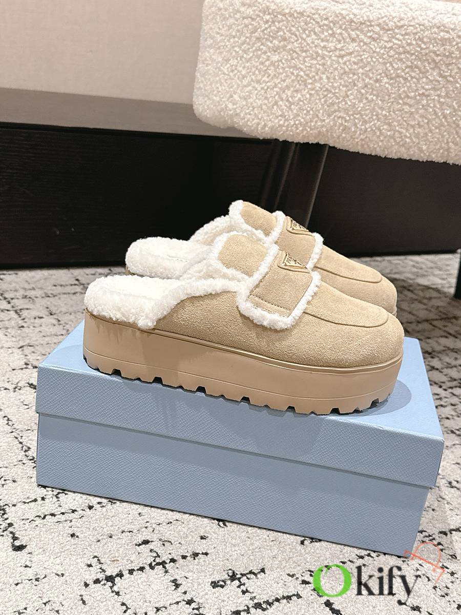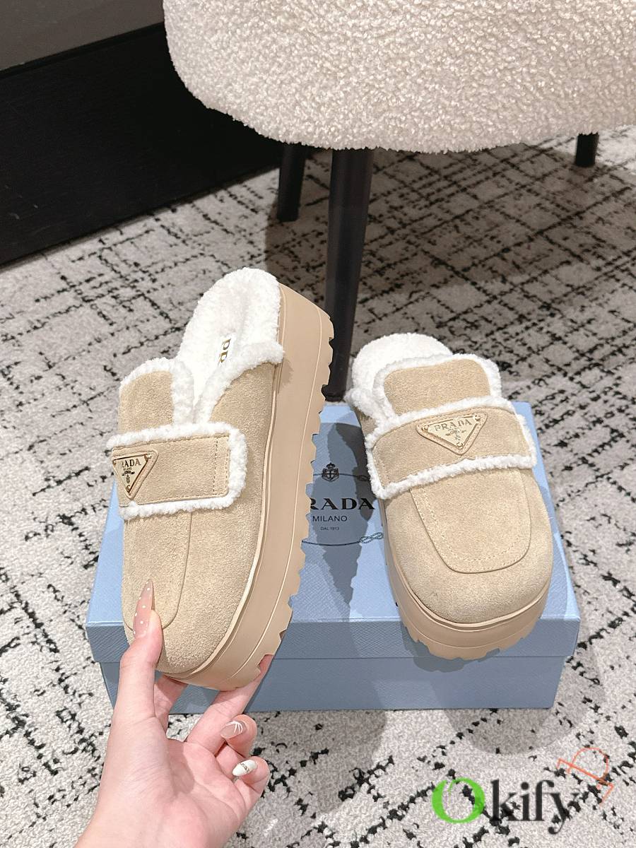 Okify Prada Cream Wool Women Slippers With Thick Soles And Covered Toe 1