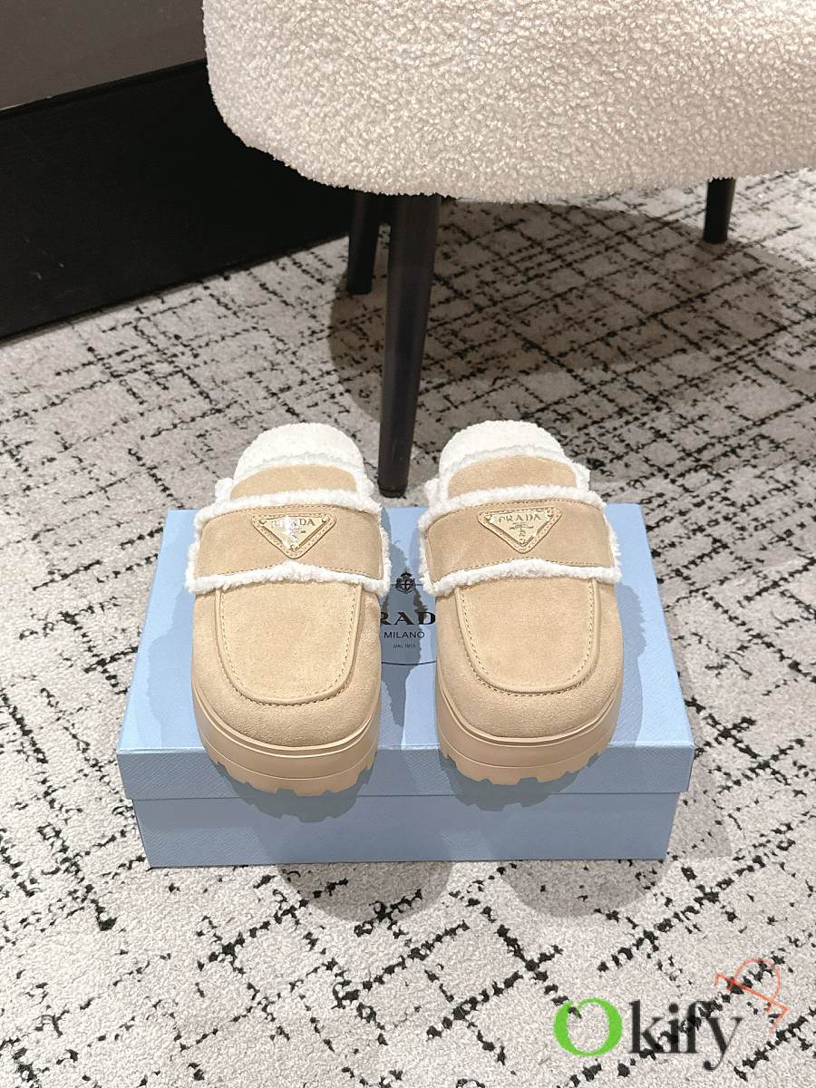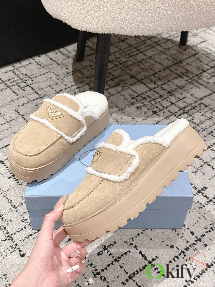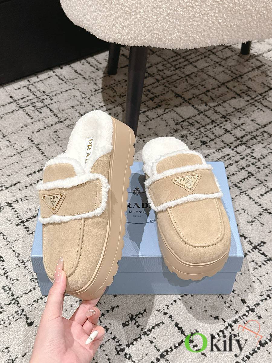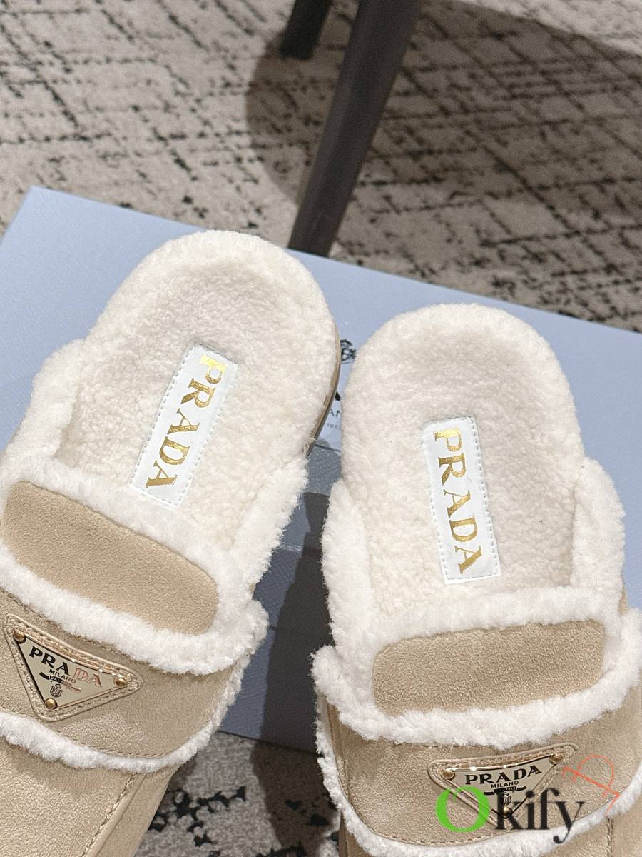 Okify Prada Cream Wool Women Slippers With Thick Soles And Covered Toe 2