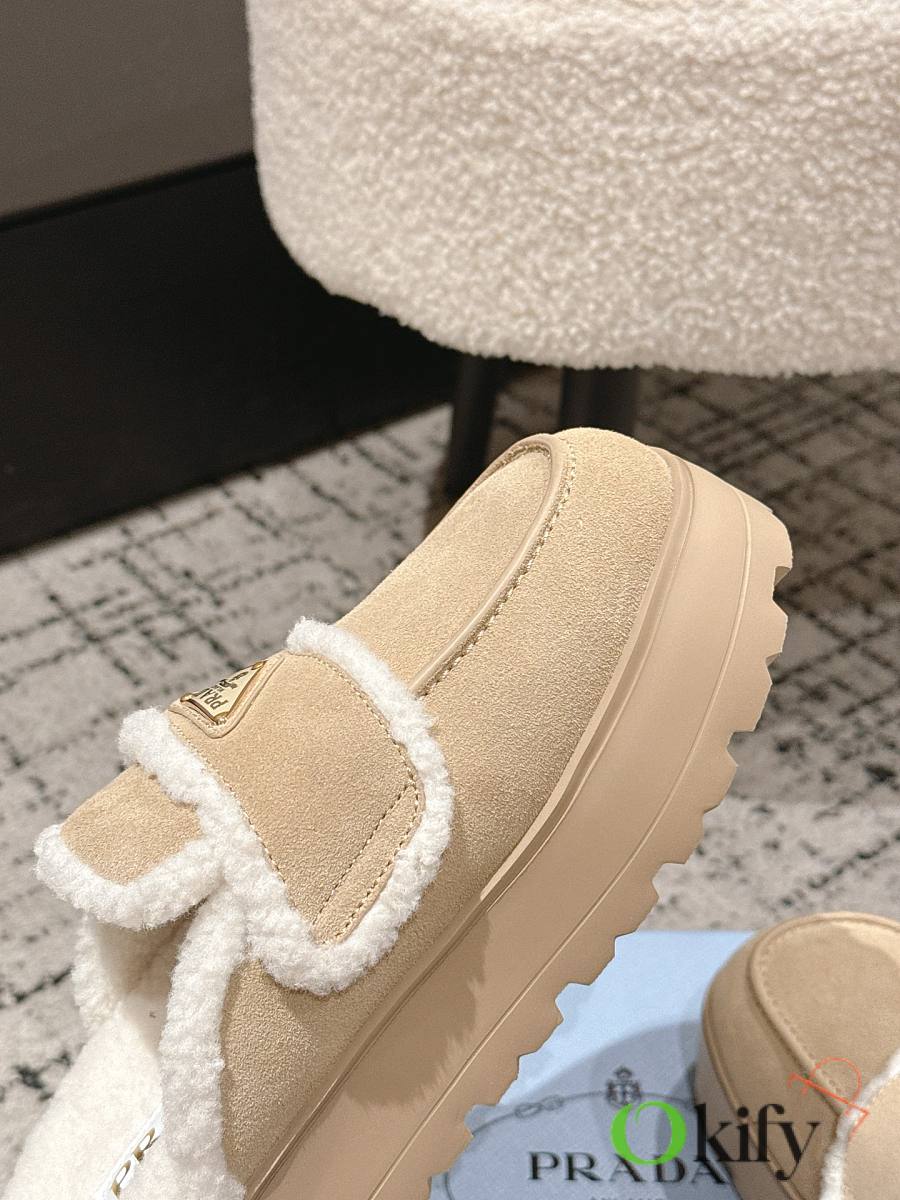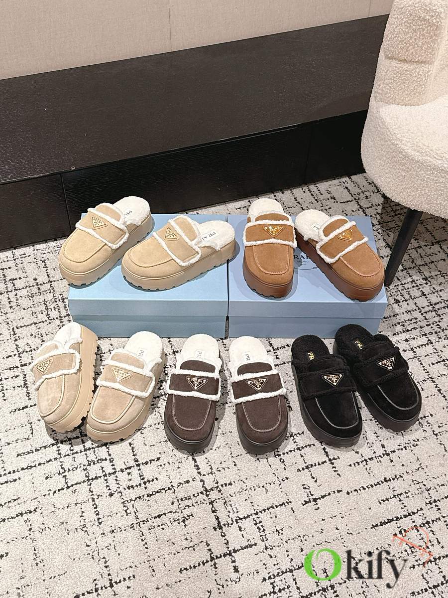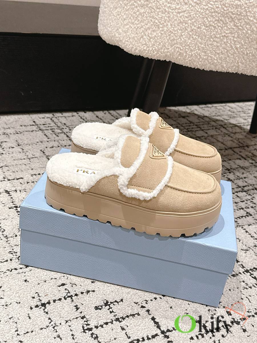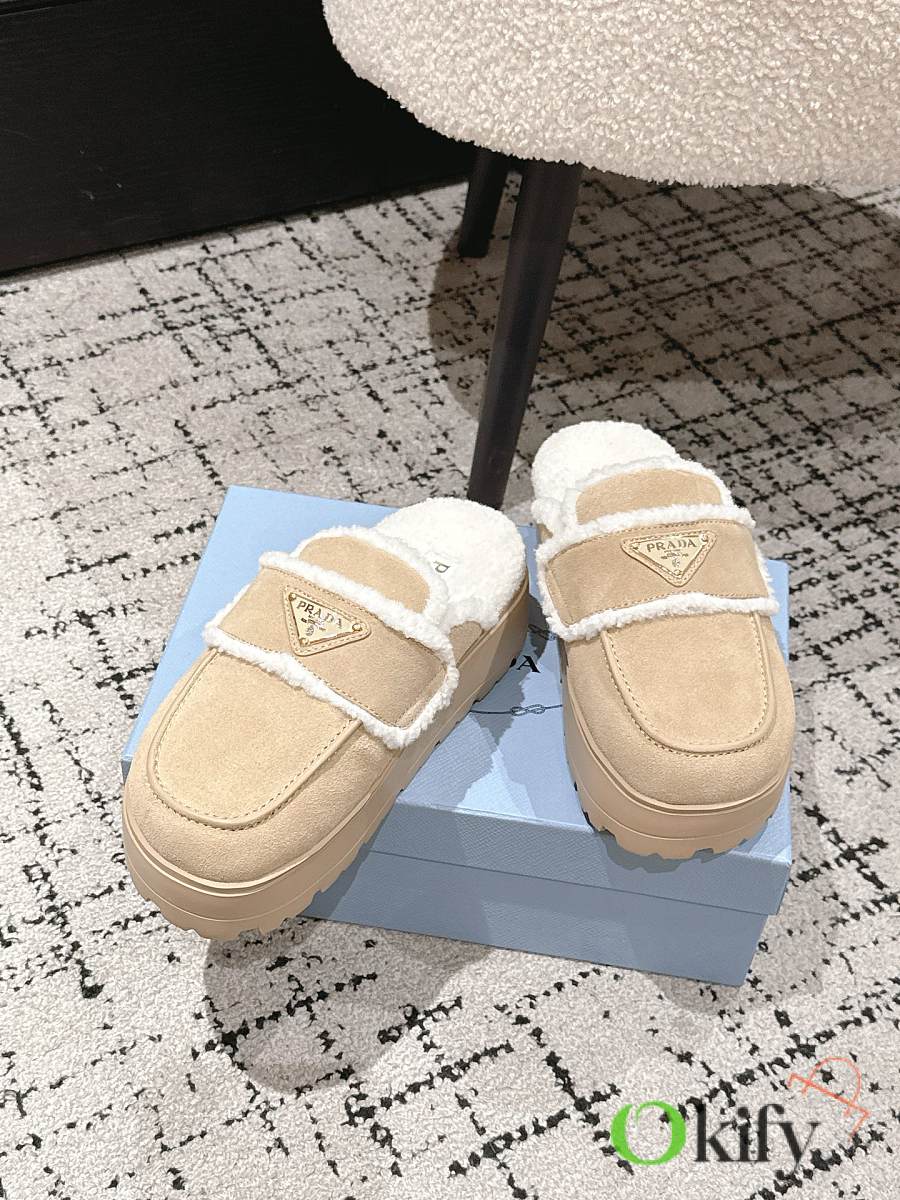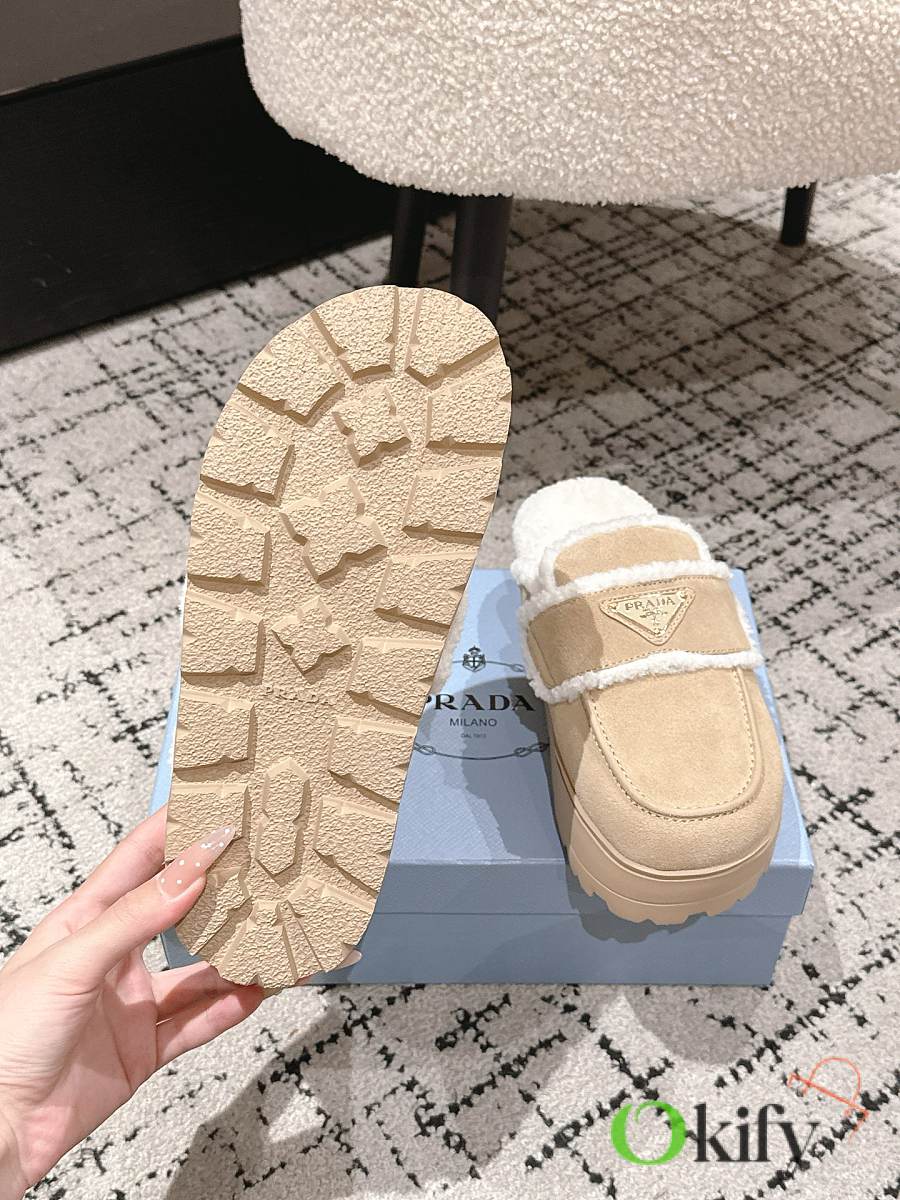 Okify Prada Cream Wool Women Slippers With Thick Soles And Covered Toe 2