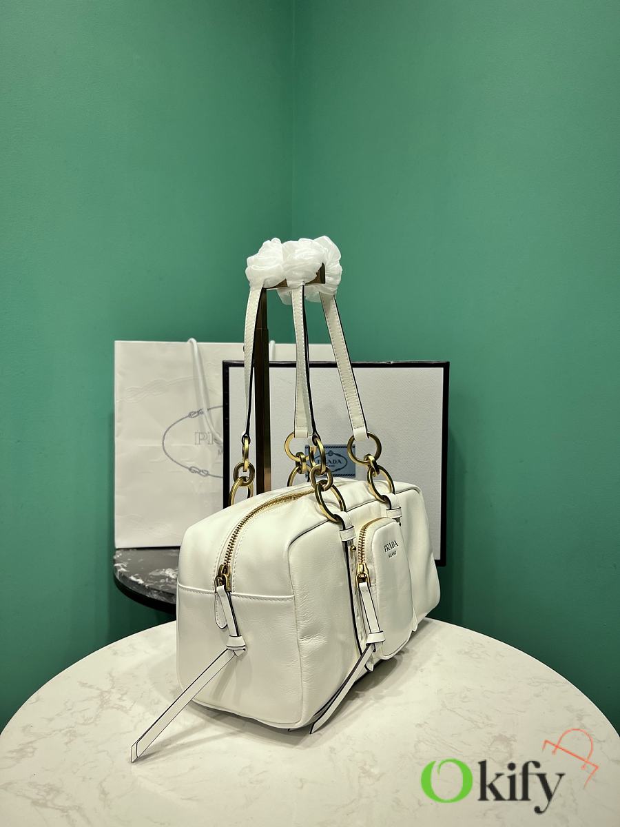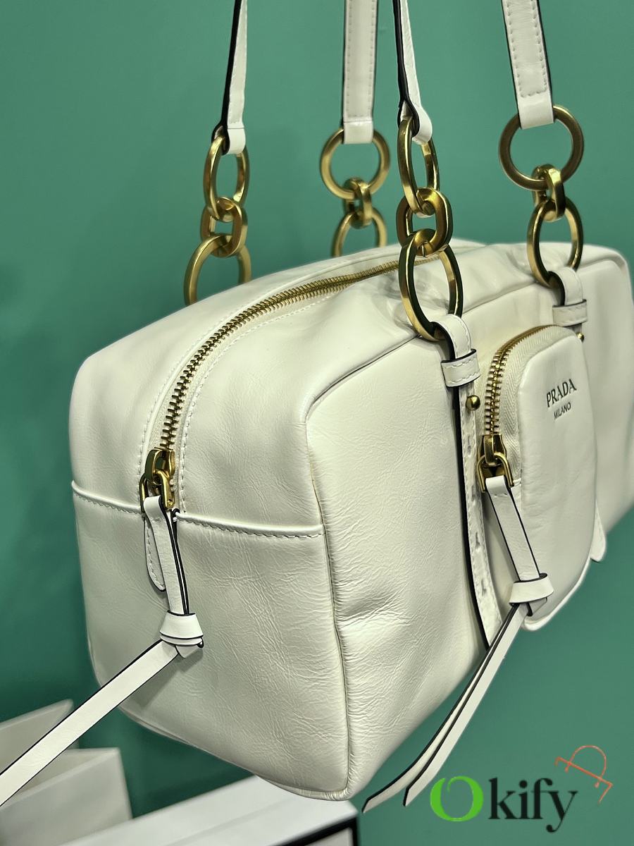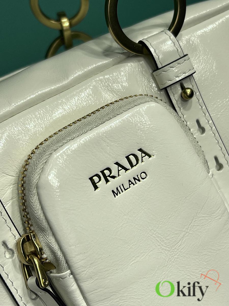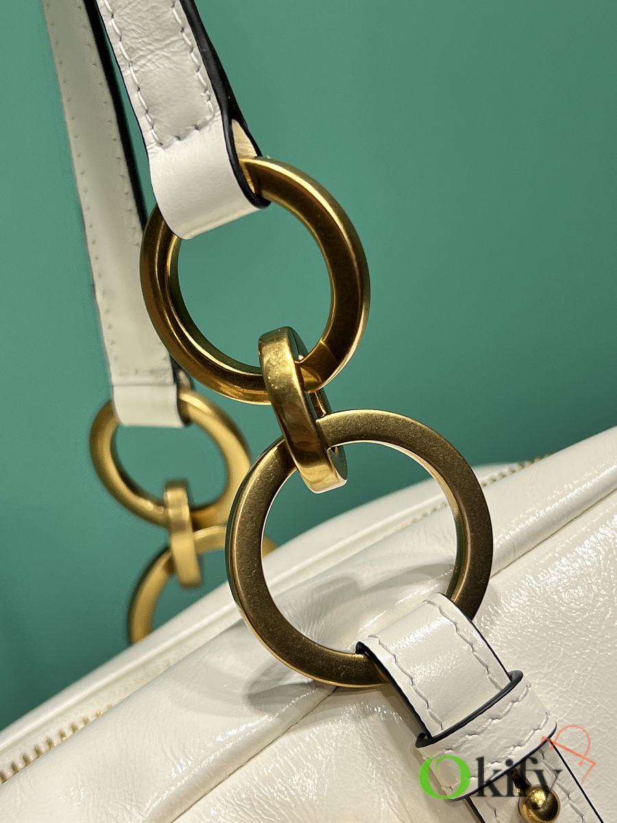 This large waxed leather shoulder bag features a reimagined design in soft waxed leather. Its vintage hardware and classic zippered pockets enhance its retro appeal. It can be carried on the shoulder or by hand, boasting ample storage for a stylish and versatile look.