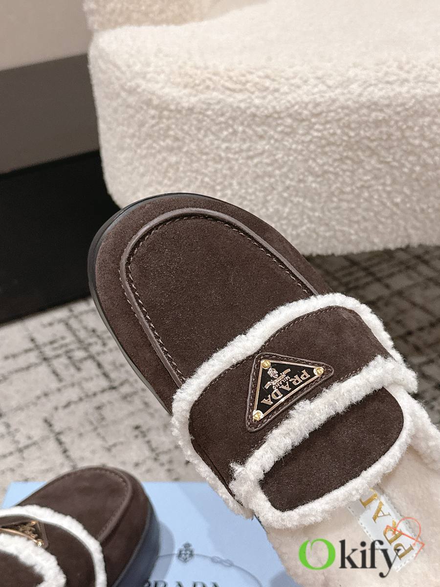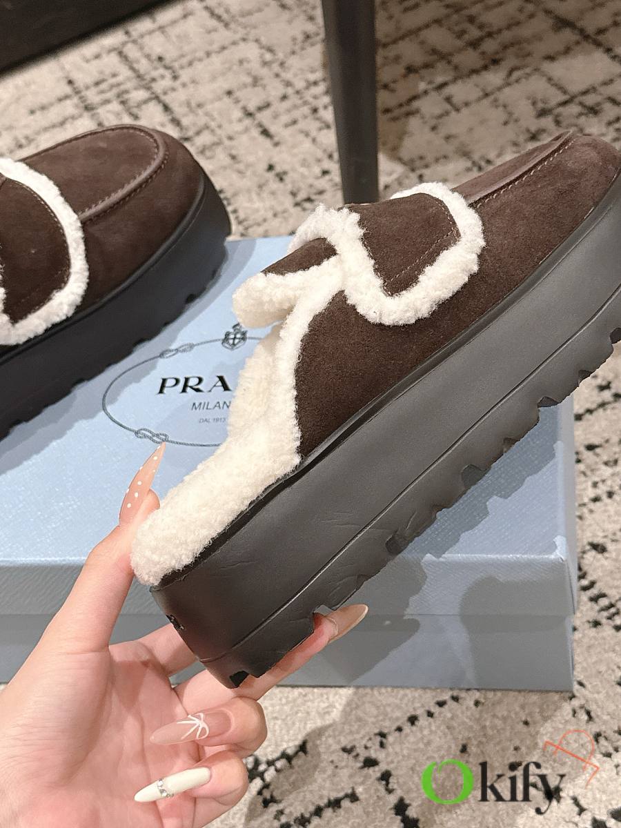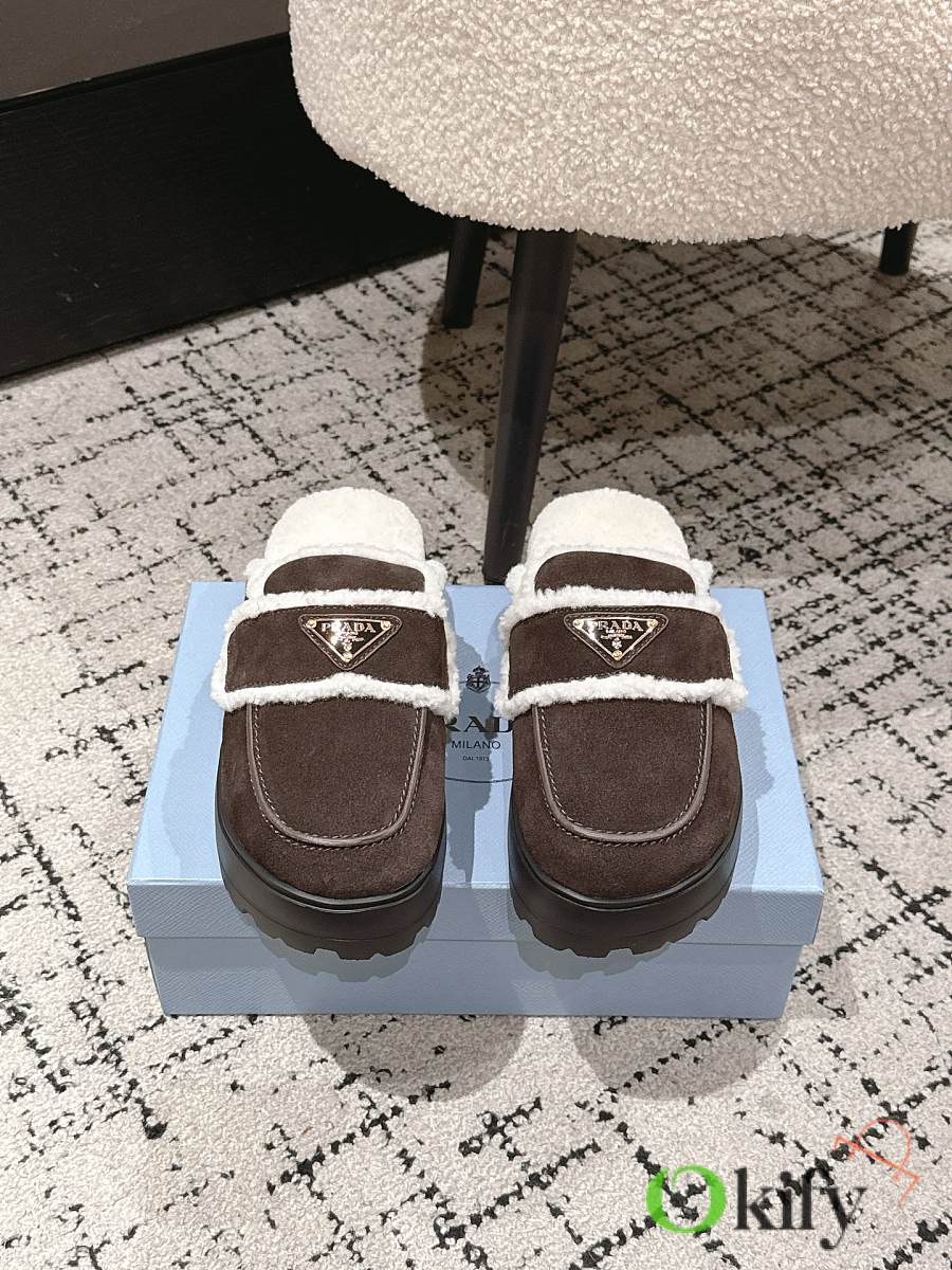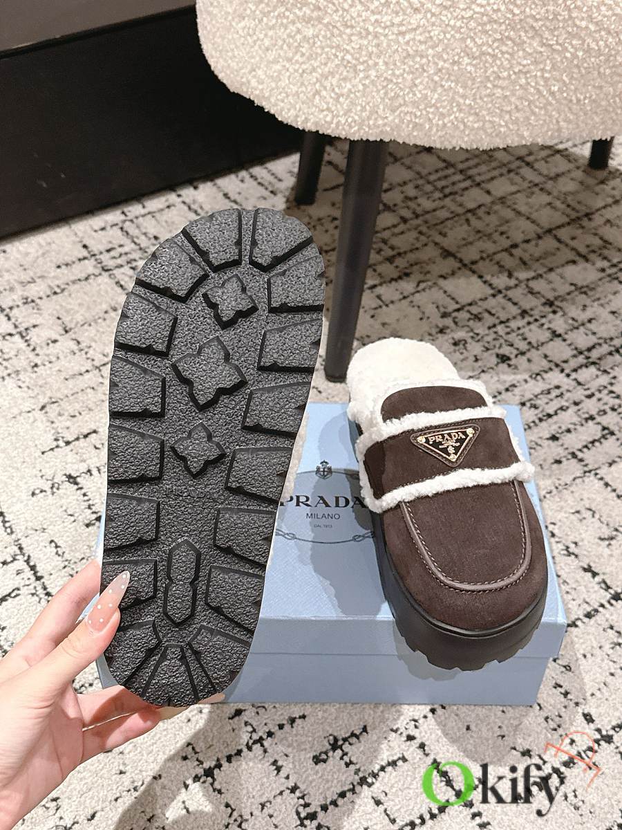 Okify Prada Dark Brown Wool Women Slippers With Thick Soles And Covered Toe 2