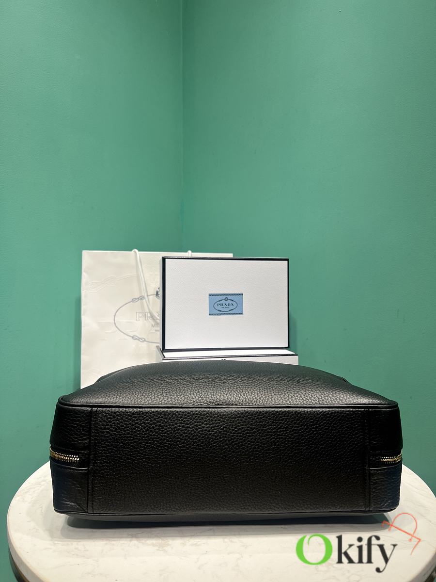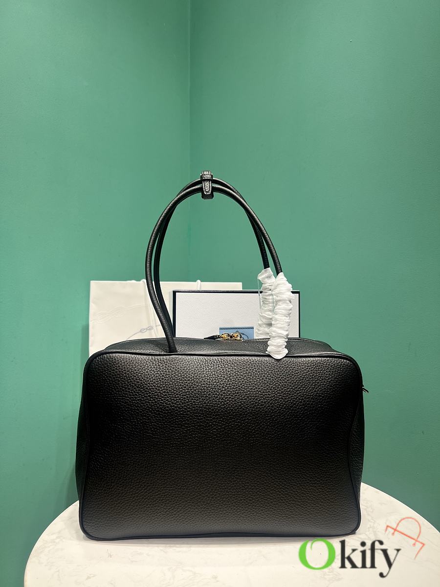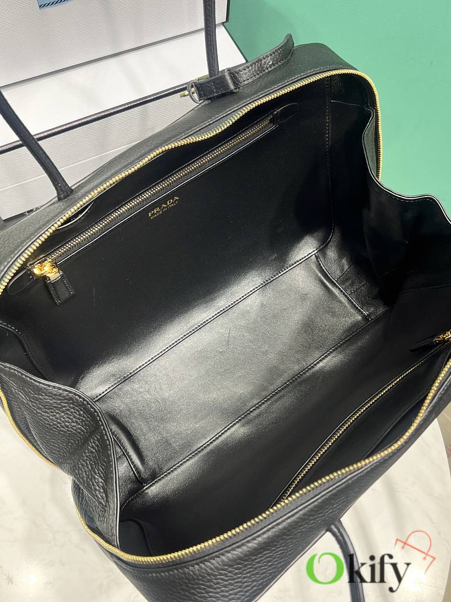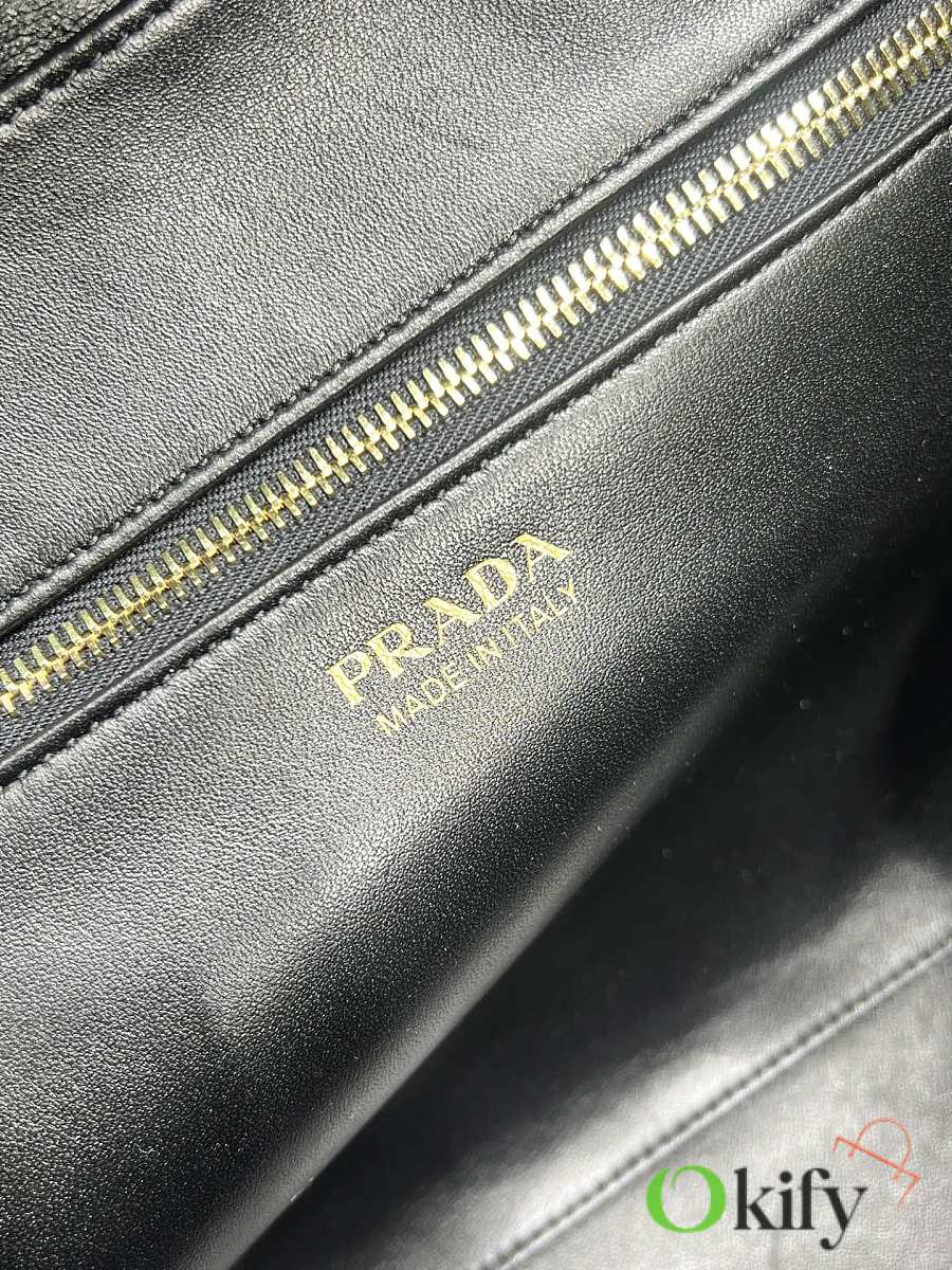 The long-handled tote (large) has arrived. Elegant geometric lines outline the exquisite silhouette of this handbag, which is winding and graceful, exuding a modern atmosphere. The structured body of the bag is made of leather, crafted with exquisite craftsmanship and exquisite details, showing the brand's craftsmanship. Shining metal hardware and the iconic enameled metal triangle logo add details. There is a zipper pocket inside