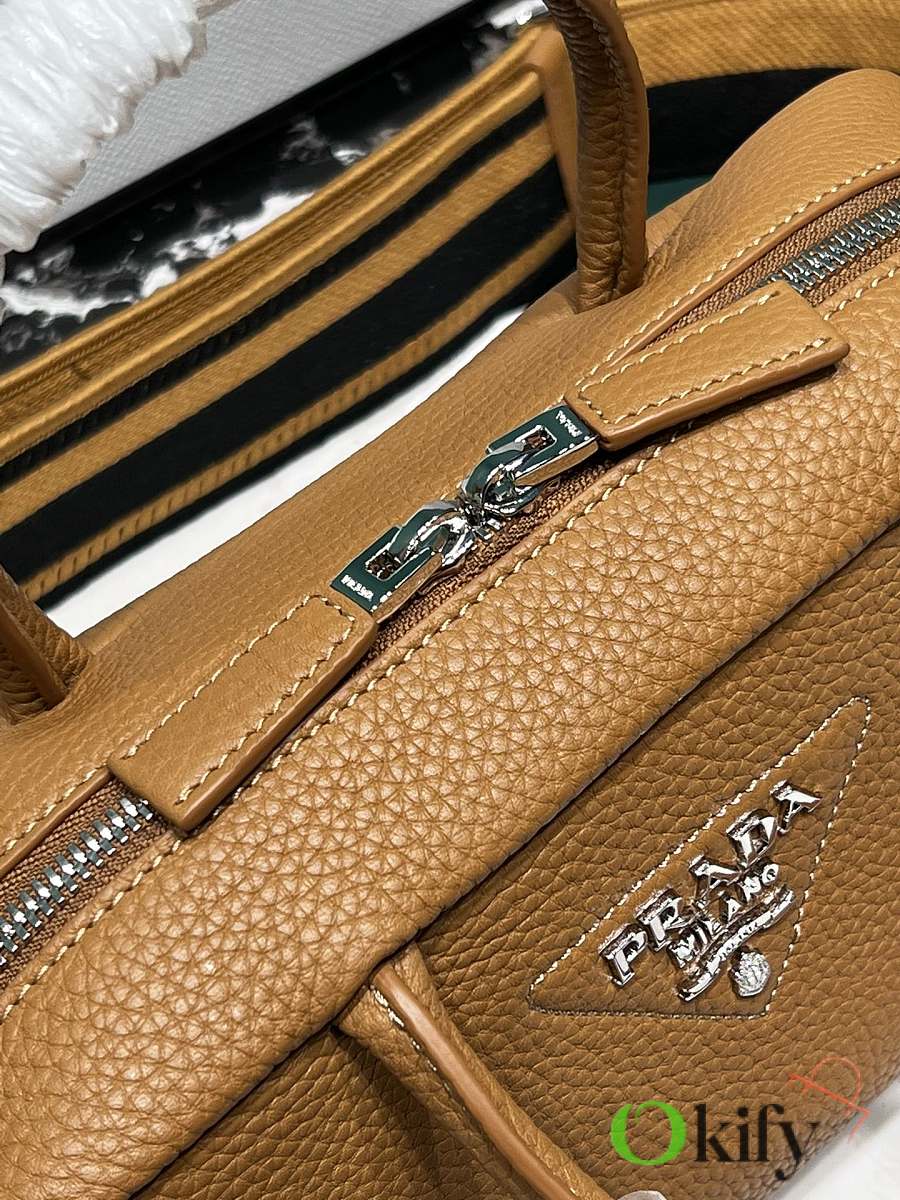 Okify Prada Leather Top Handle Bag In Brown 1BB102 24x12x8.5cm