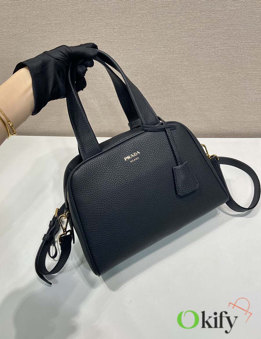 Okify Prada Medium Leather Top Handle Bag In Black 1BB149 28x20x13cm