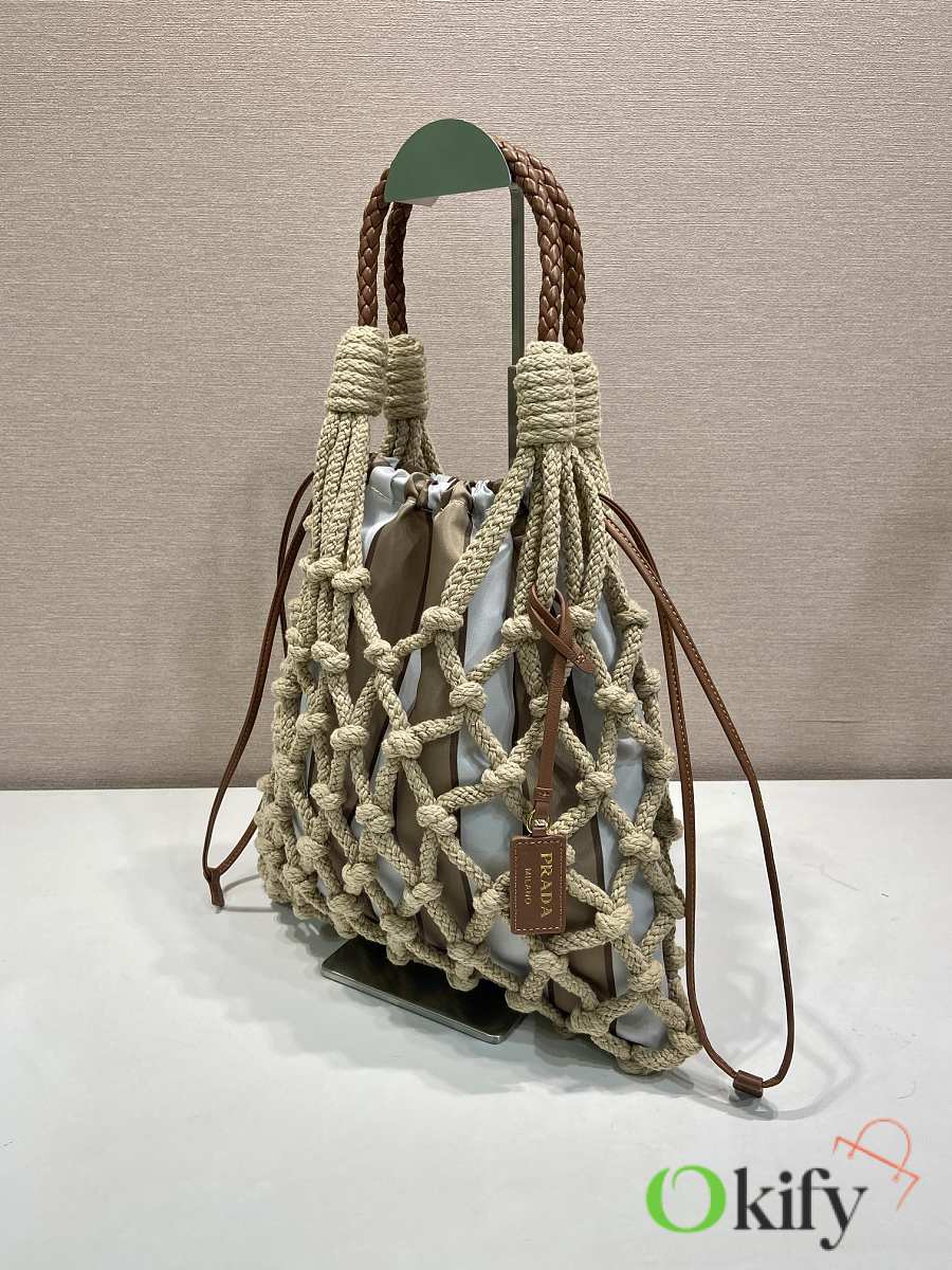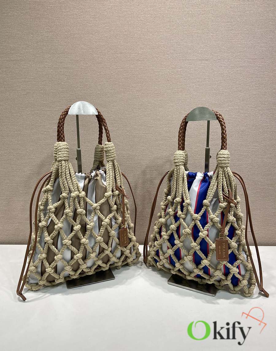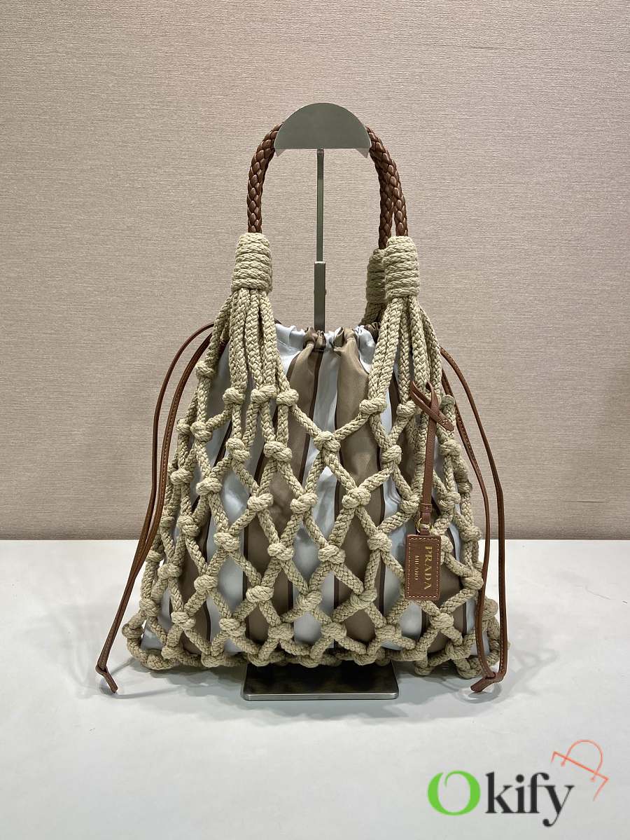 Okify Prada Noué Medium Cotton Macramé Bag Beige 1BC111 37x30cm