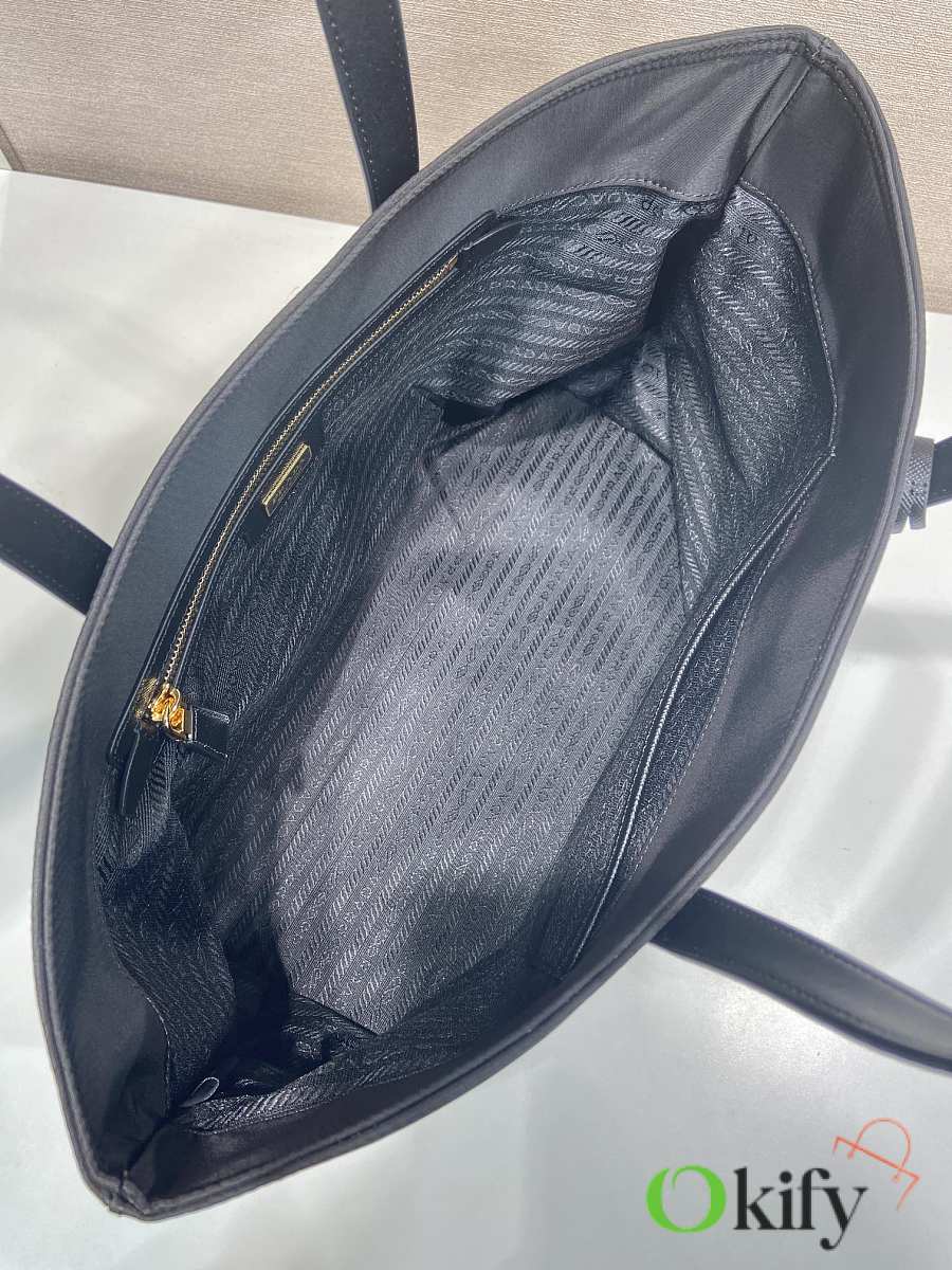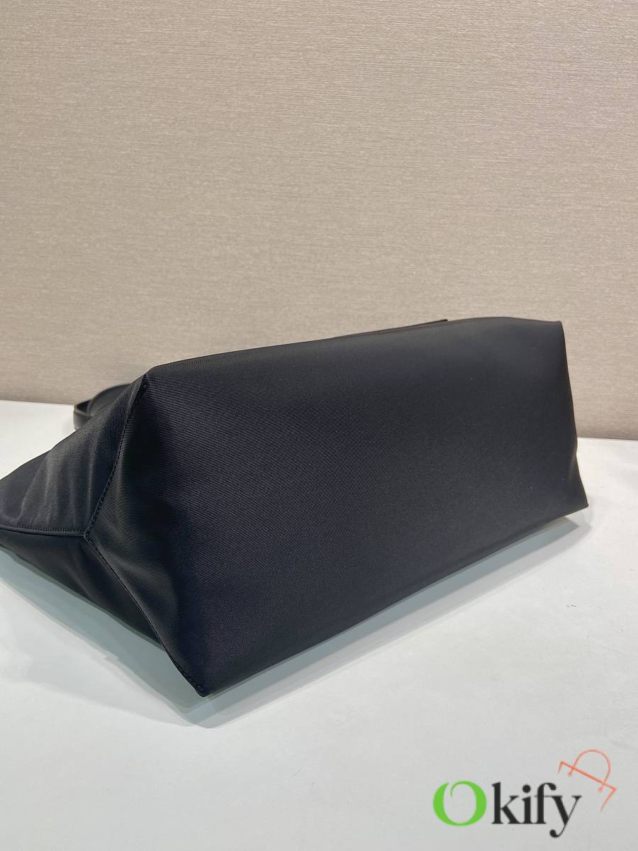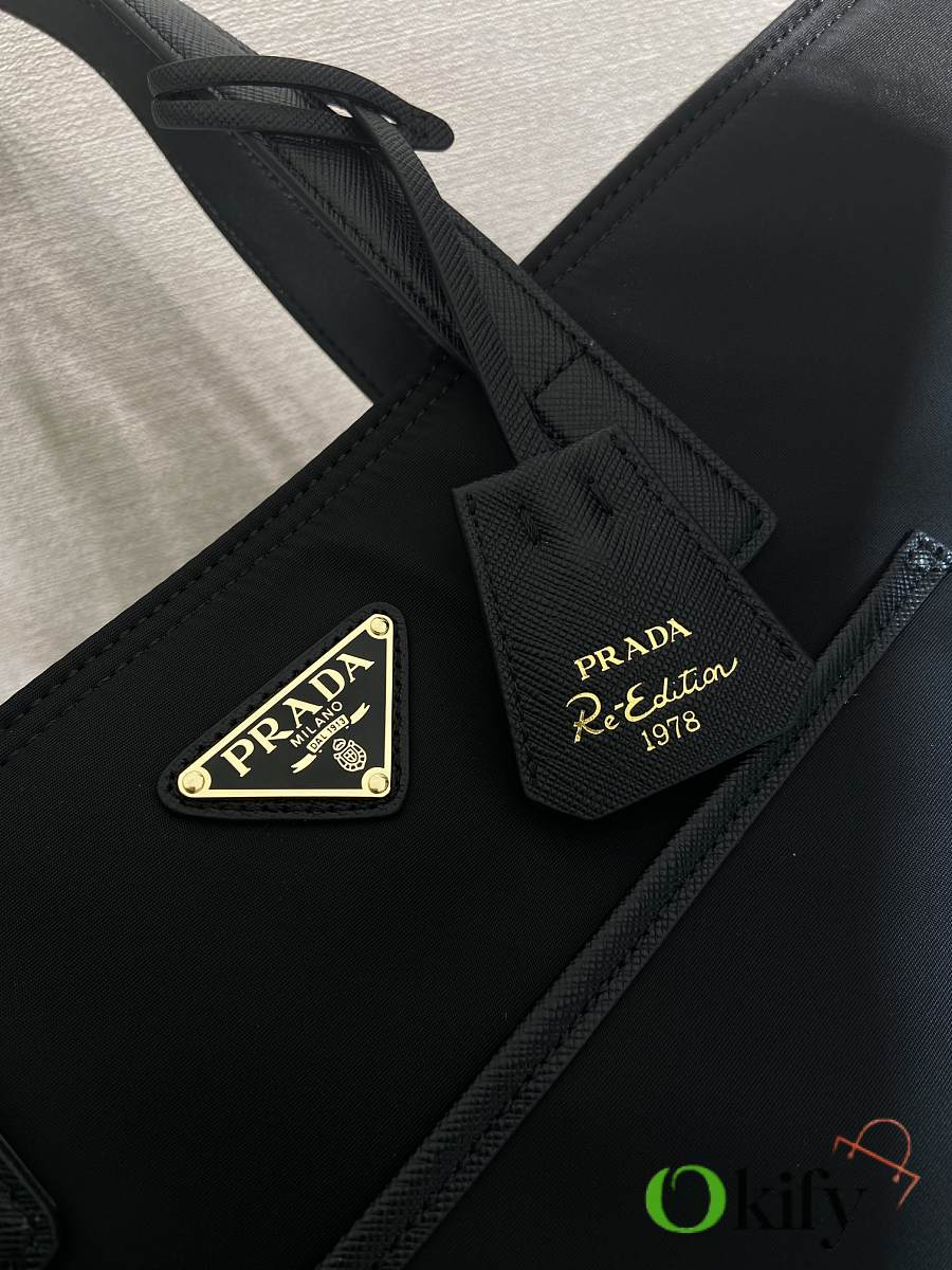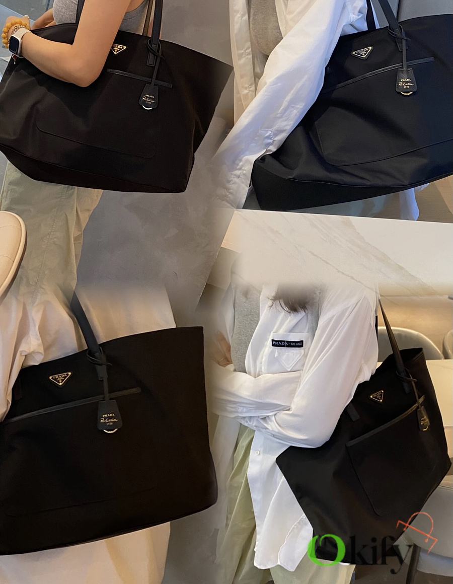 This timeless tote bag is a reinterpretation of a classic design, showcasing a unique style with its refined yet practical silhouette. Featuring clean lines, crafted from recycled nylon, it boasts imported Saffiano leather handles, metal hardware, and two interior pockets. With its spacious interior, grab yours now! Another timeless and ever-popular style!
