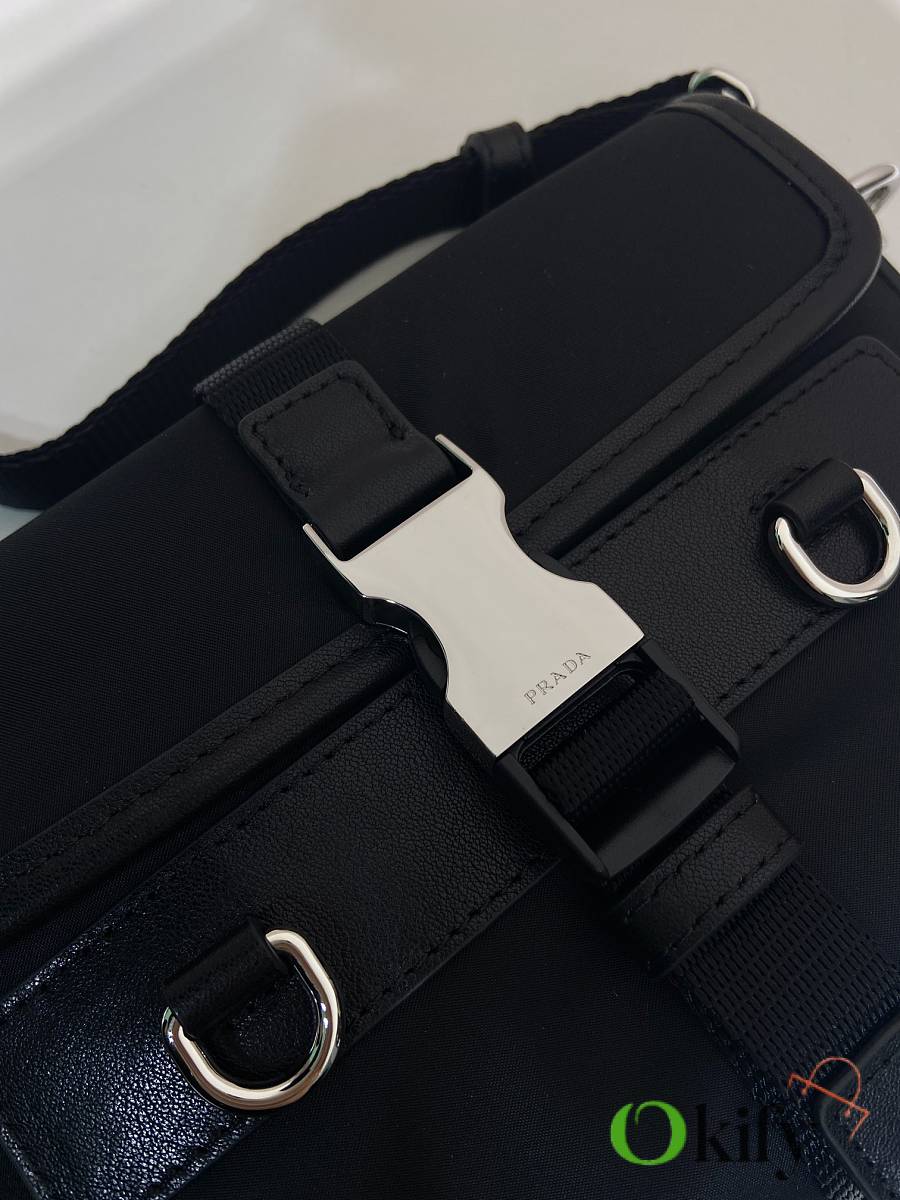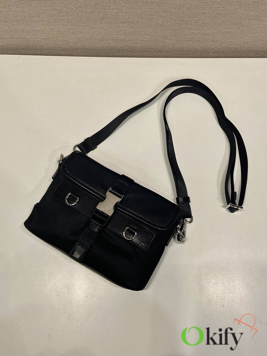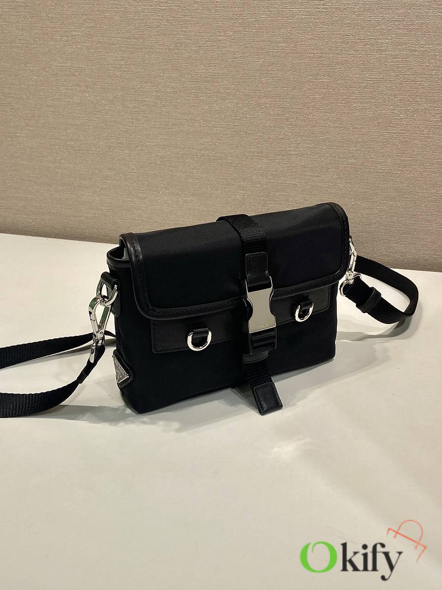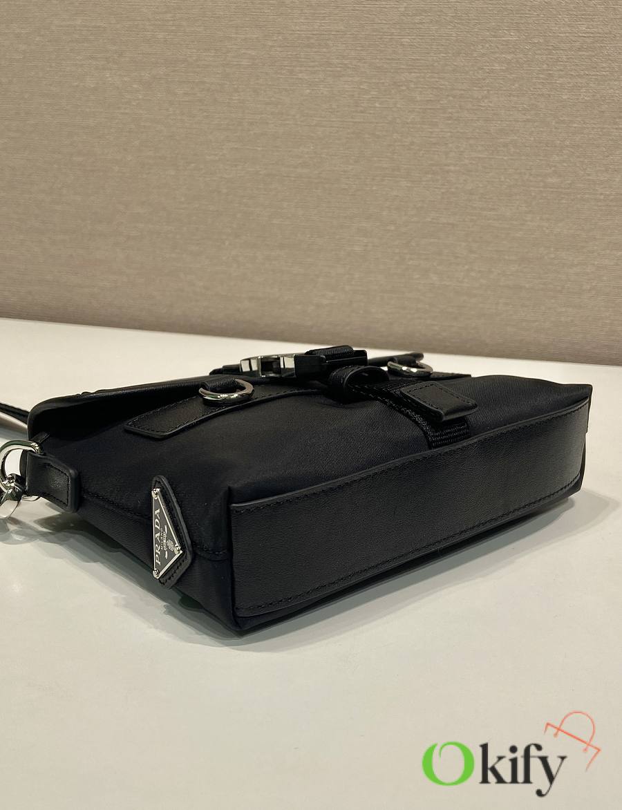 This sophisticated and modern smartphone case is crafted from Re-Nylon. It features a versatile design with leather details and a practical detachable, adjustable shoulder strap. An enamel metal triangle logo adds a touch of iconic style. It also includes two card slots.