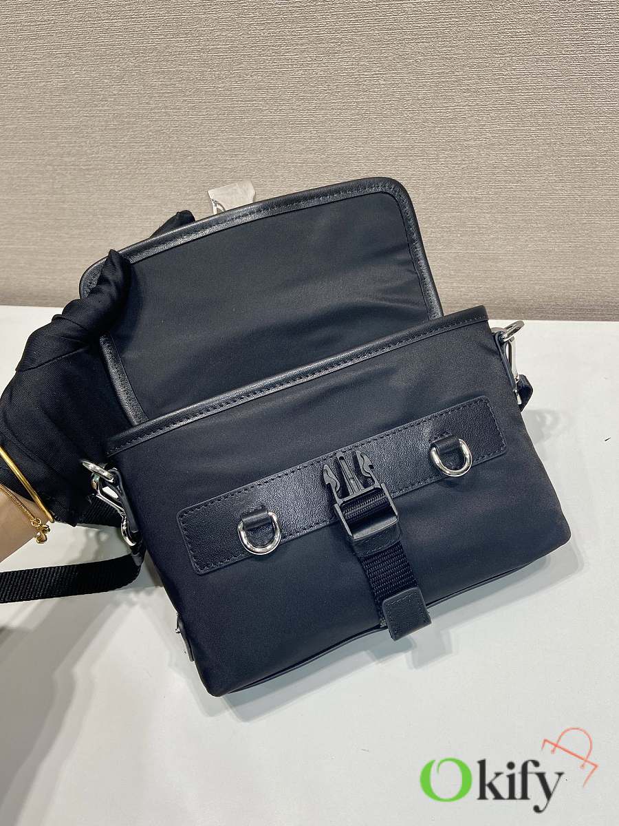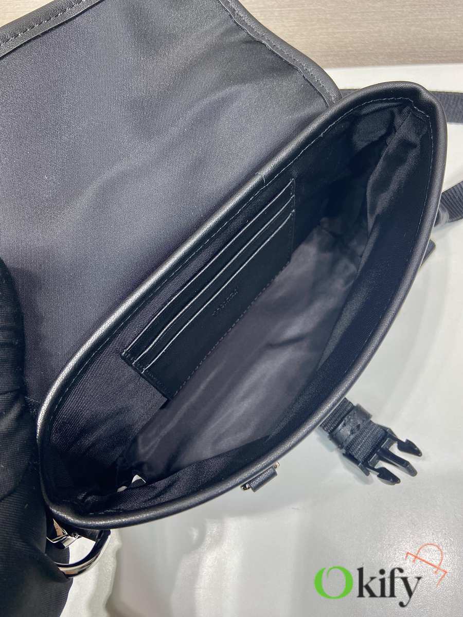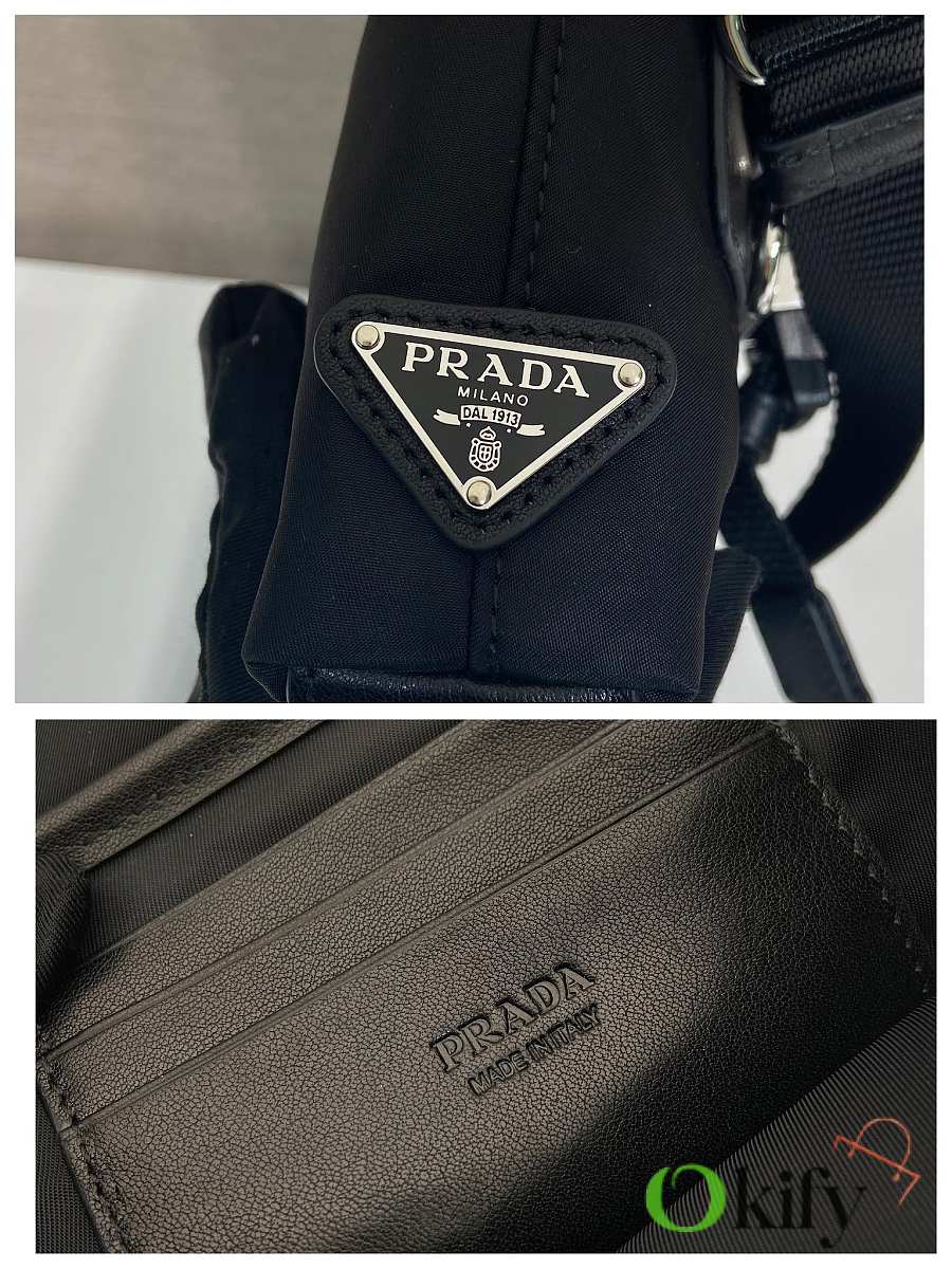 This sophisticated and modern smartphone case is crafted from Re-Nylon. It features a versatile design with leather details and a practical detachable, adjustable shoulder strap. An enamel metal triangle logo adds a touch of iconic style. It also includes two card slots.