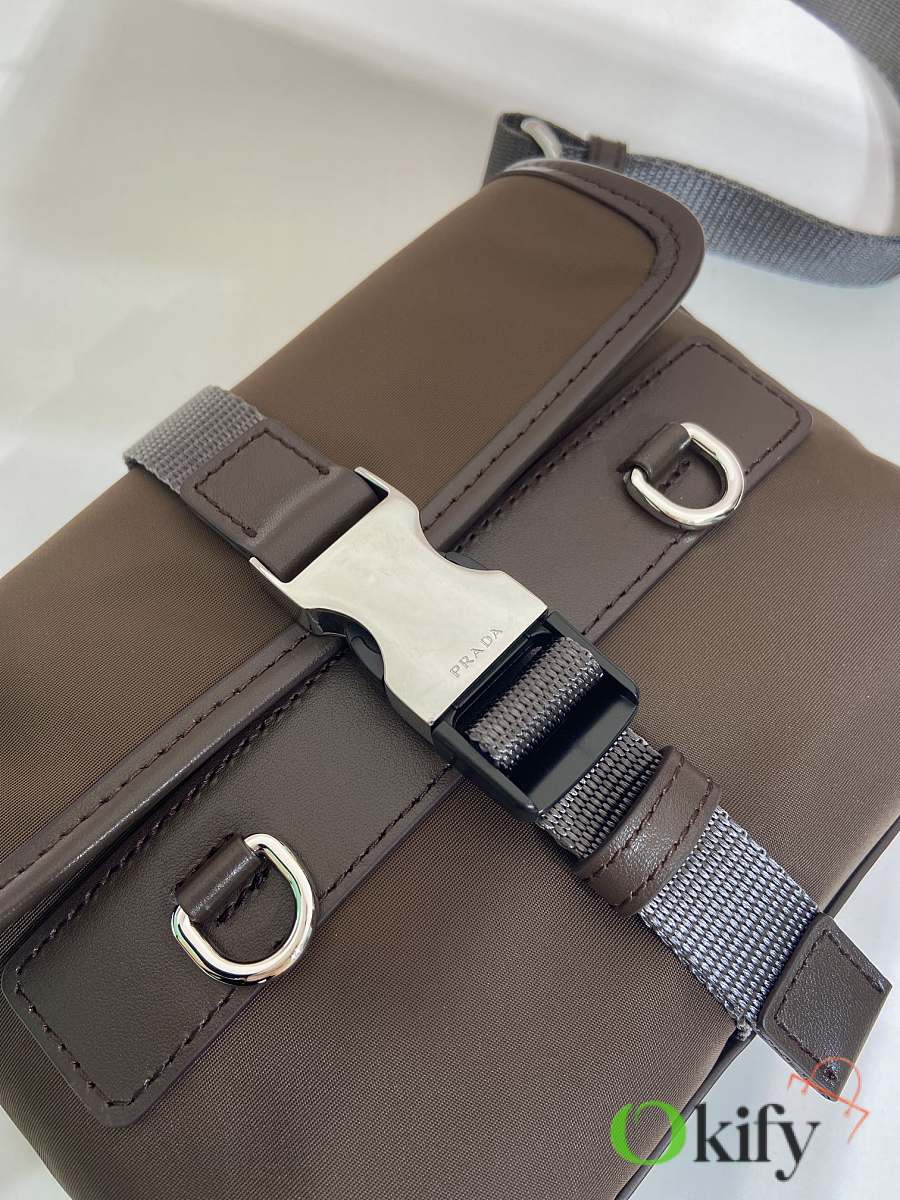 Okify Prada Re-Nylon And Leather Smartphone Case Bag Brown 2ZT071 19x13x5.5cm