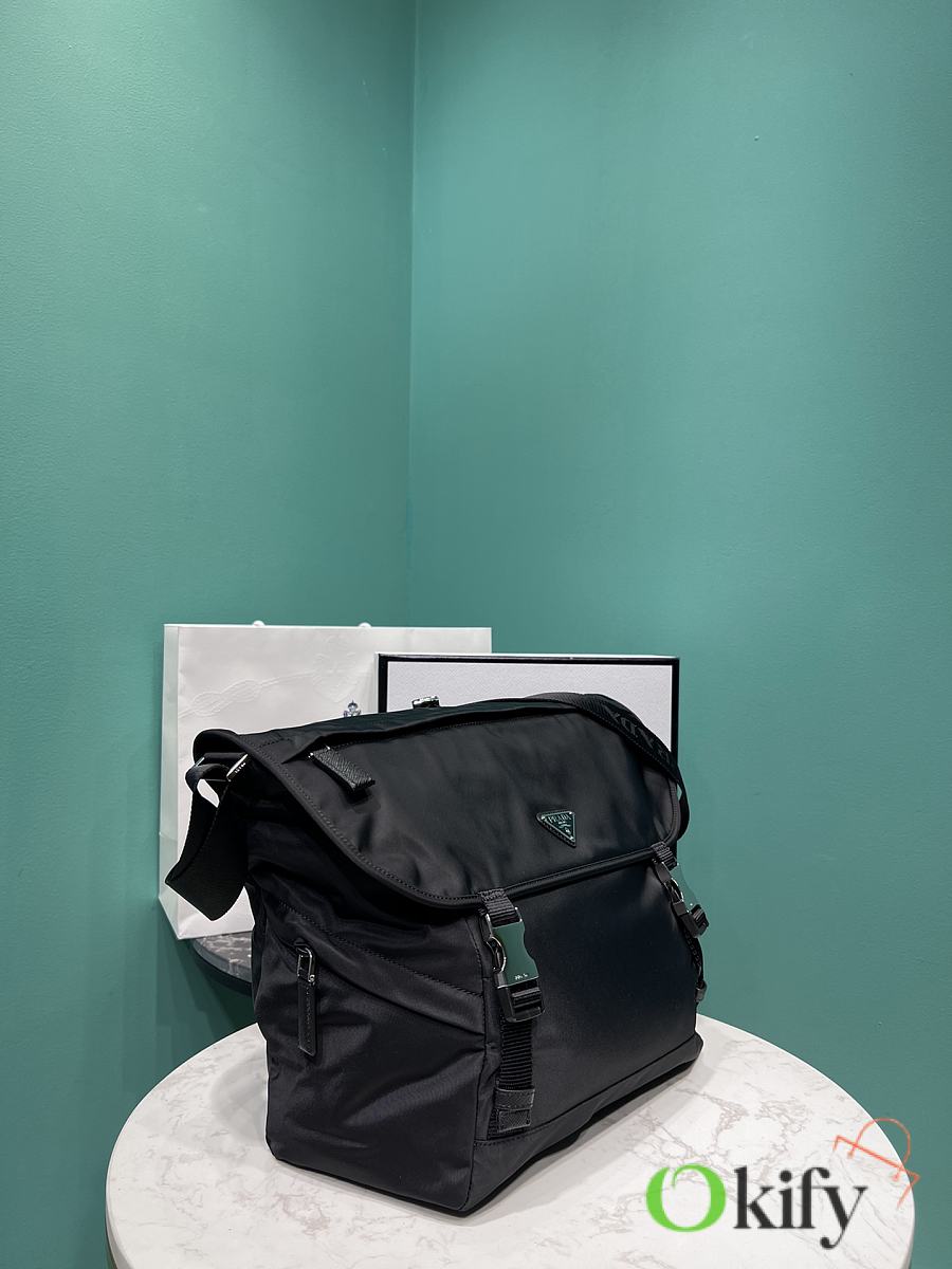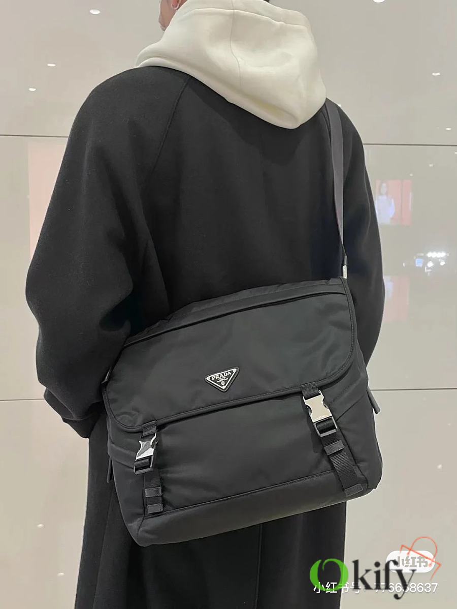 Okify Prada Re-Nylon And Saffiano Leather Shoulder Bag In Black 2VD052 30x27.5x14.5cm
