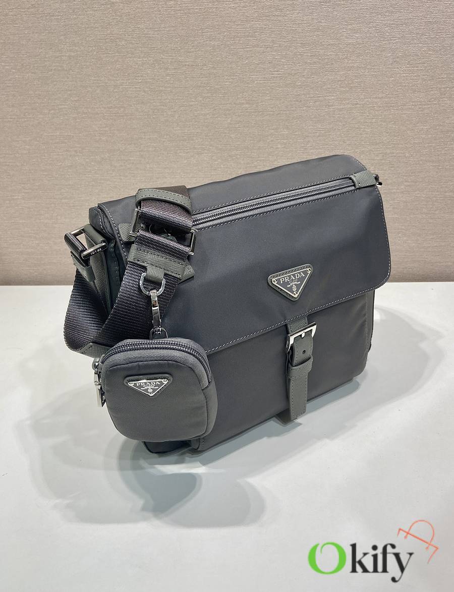 Okify Prada Re-Nylon Shoulder Bag Gray 1BD994 25x22x10cm