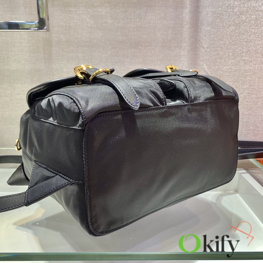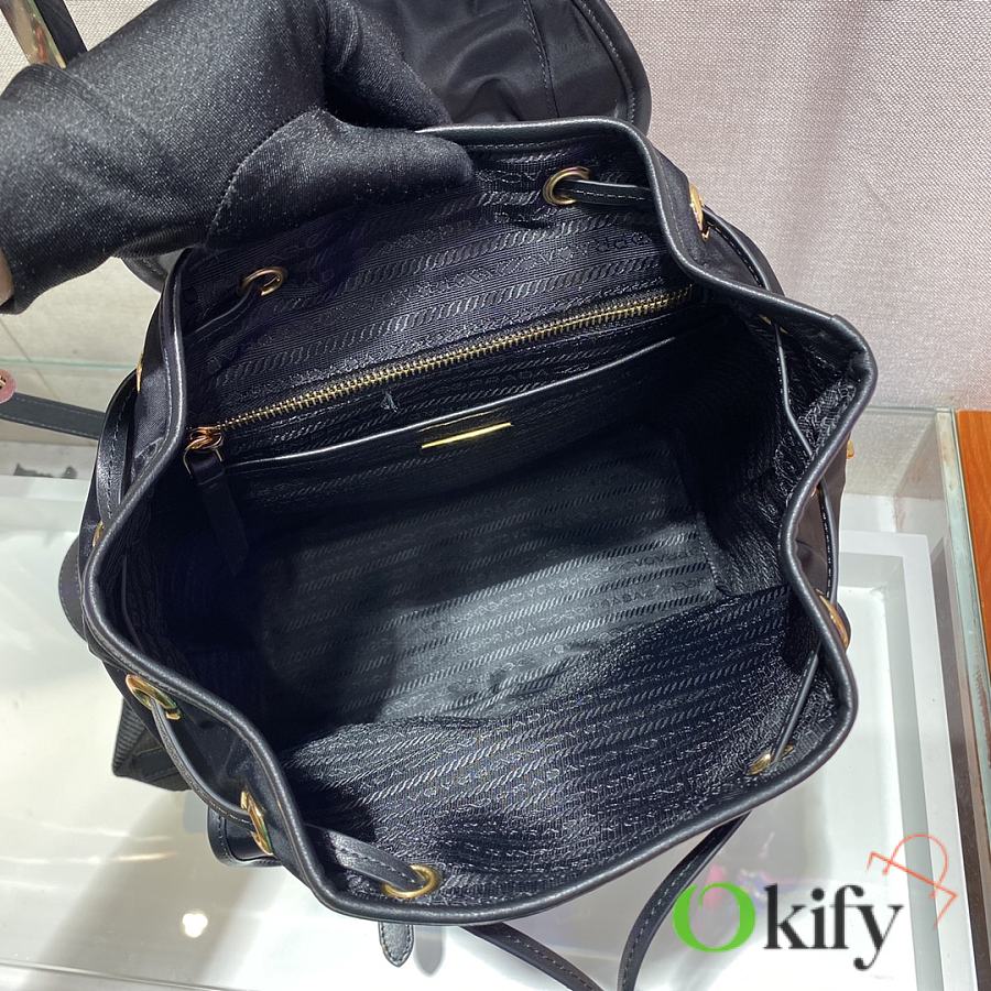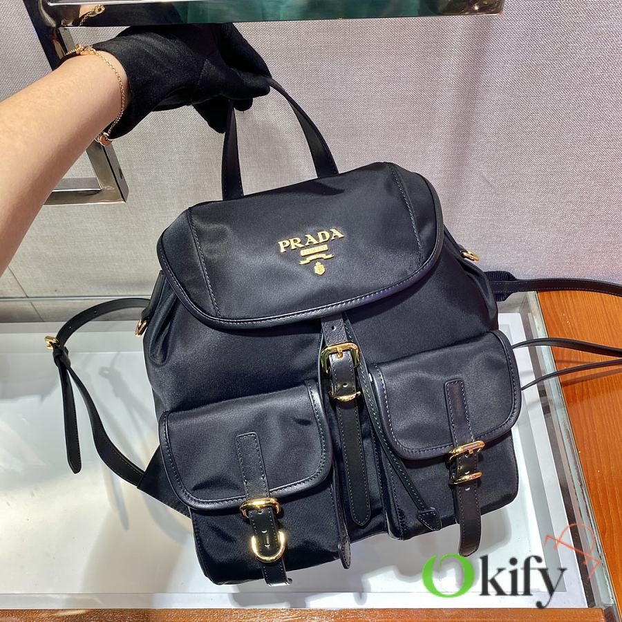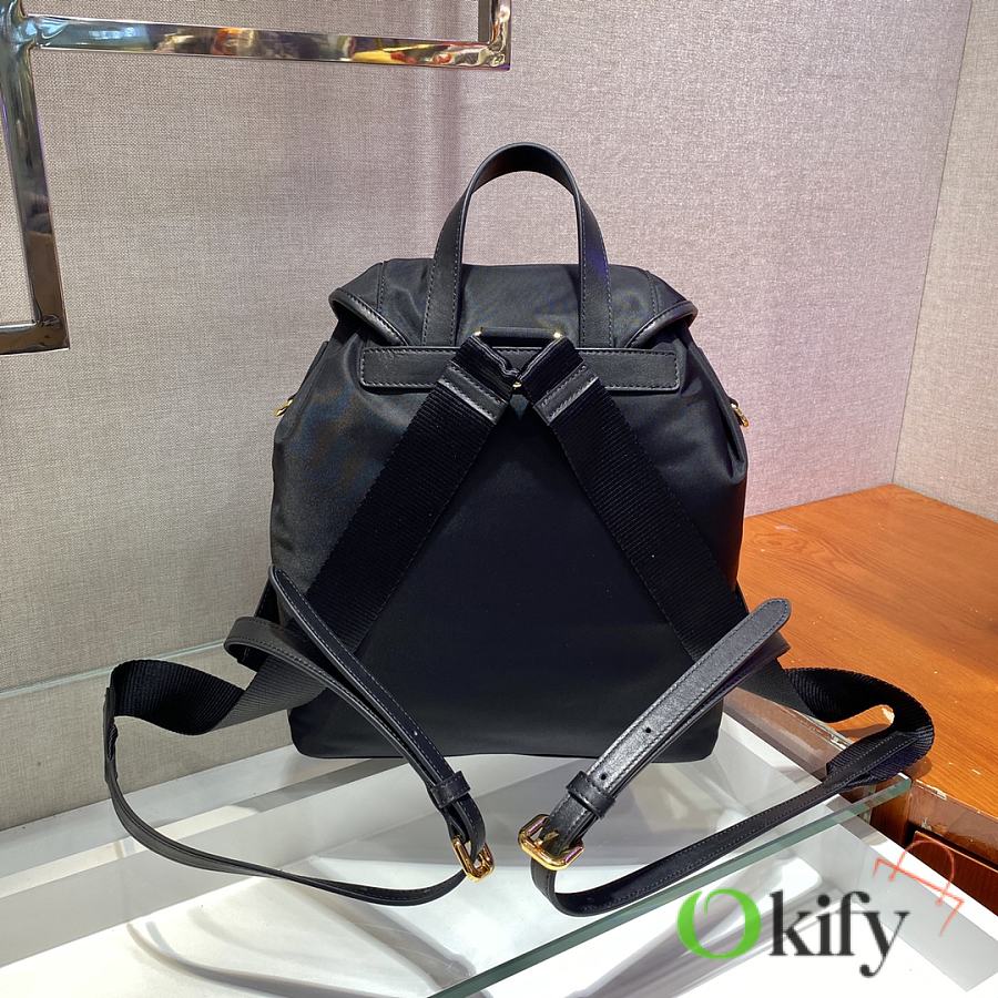 This nylon backpack features exquisite Saffiano leather trim, blending multiple materials and adorned with a unique logo. The flap design and two front pockets exude a stylish and elegant charm. Lightweight and practical, it looks incredibly stylish and is easy to match with any outfit