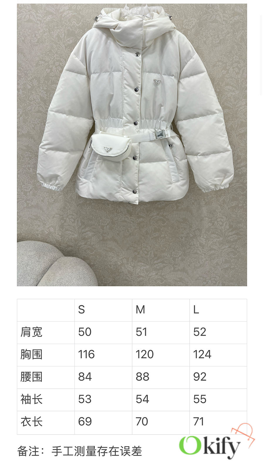 This Season's Best Fit: Waist-cinching Puffer Jacket that Enhances the Waistline and Creates a Super Slimming Effect. The hooded design is stylish and chic. I absolutely love it! I'm keeping one for myself! Made with standard 90% white goose down filling. Note the details to differentiate between versions! Original imported recycled nylon fabric, crisp and structured texture