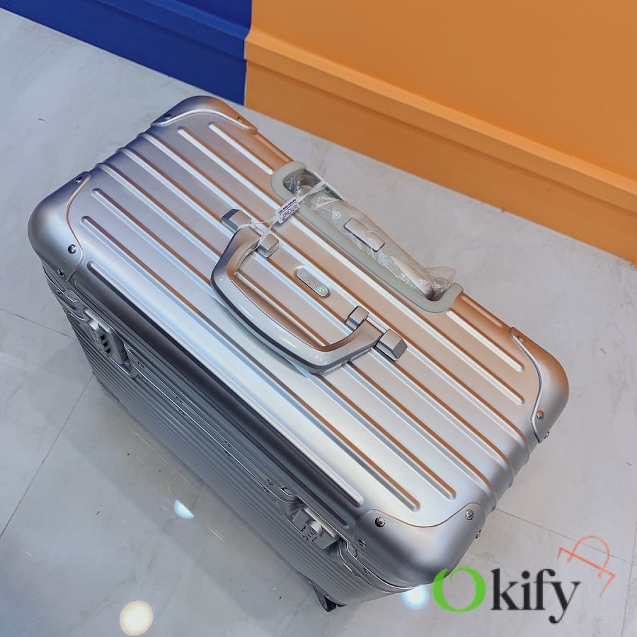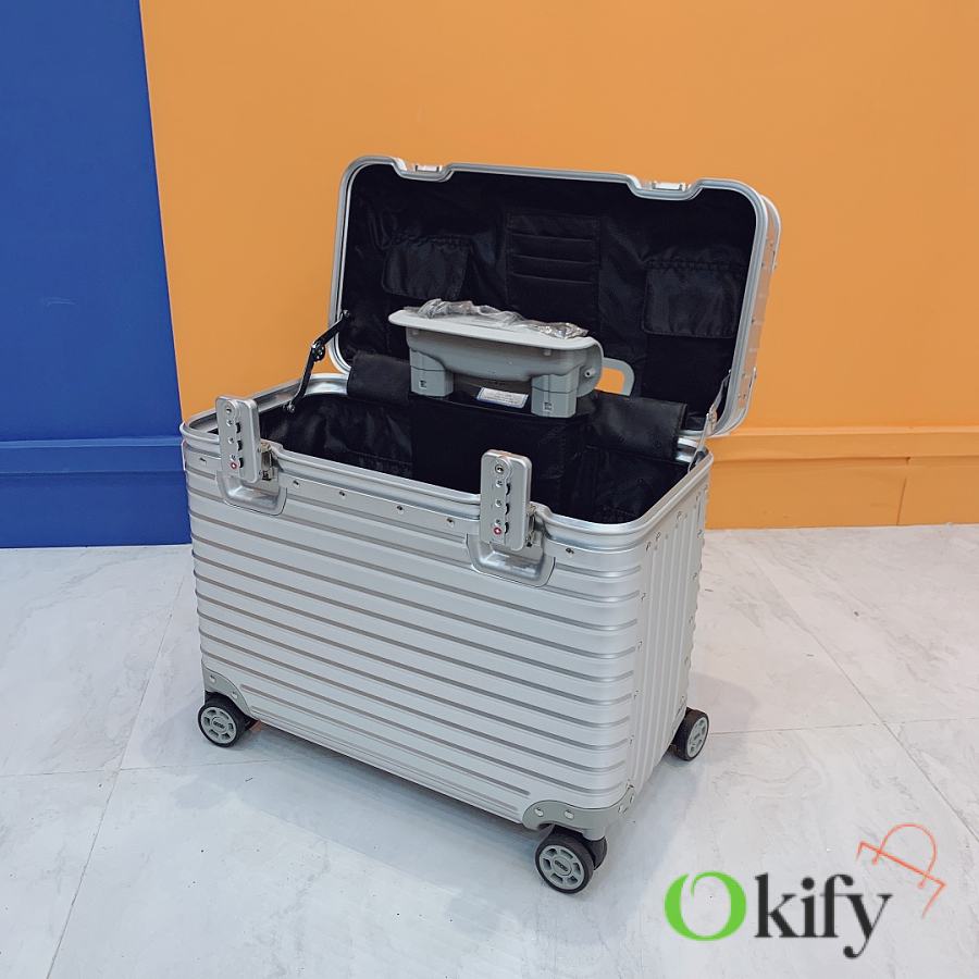aluminum-magnesium alloy luggage, now in stock. Made of genuine aviation aluminum, with premium workmanship. Thickened, shatter-resistant corners for a truly classy look. Standard carry-on luggage, 20-inch flight case specifications: 42.5cm tall, 45cm long, 22.5cm wide. Limited stock, only available for high-end customers.