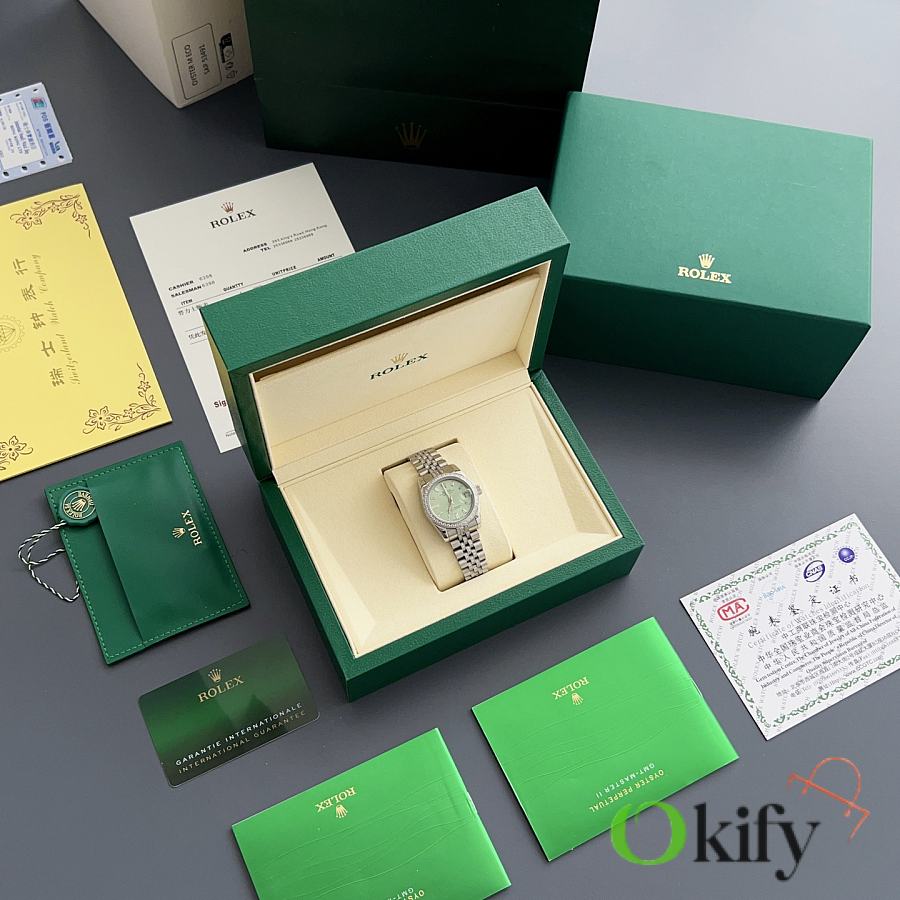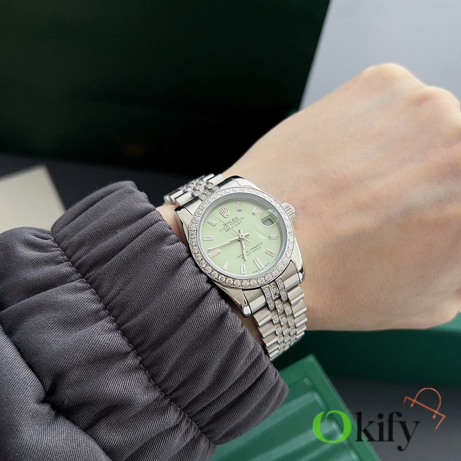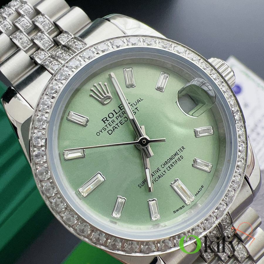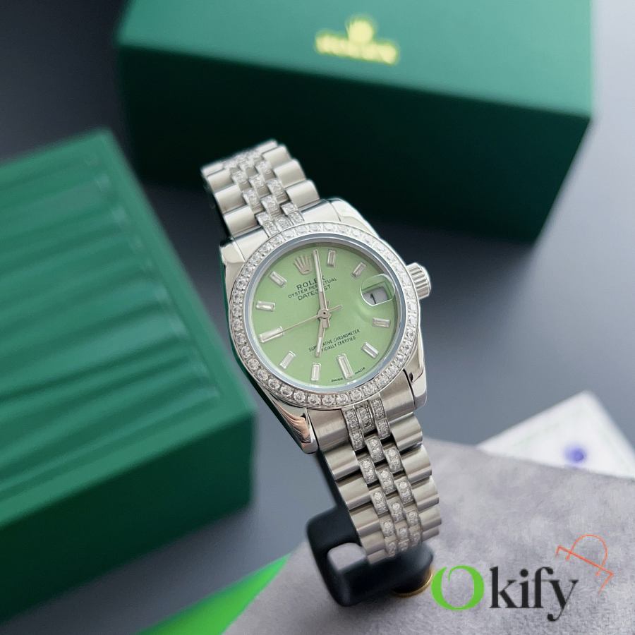 Okify Rolex Datejust 31mm Silver Watch Green Dial With Diamond 27973
