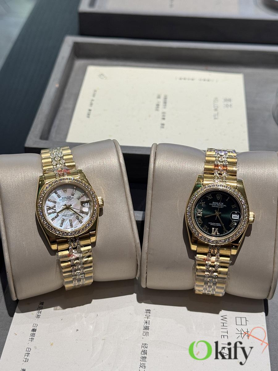Okify Rolex Datejust Gold Watch For Women In Green 31mm