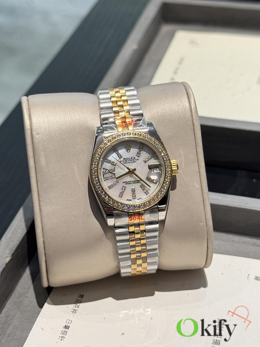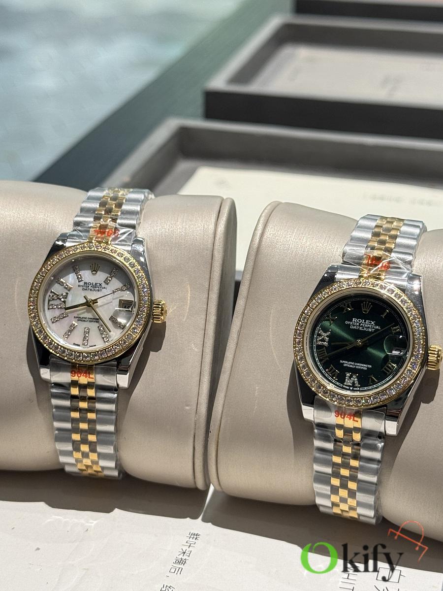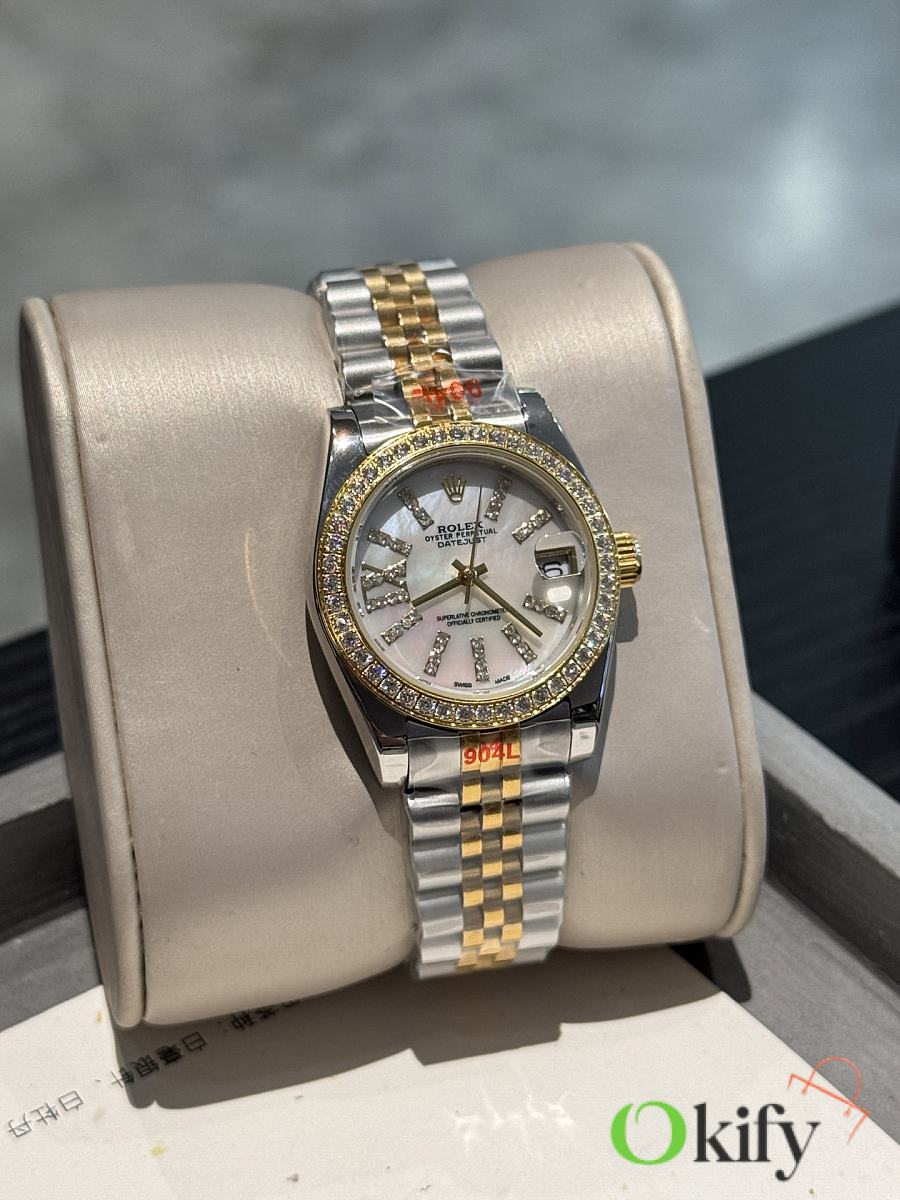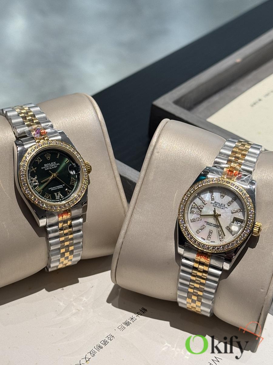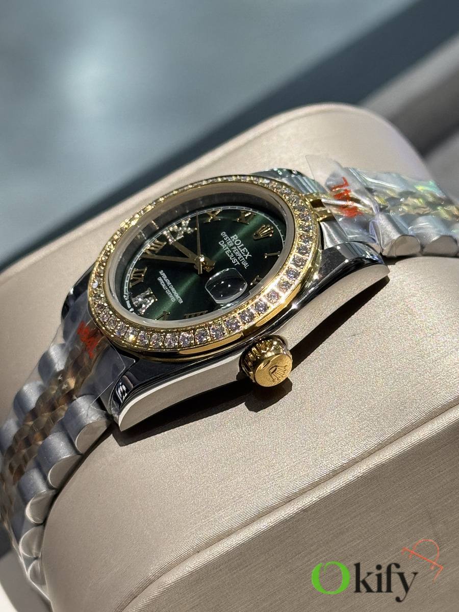 Okify Rolex Datejust Silver And Golf Watch For Women In White/Green 31mm