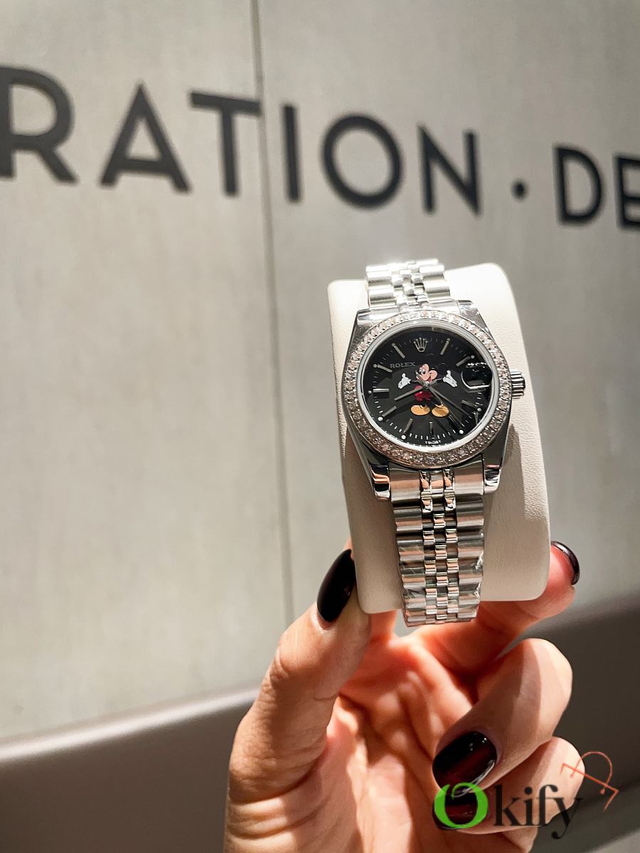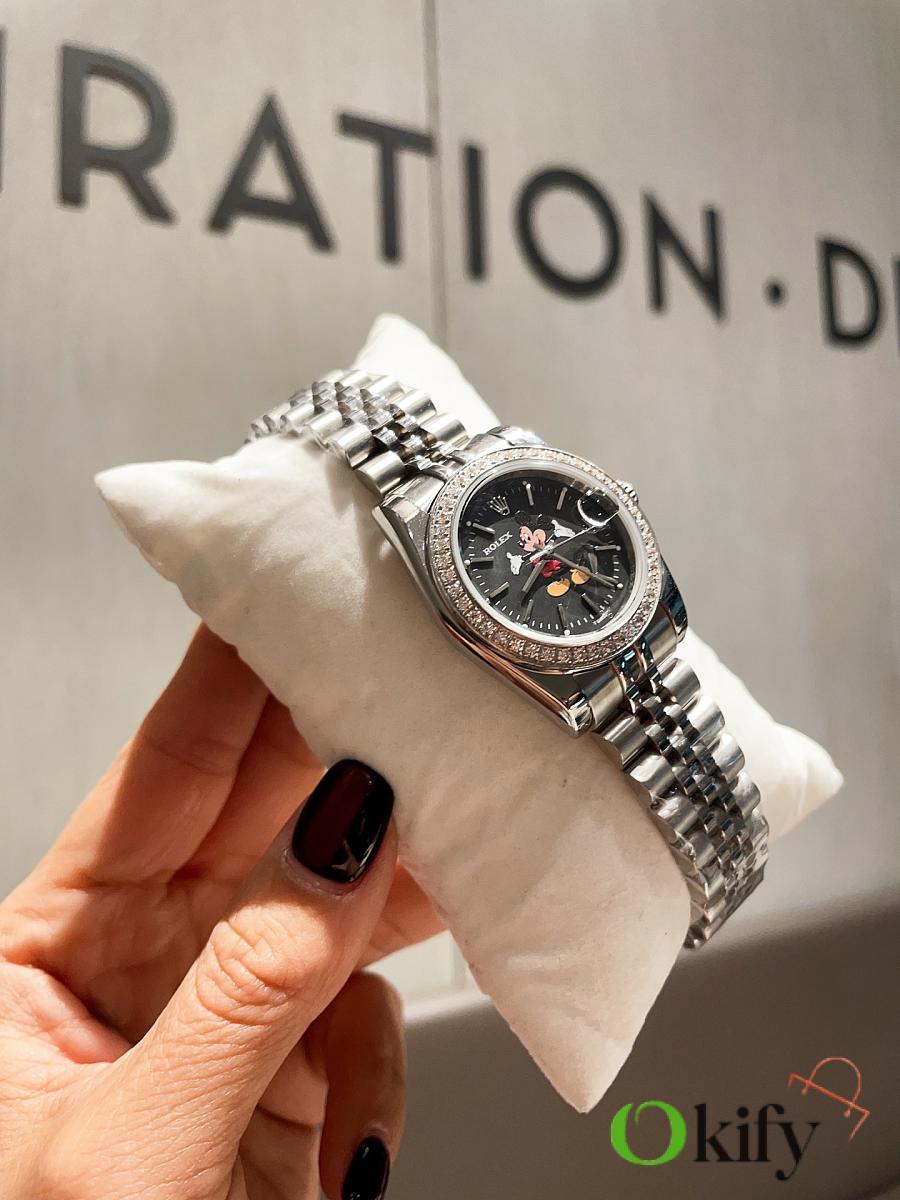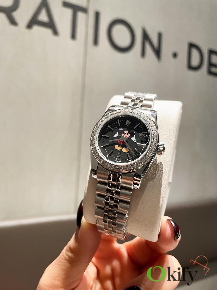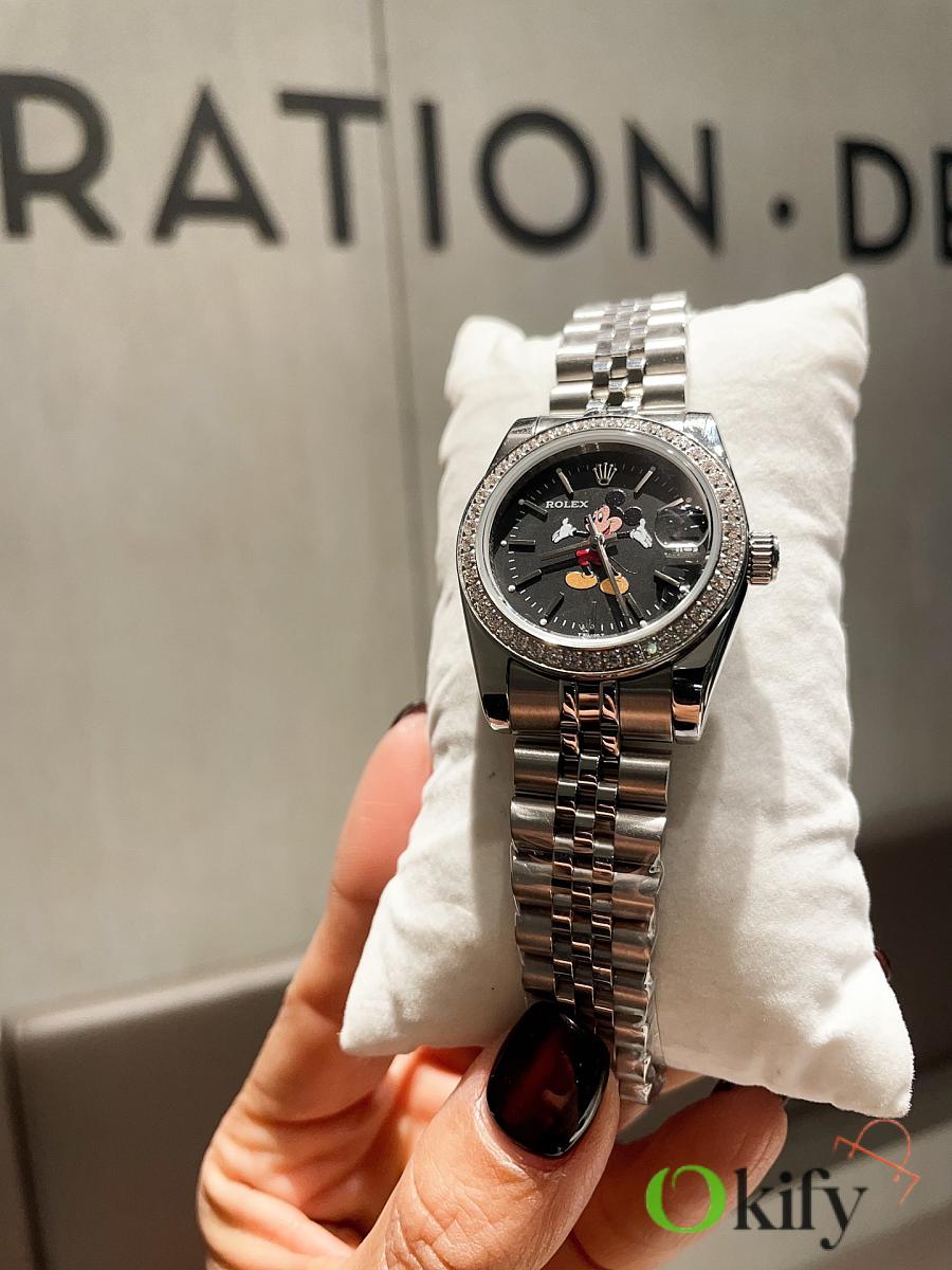 Okify Rolex Mickey Slip Silver Watch In Black 31mm