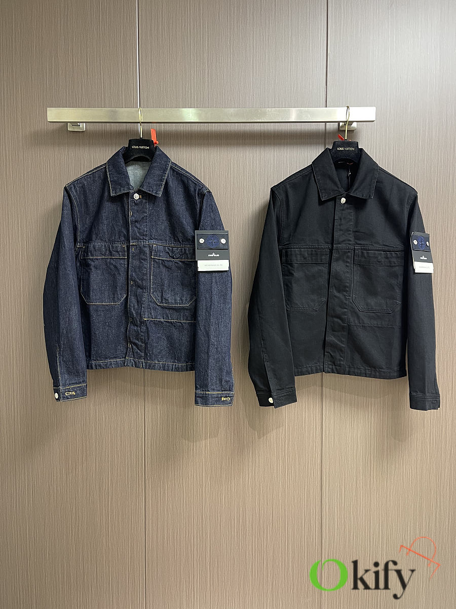 This custom-made Stonelsland badge denim jacket features a premium high-density twill denim texture that feels luxurious and comfortable against the skin. The classic indigo denim base exudes a retro charm with a modern edge. The front chest pocket is designed with a golden ratio in mind, adding a touch of practicality and a sense of occasion. Unisex! Sizes: S-XL