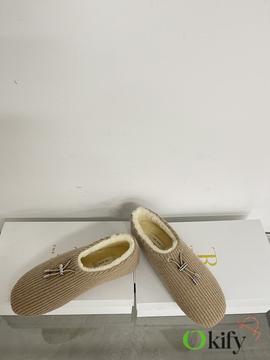 Okify The Row Light Brown Knitted Wool Slip-on Loafers