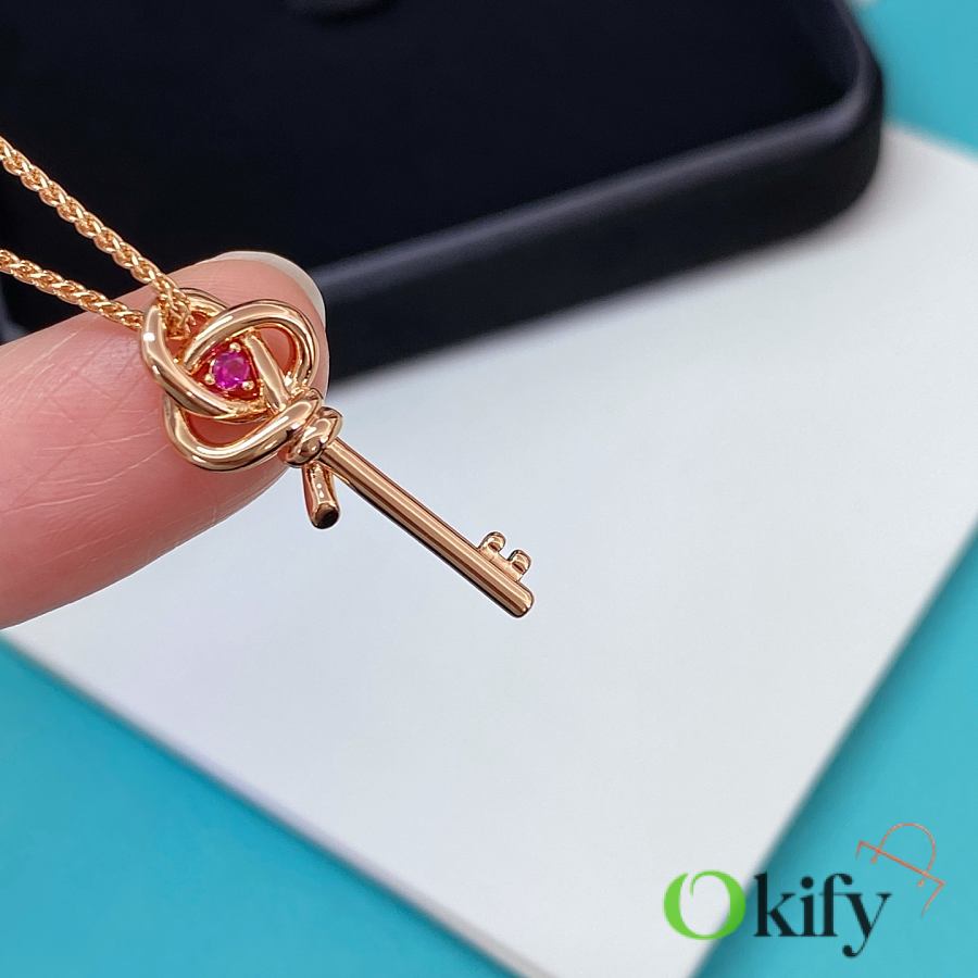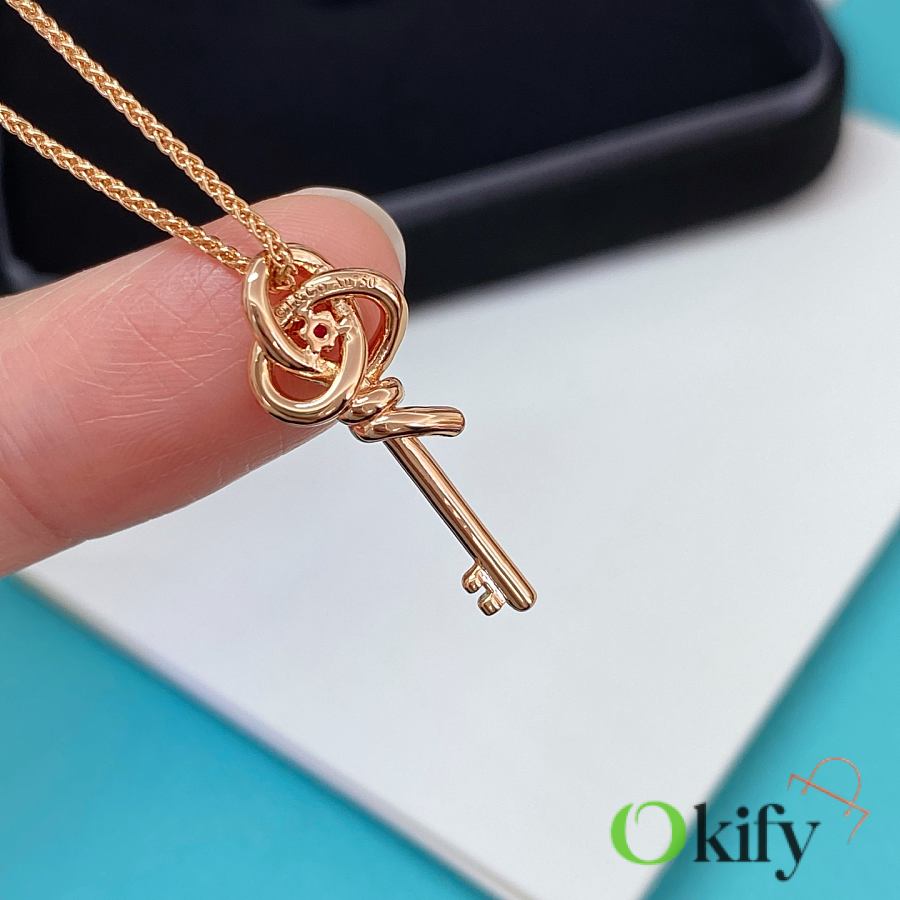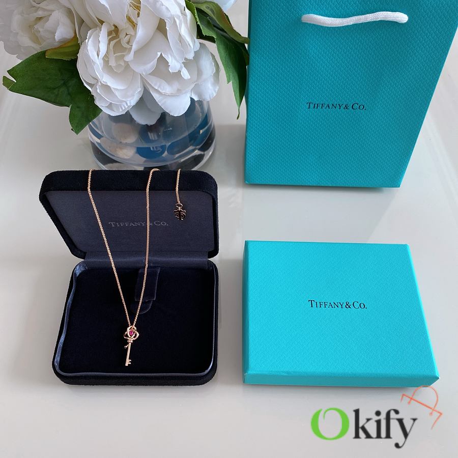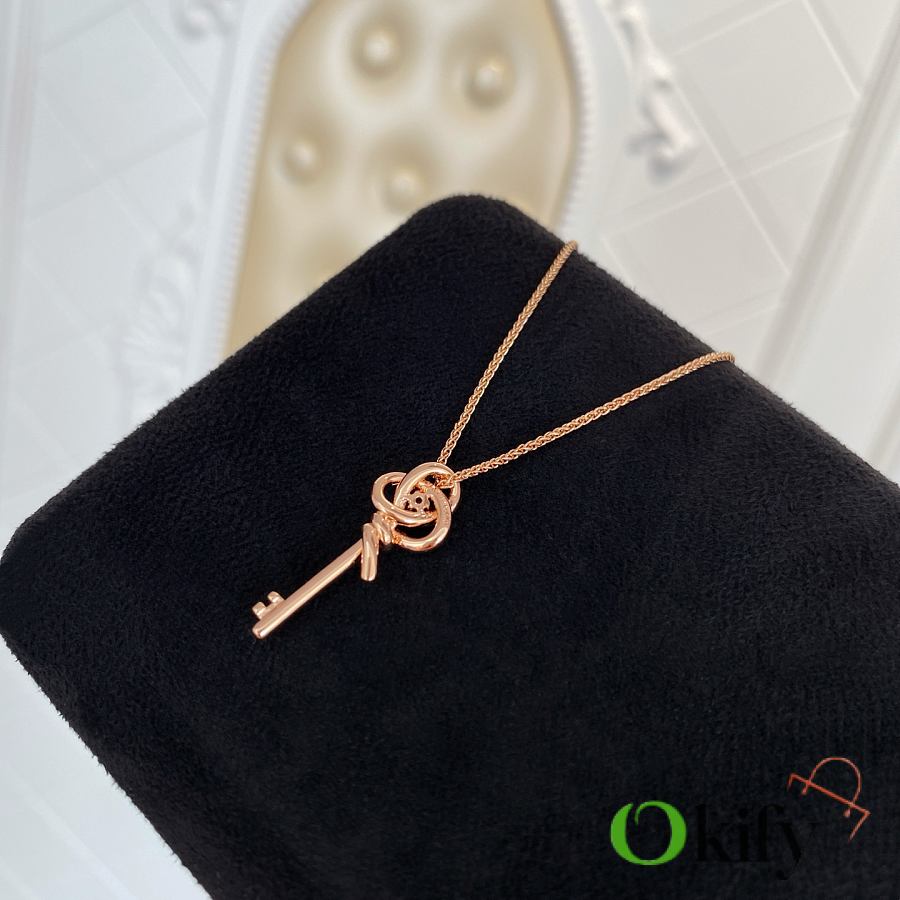 Okify Tiffany Rose Gold Necklace With Pink Rhinestone