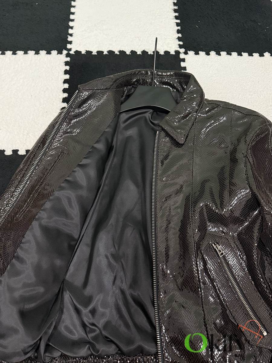 Italian imported sheepskin with special treatment and snakeskin embossing for a rich sheen; original design purchased; complex production process
