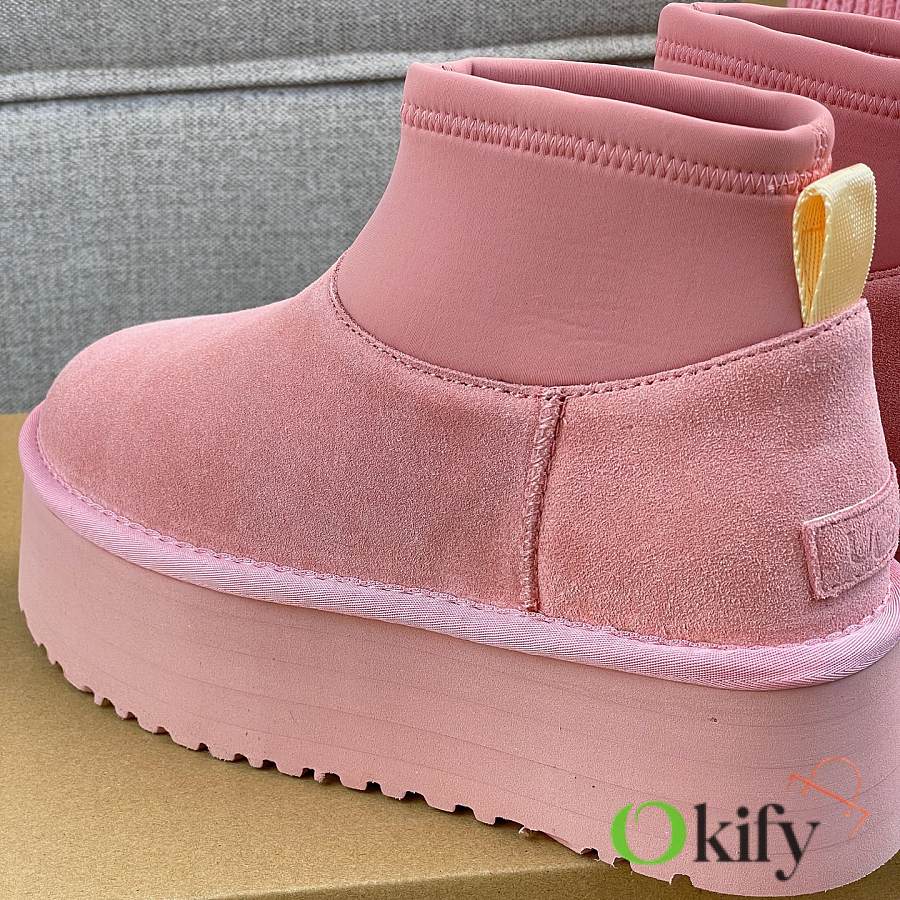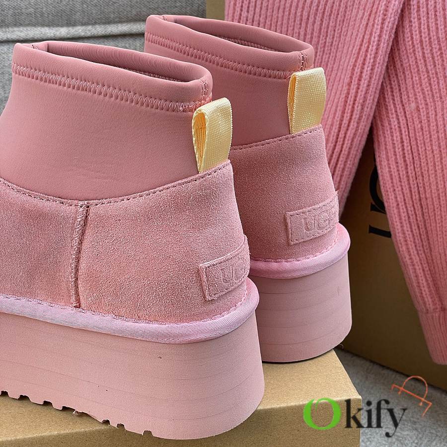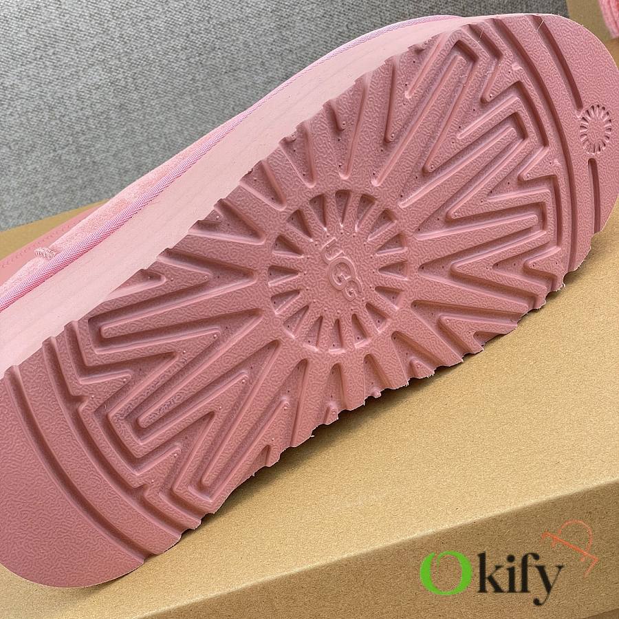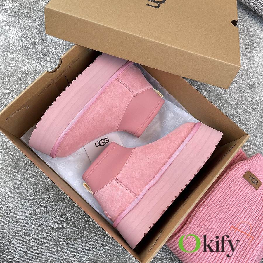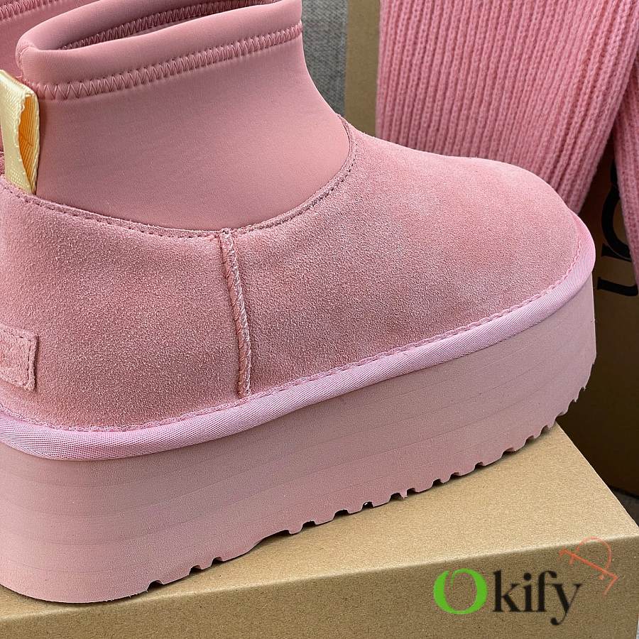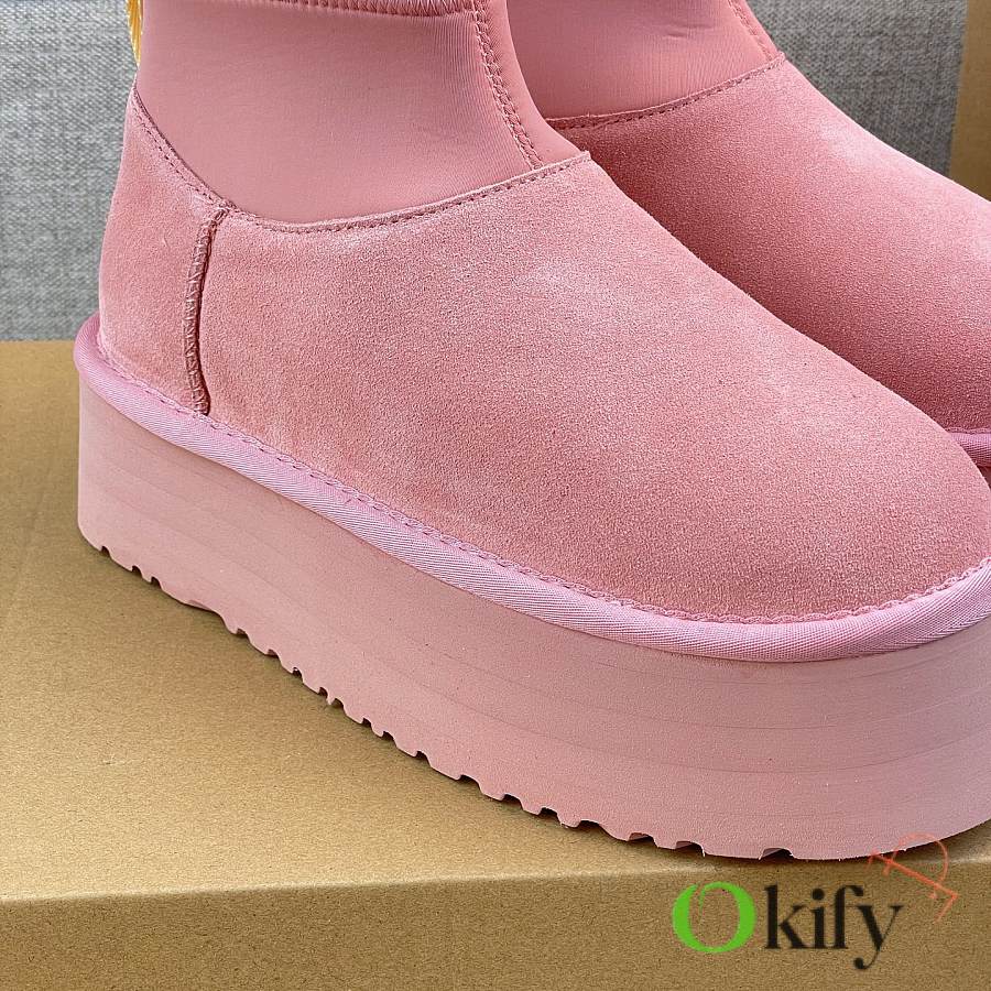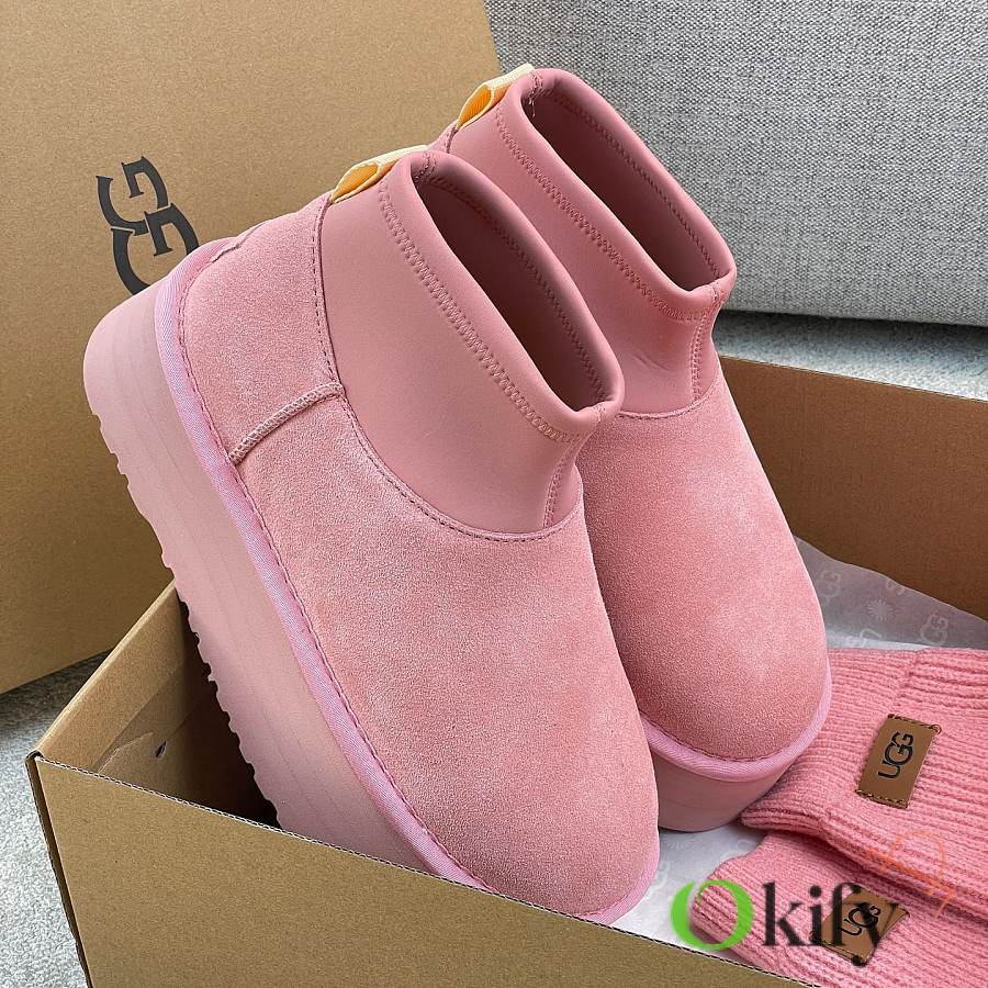 These 2025 new Ugg pink sock-like boots are two-in-one, incredibly stylish. Paired with pink knitted socks, they're sweet and adorable, instantly boosting your cuteness level. They also provide a significant height boost, with a thick, warm sheepskin lining that offers excellent insulation and a sense of security, perfect for autumn and winter. A must-have for petite women. Made with premium sheepskin from Longfeng, featuring a sunflower-patterned foam sole and wool insole. A top-tier import, adhering to original design principles, produced entirely in a dust-free workshop with four QC processes. We welcome comparison with official stores for the perfect fit, details, and workmanship! Material: Fur-lined foam outsole