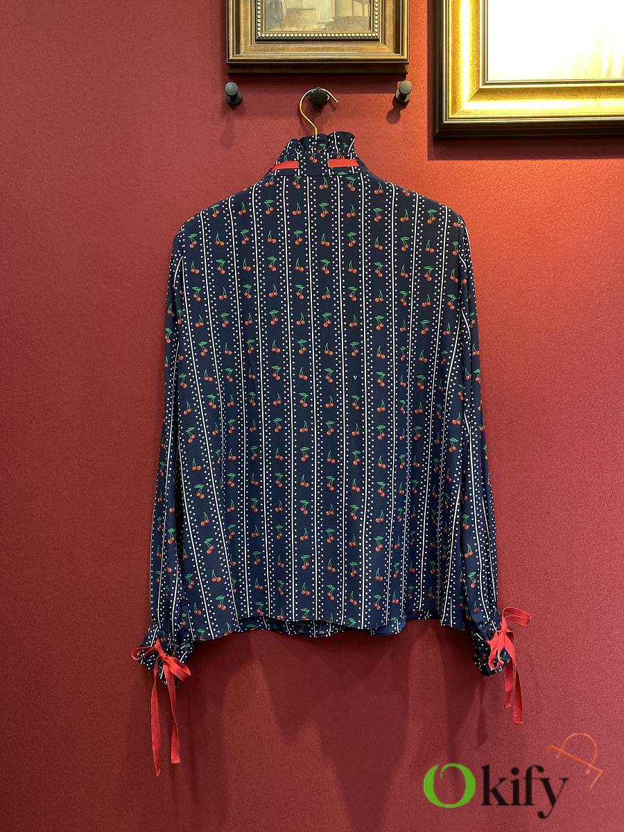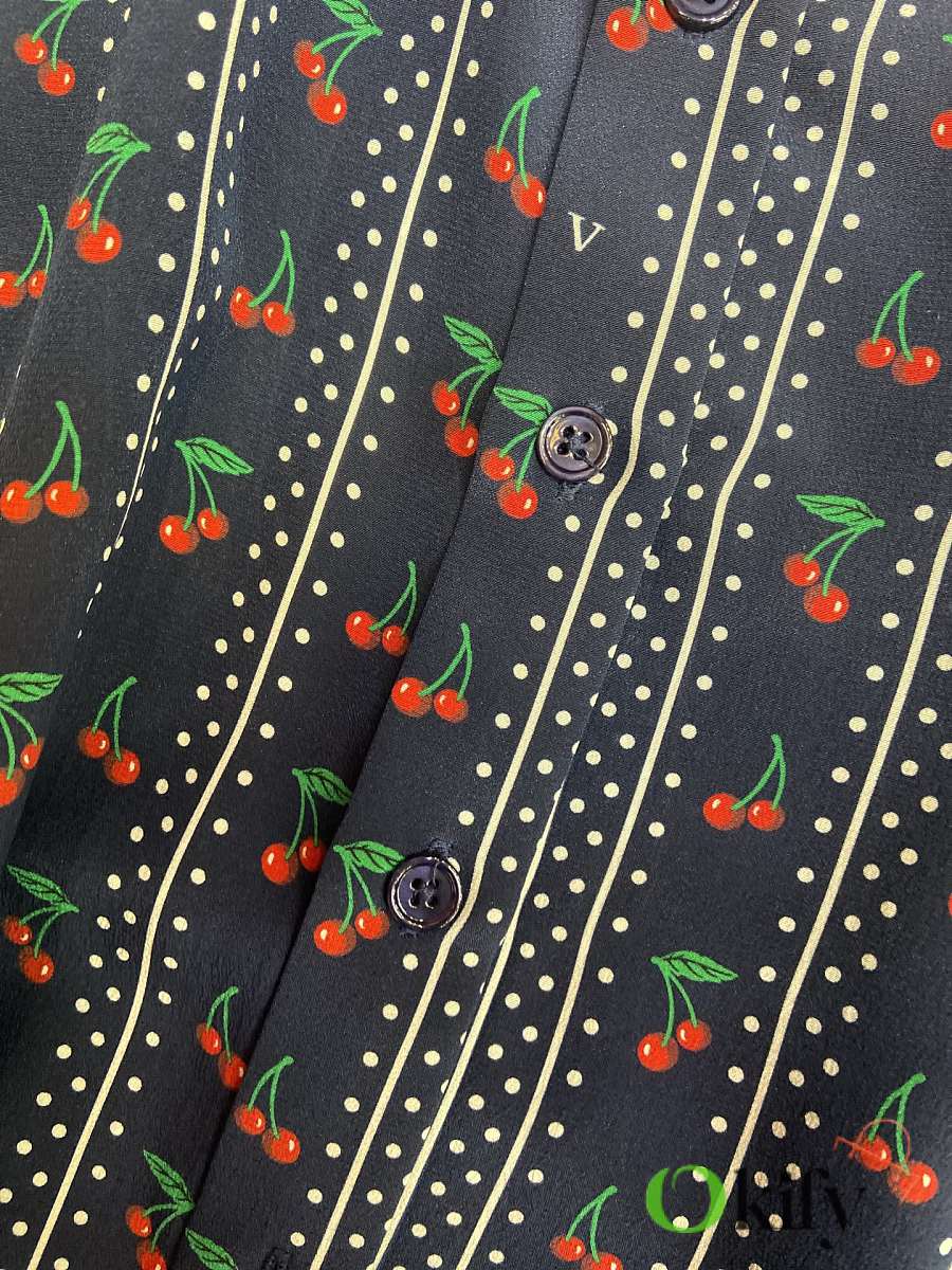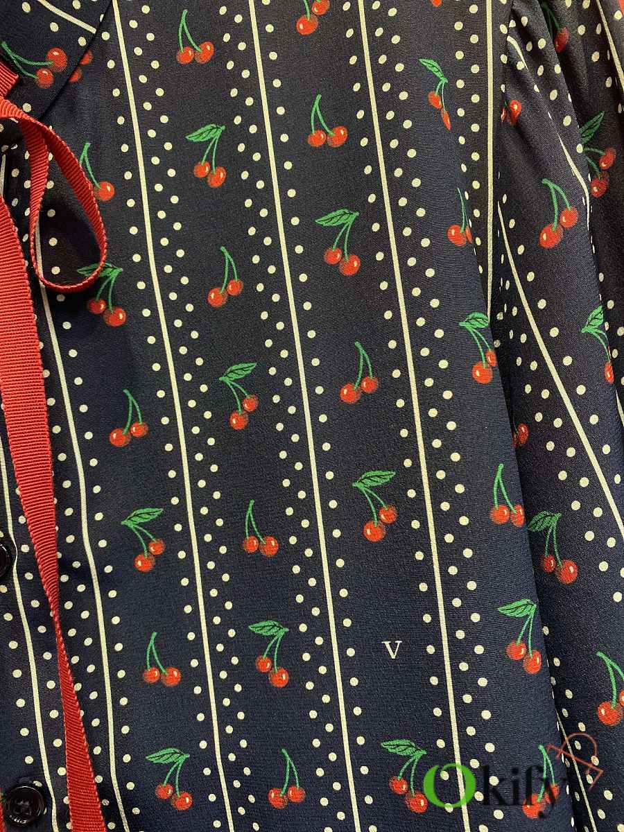Okify Valentino Dark Blue Silk Cherry Women Shirt