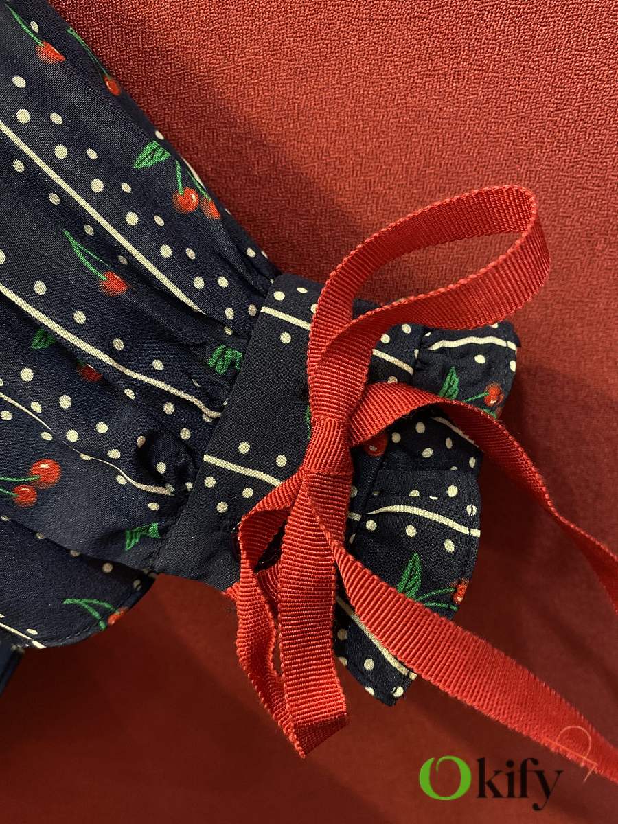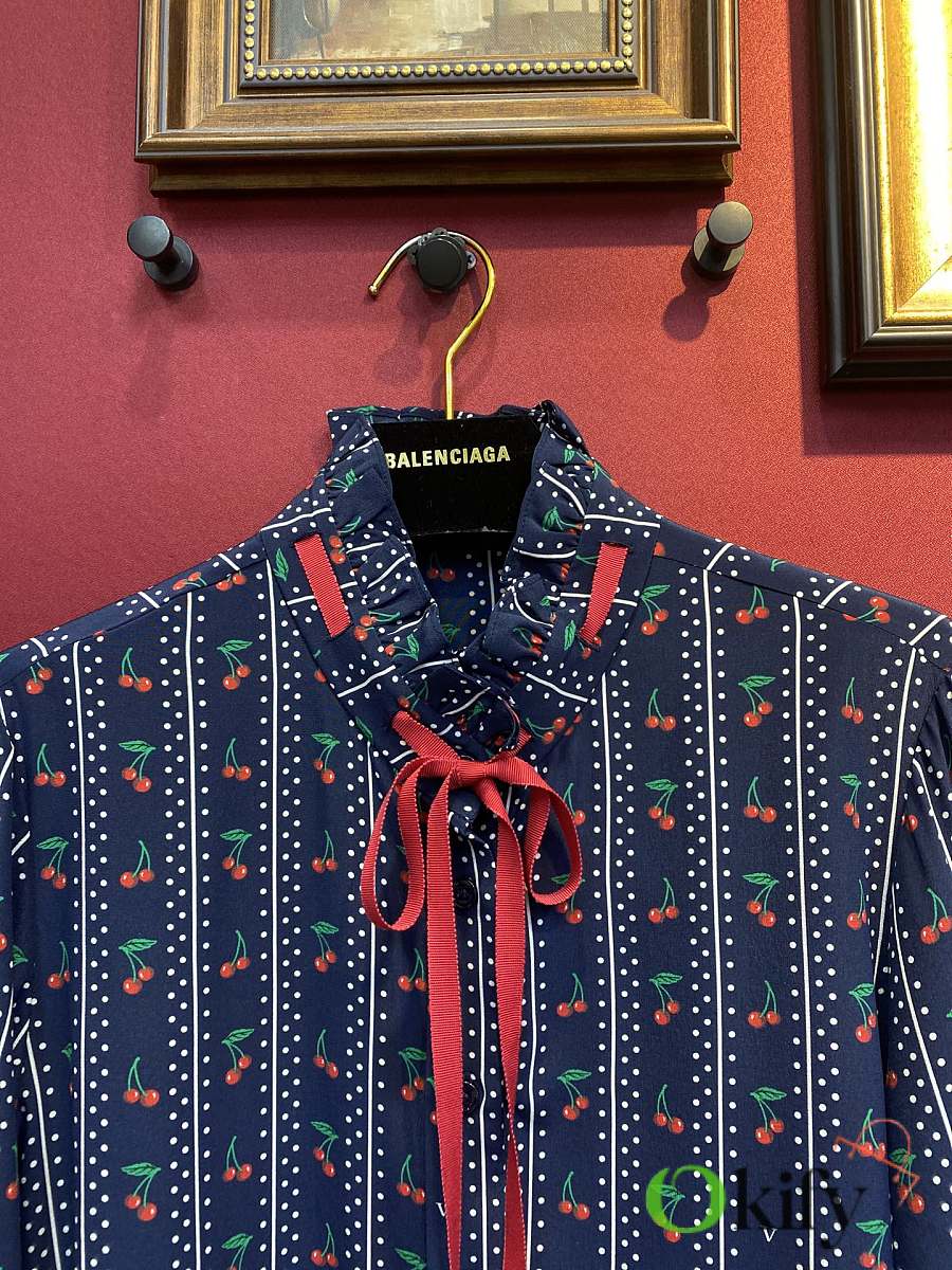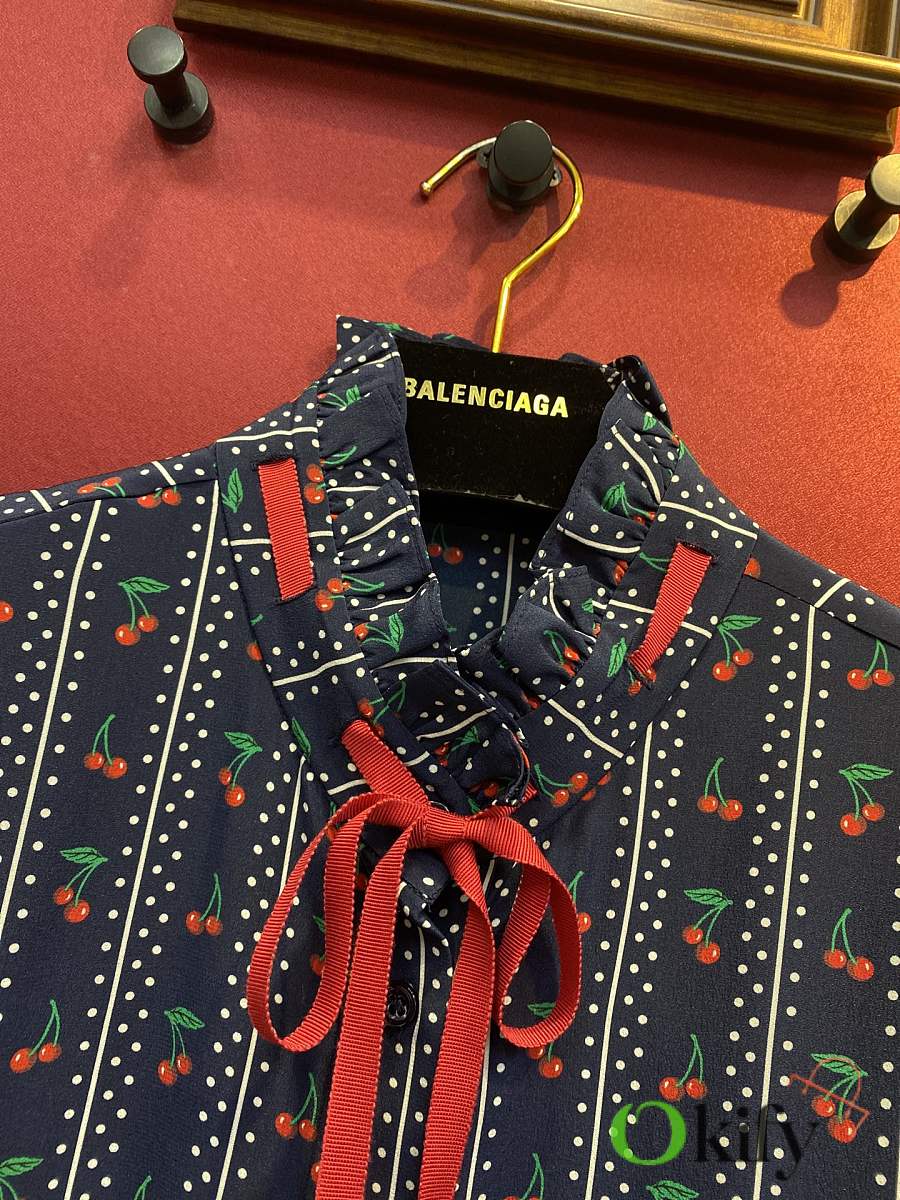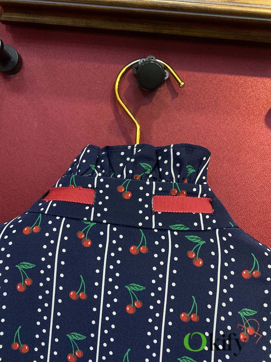 Okify Valentino Dark Blue Silk Cherry Women Shirt